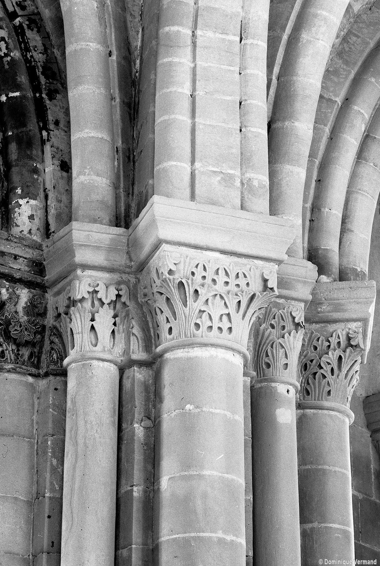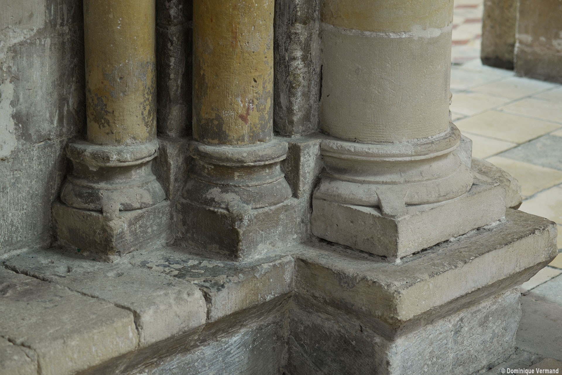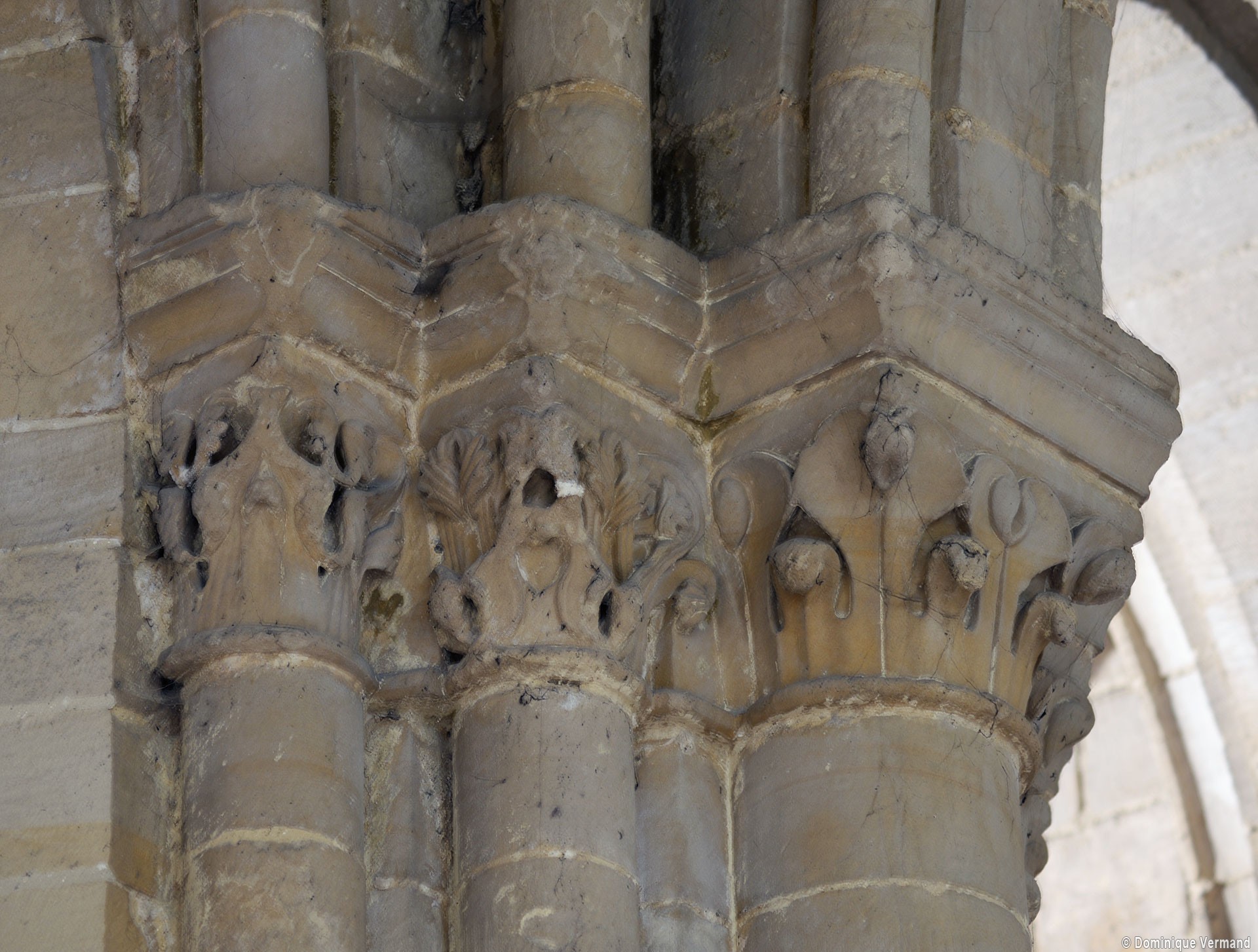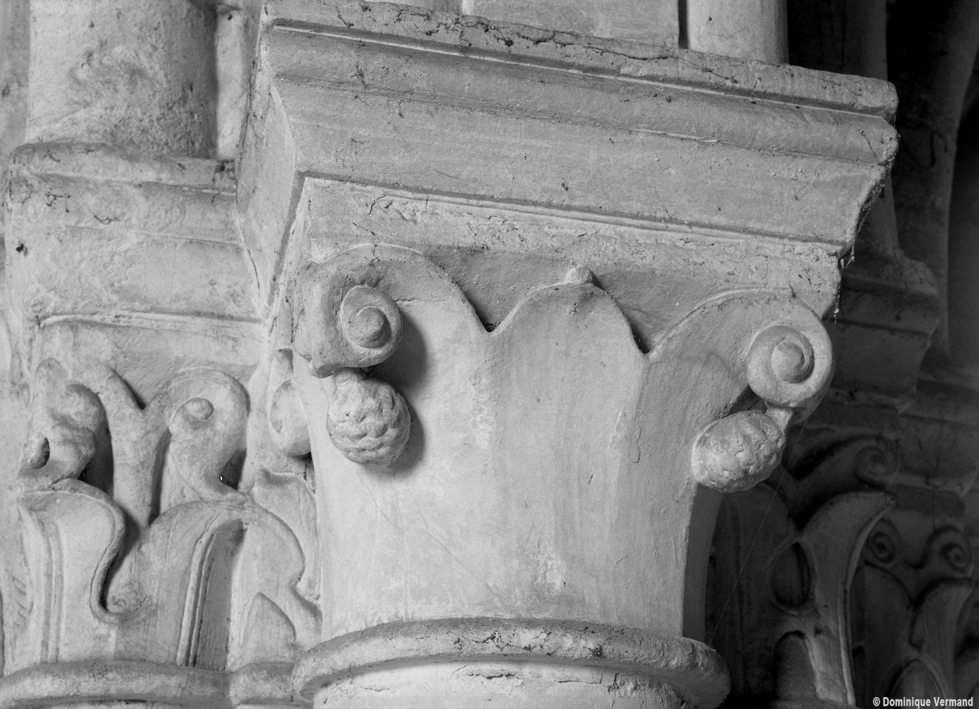 Le choeur du 12ème siècle : les chapiteaux et les bases des parties basses