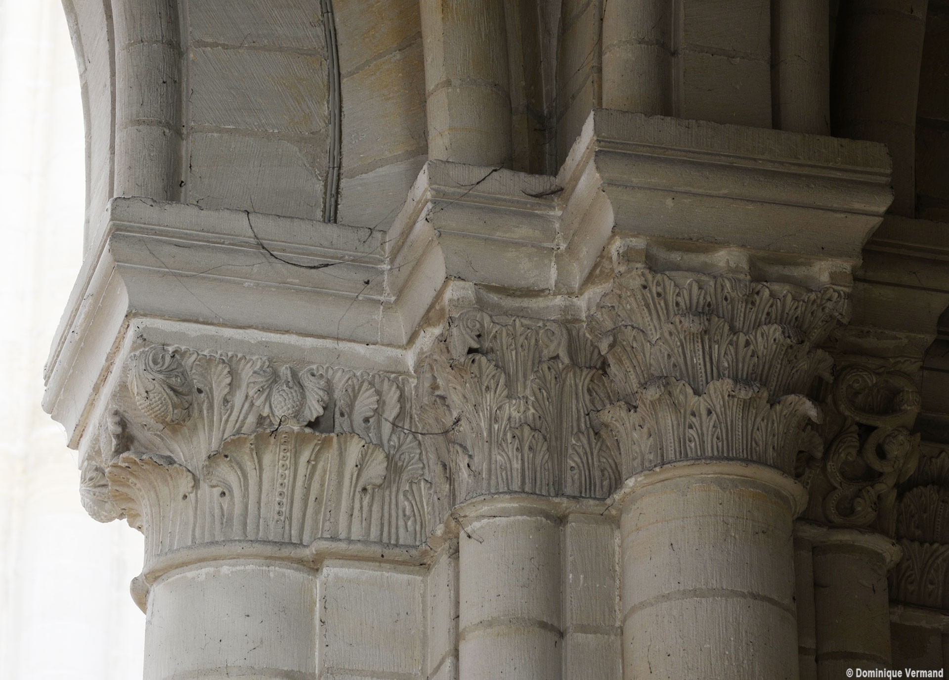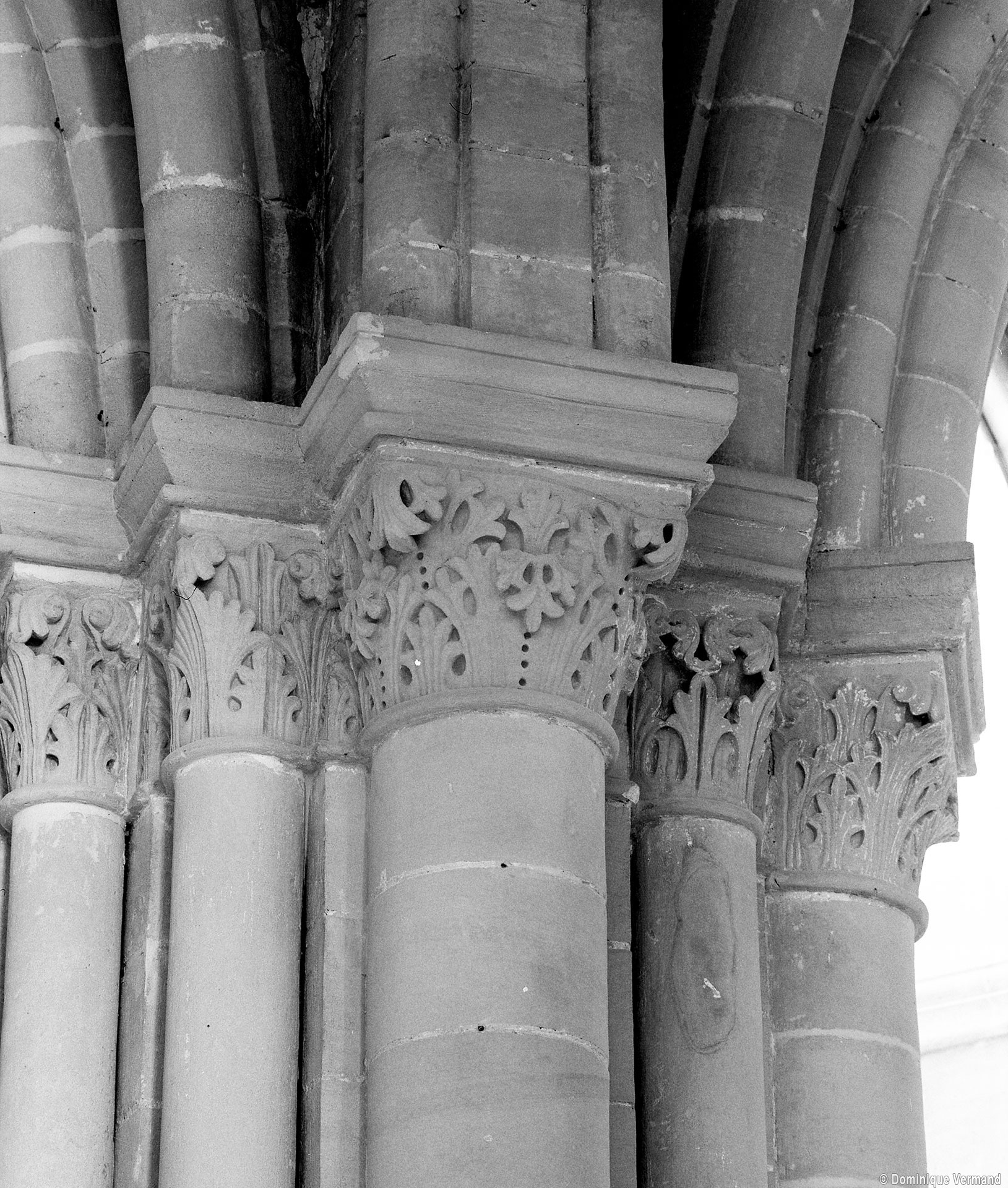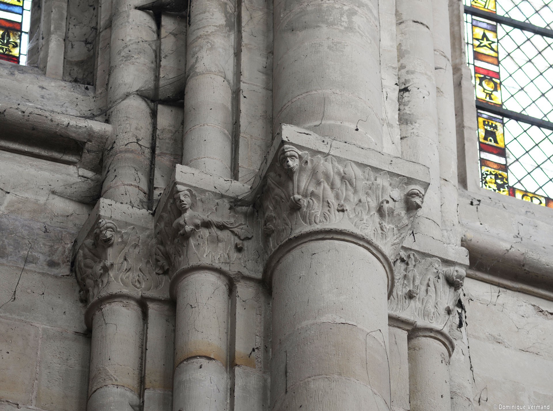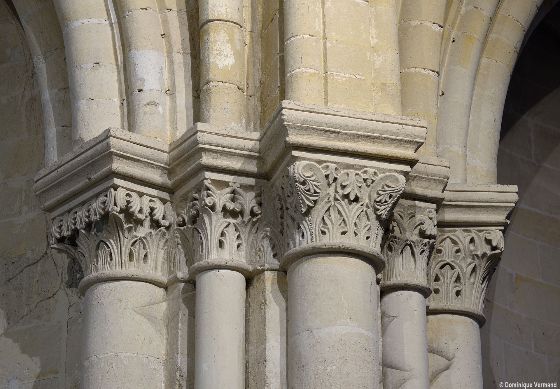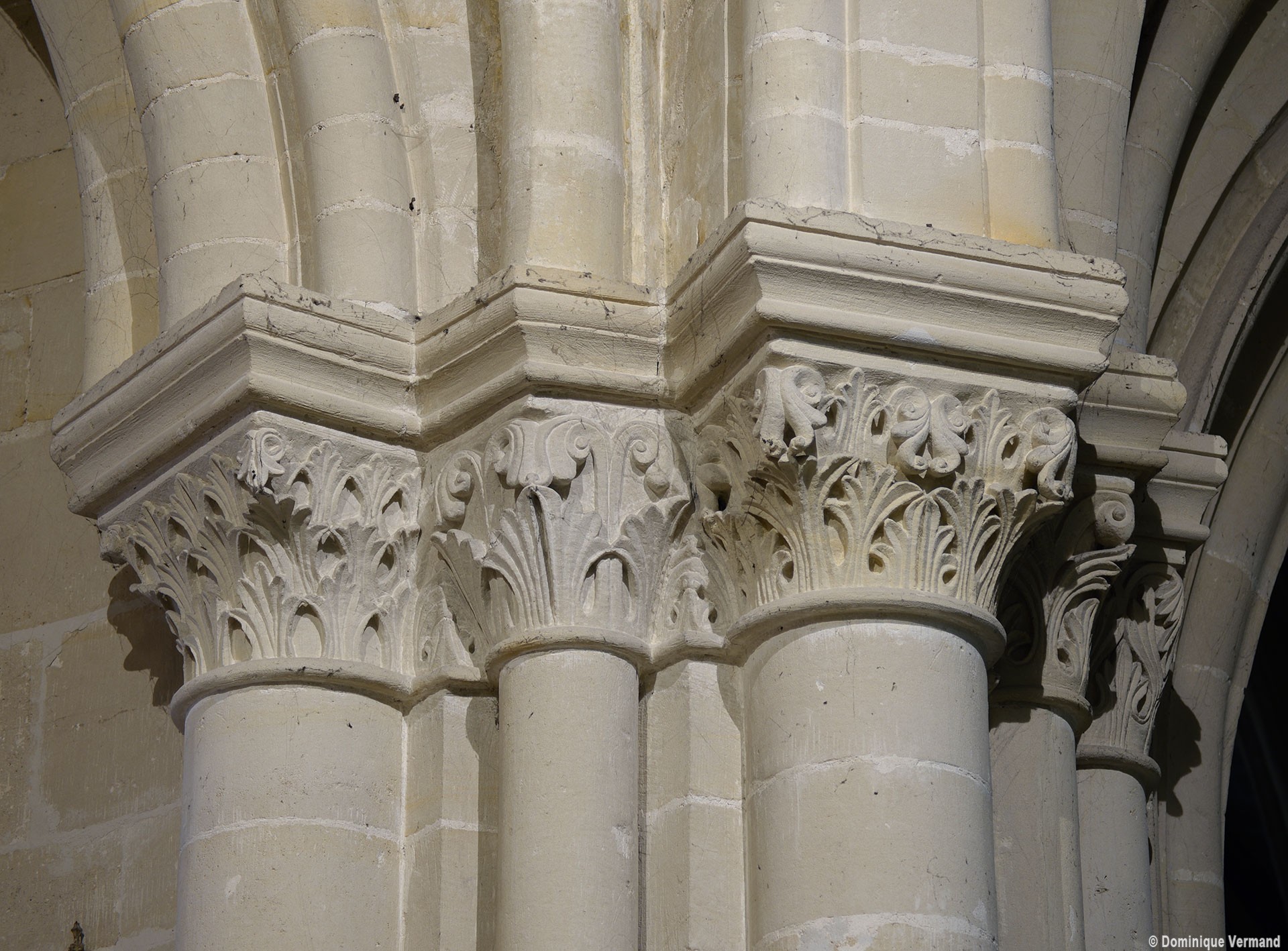 Le choeur du 12ème siècle : les chapiteaux et les bases des parties basses