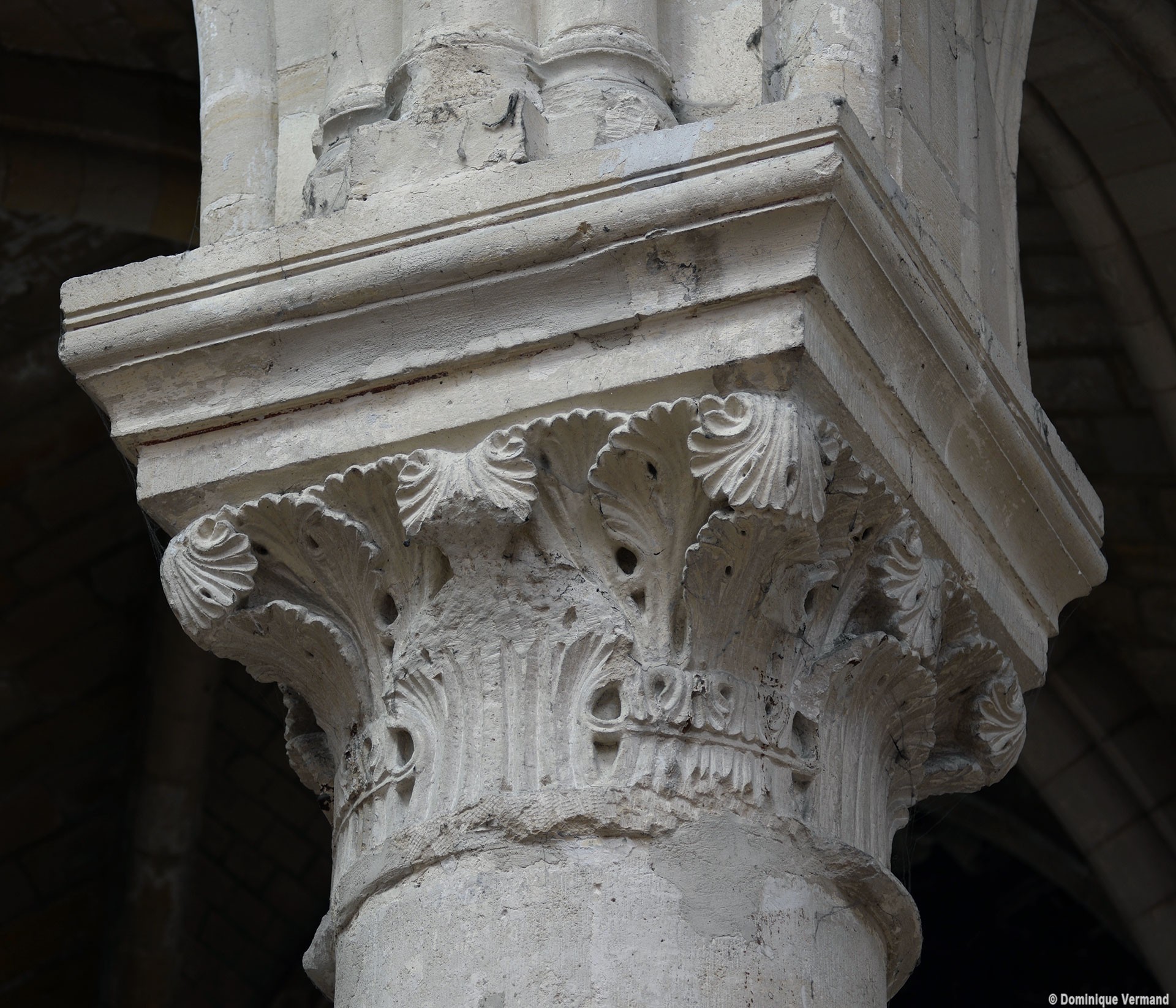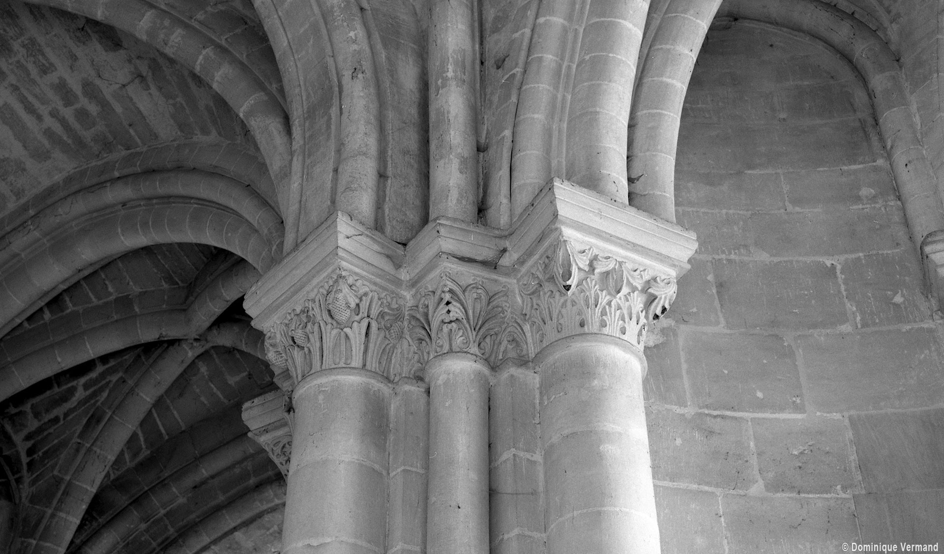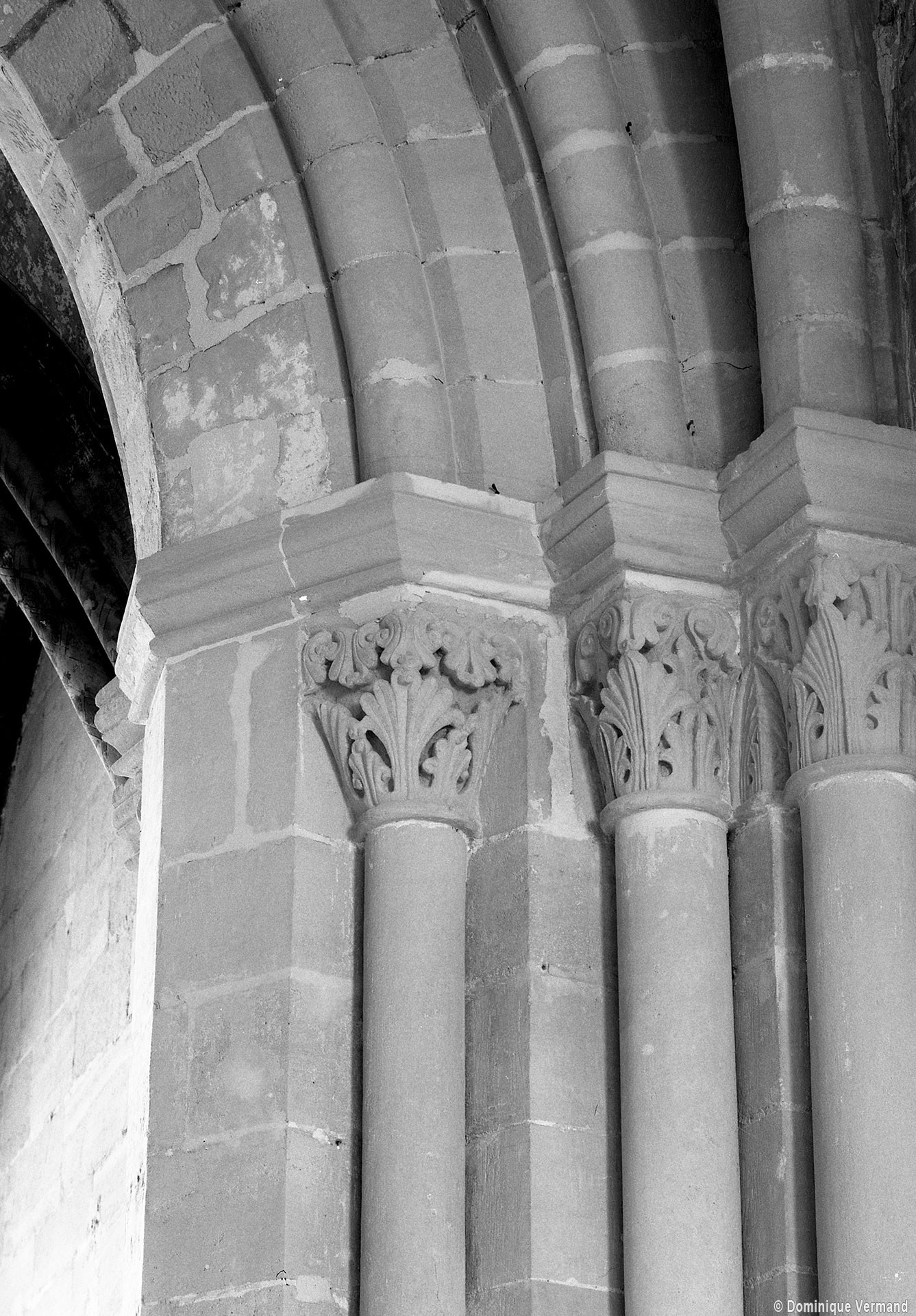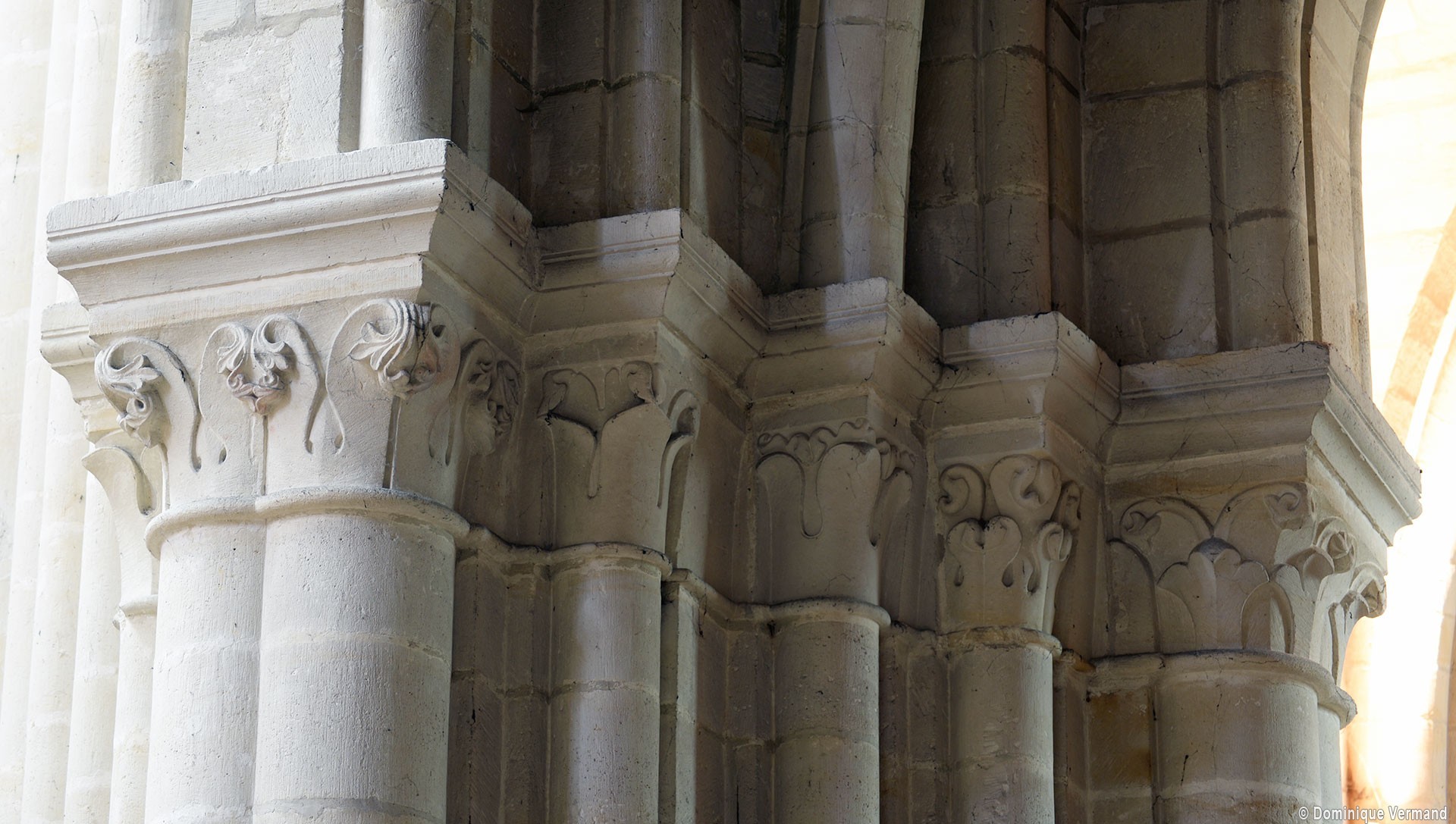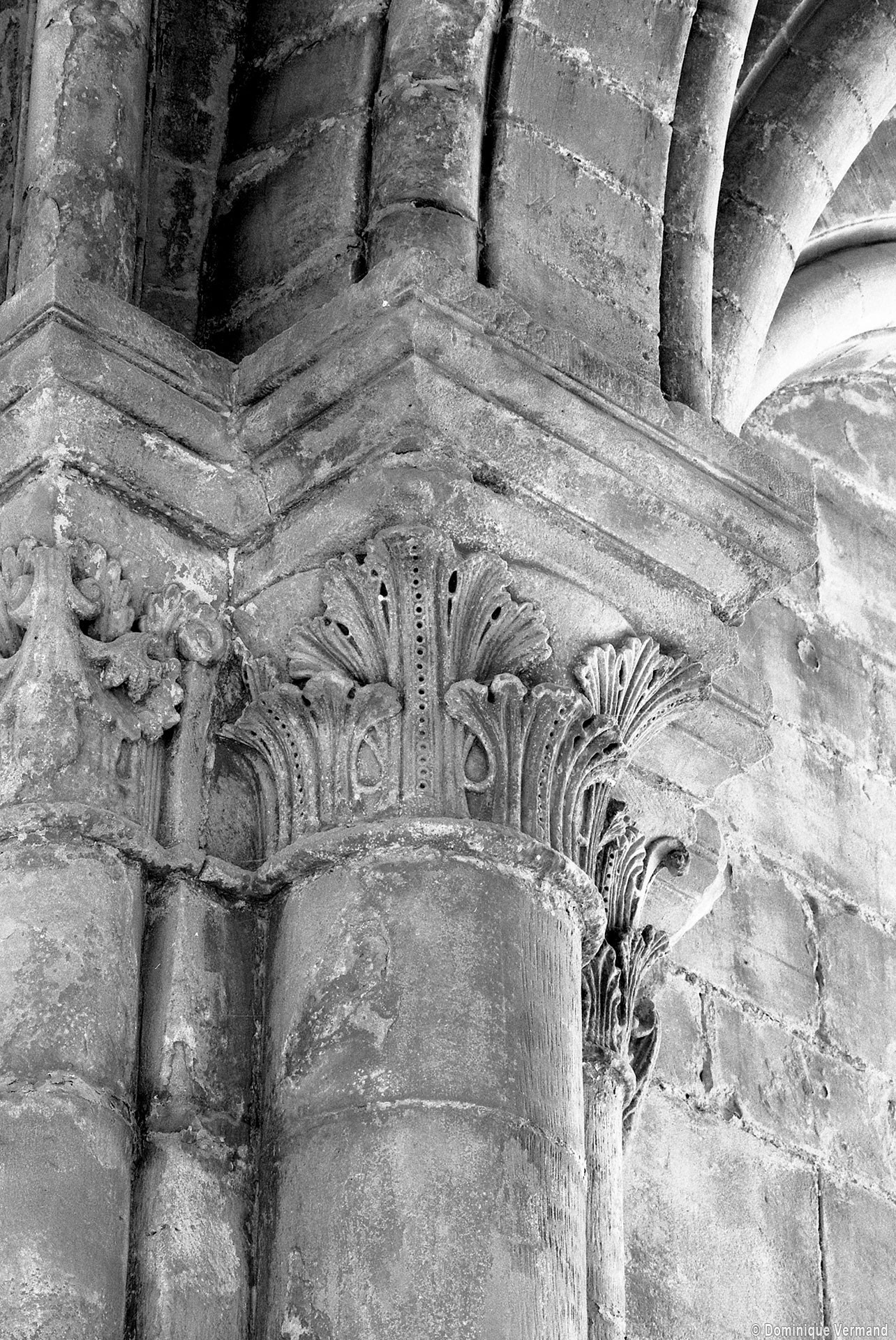 Le choeur du 12ème siècle : les chapiteaux et les bases des parties basses