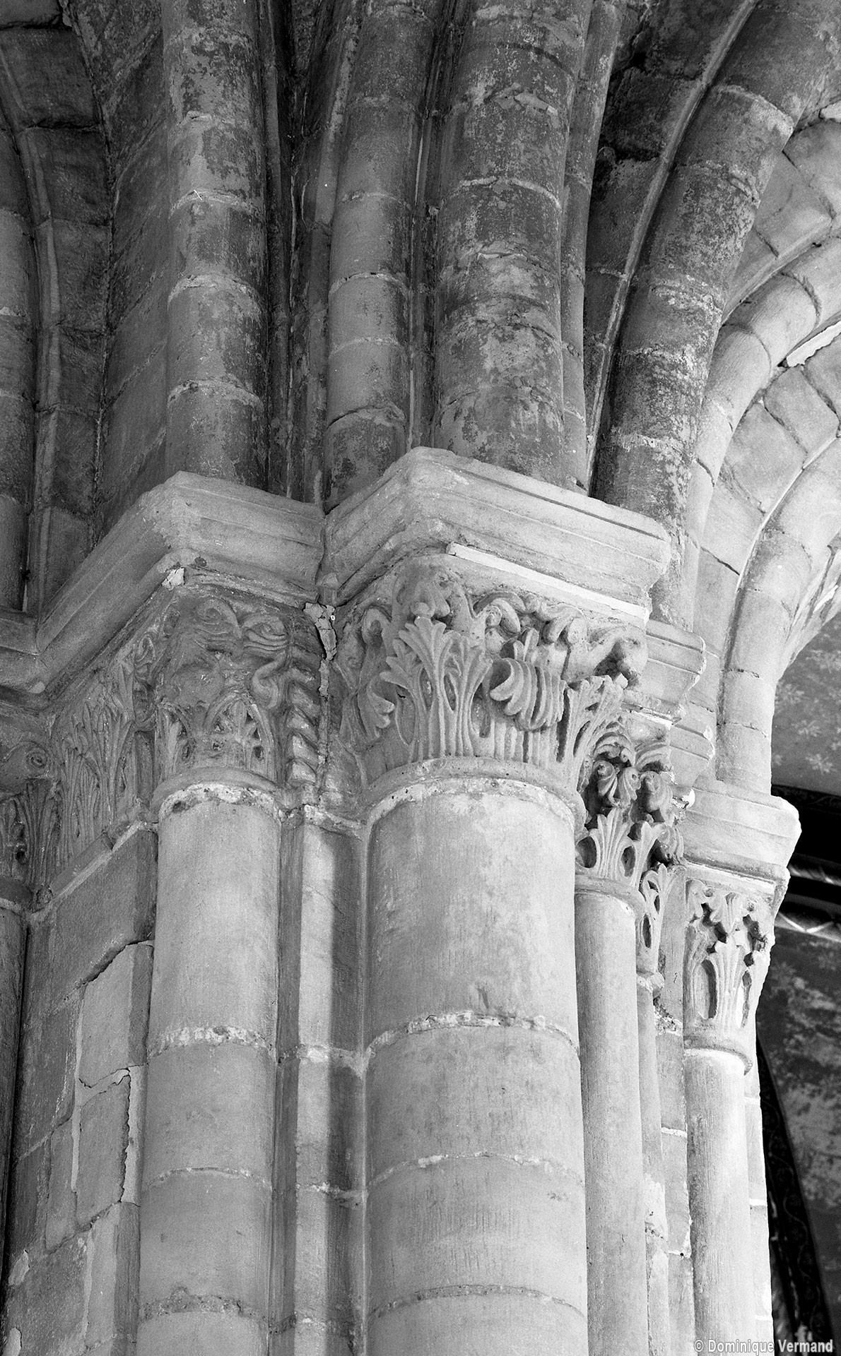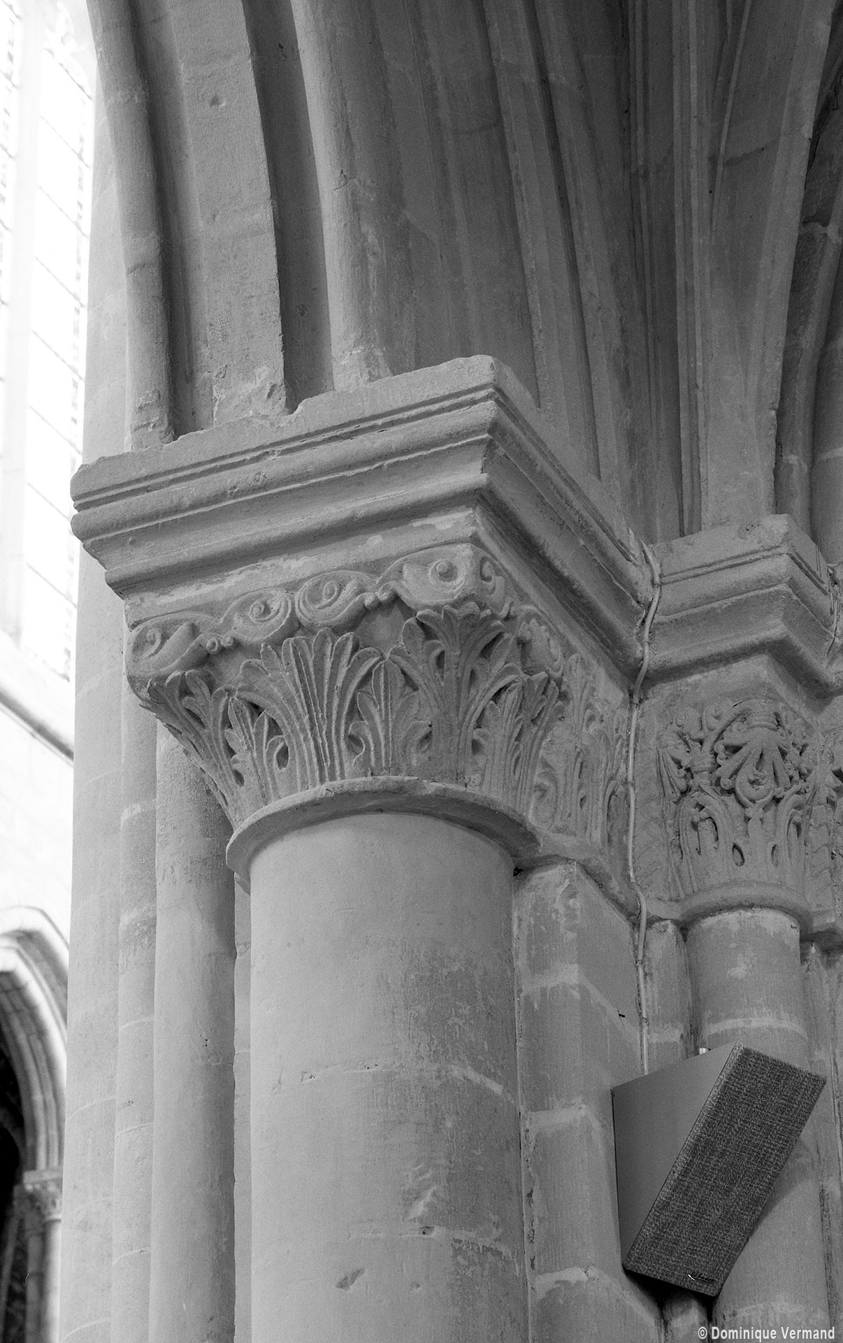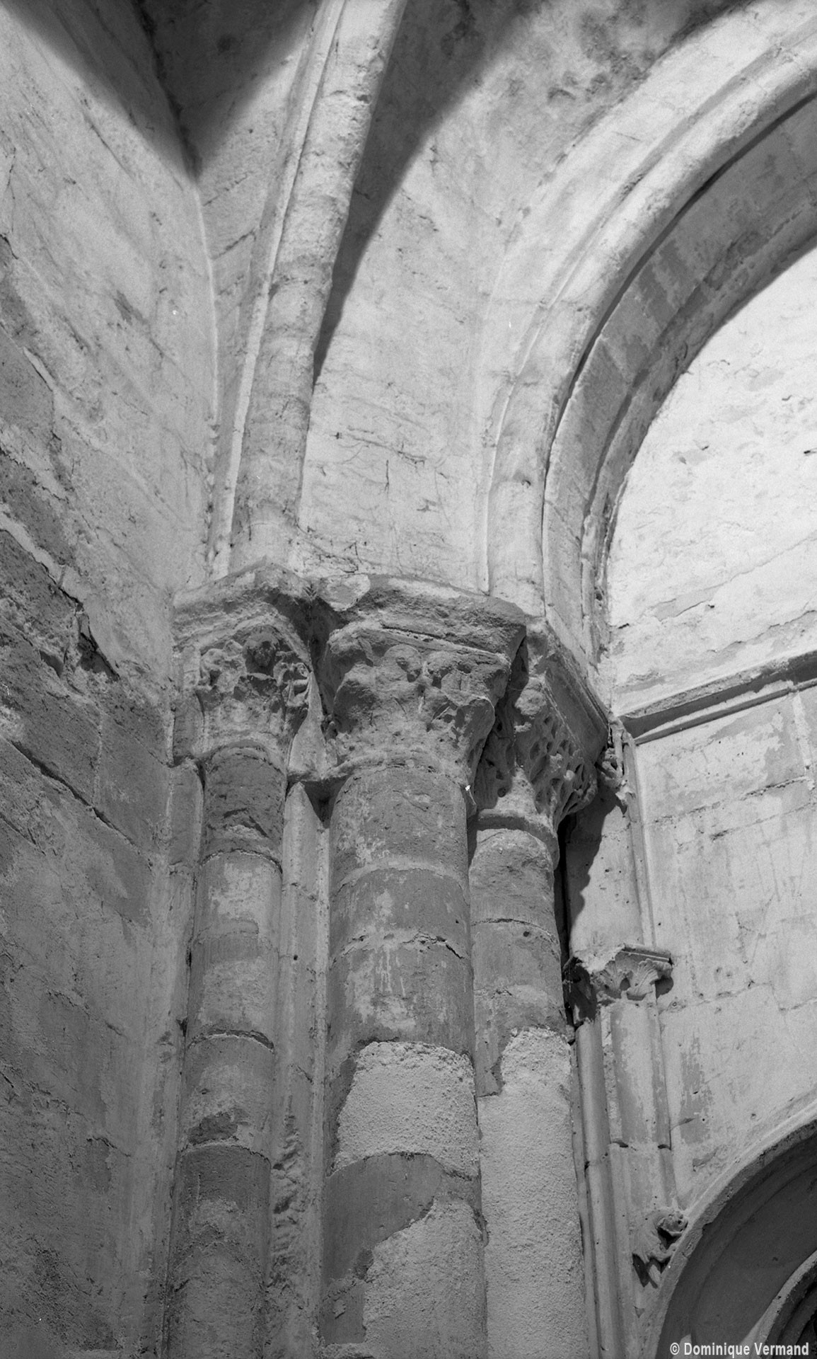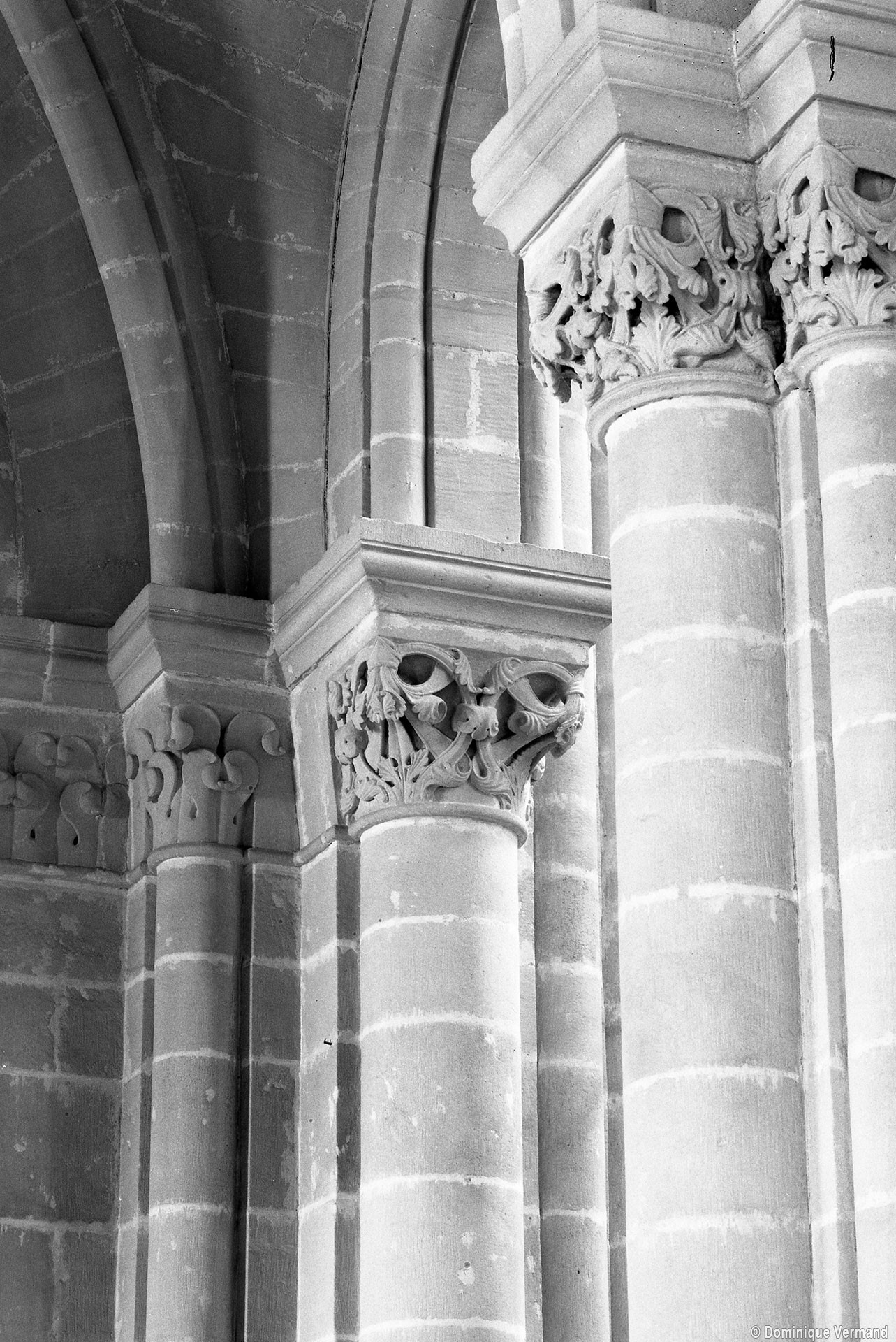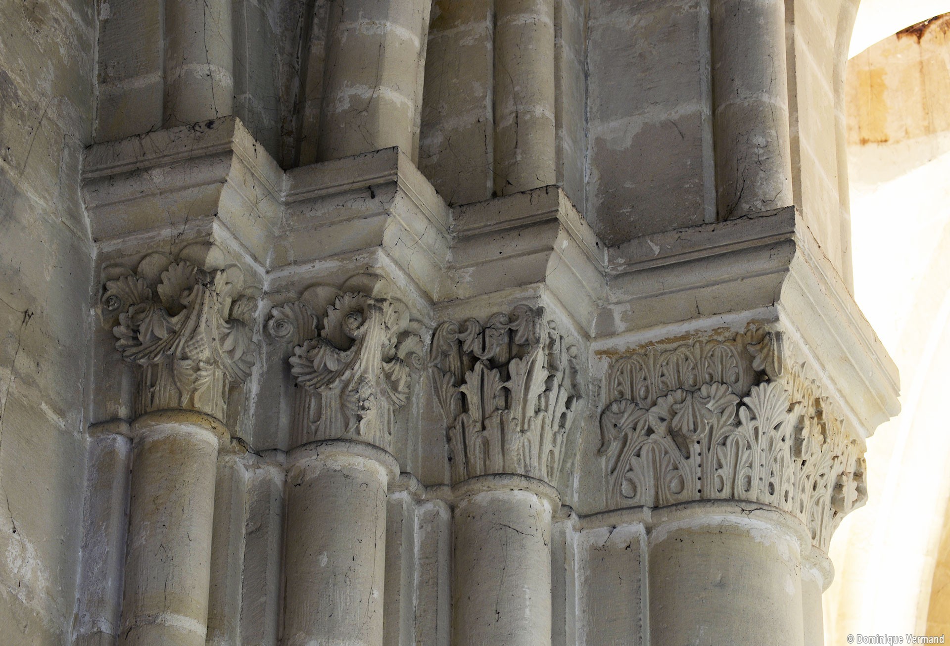 Le choeur du 12ème siècle : les chapiteaux et les bases des parties basses