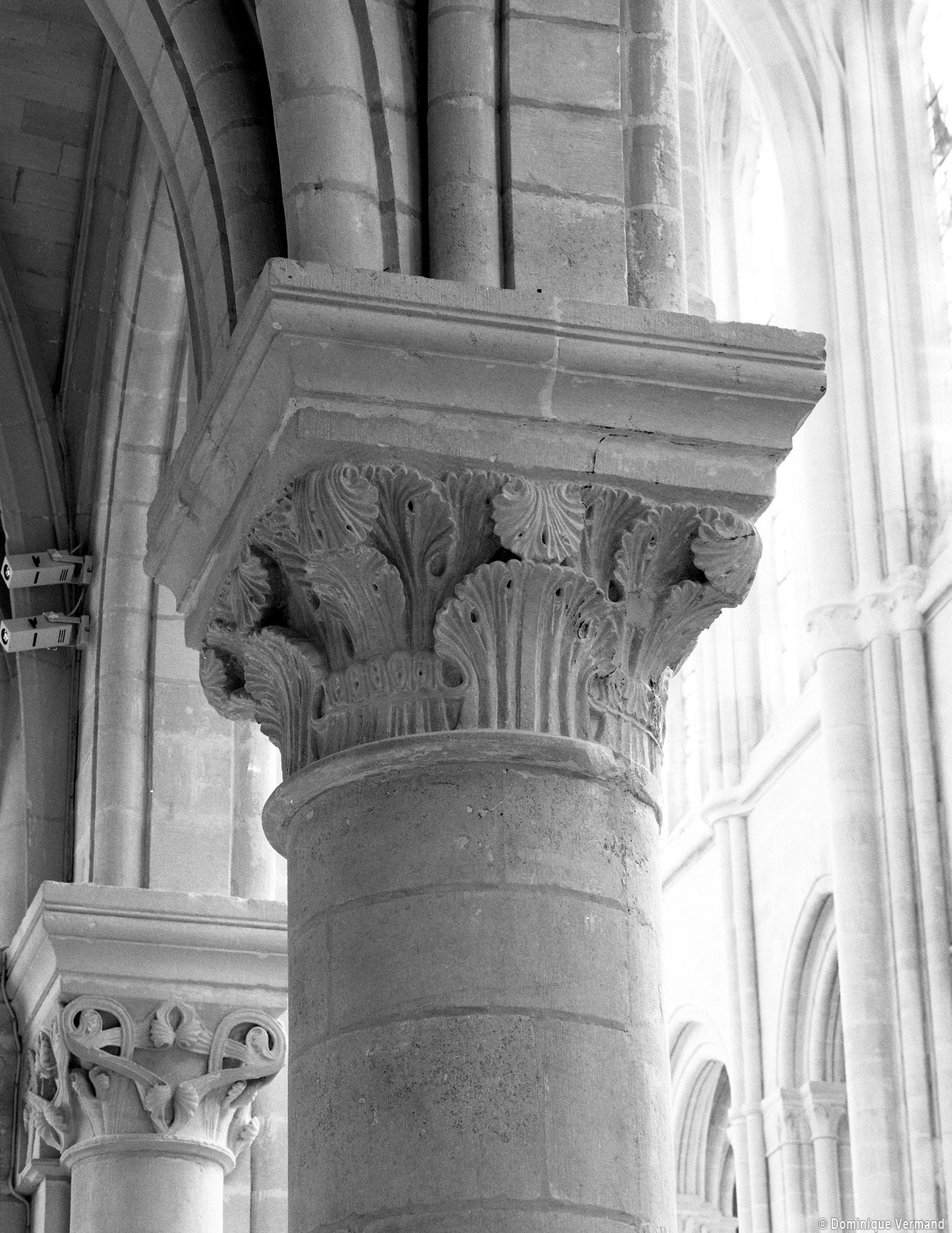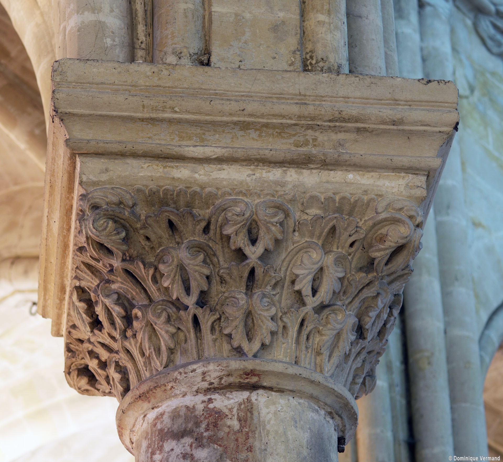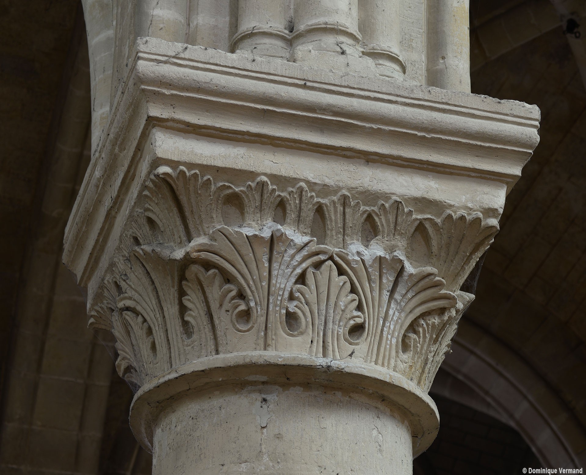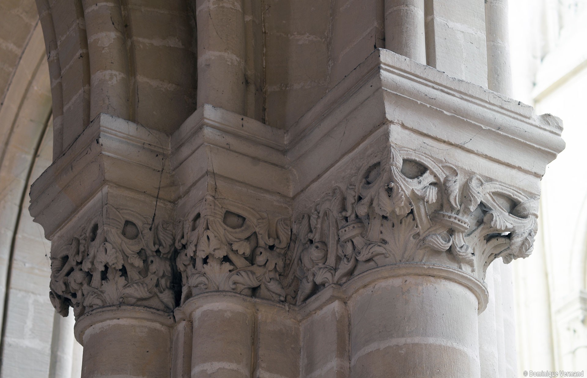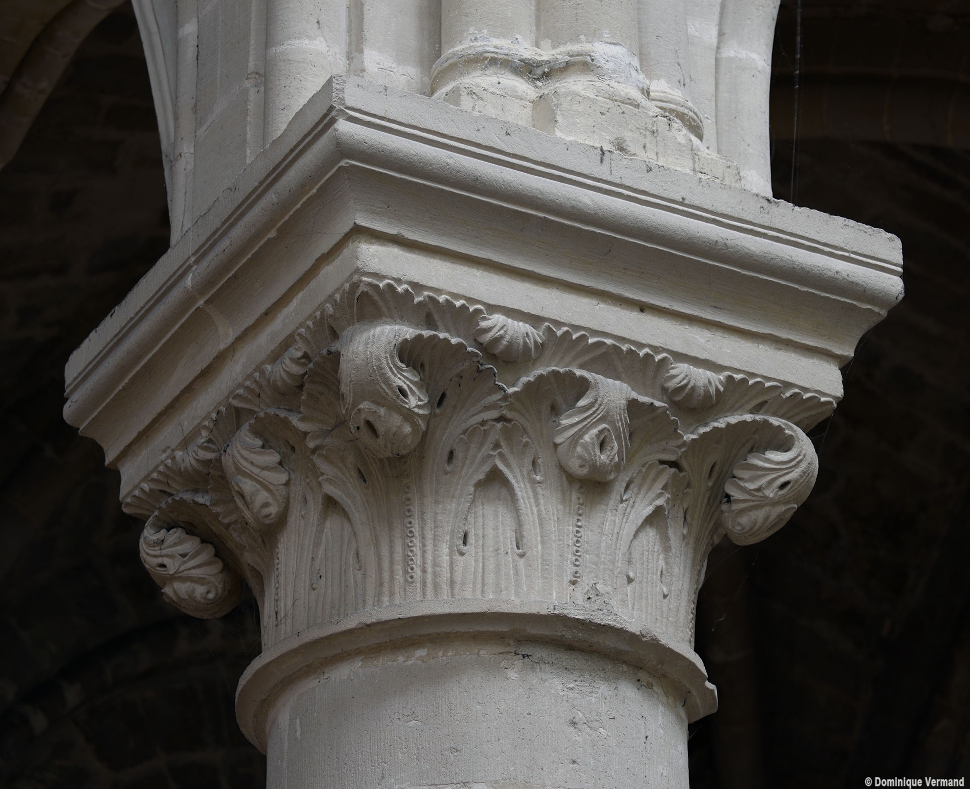 Le choeur du 12ème siècle : les chapiteaux et les bases des parties basses