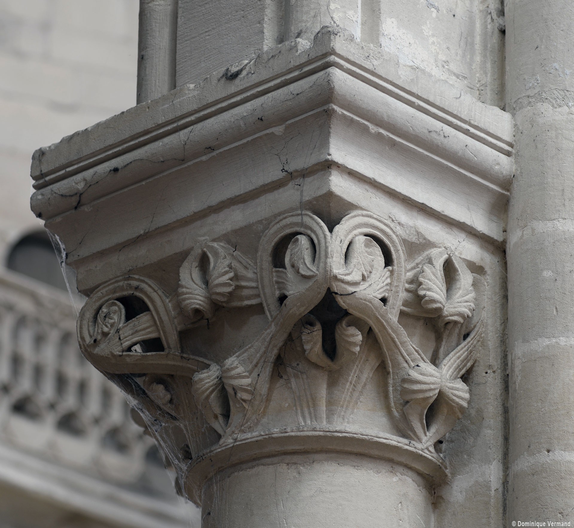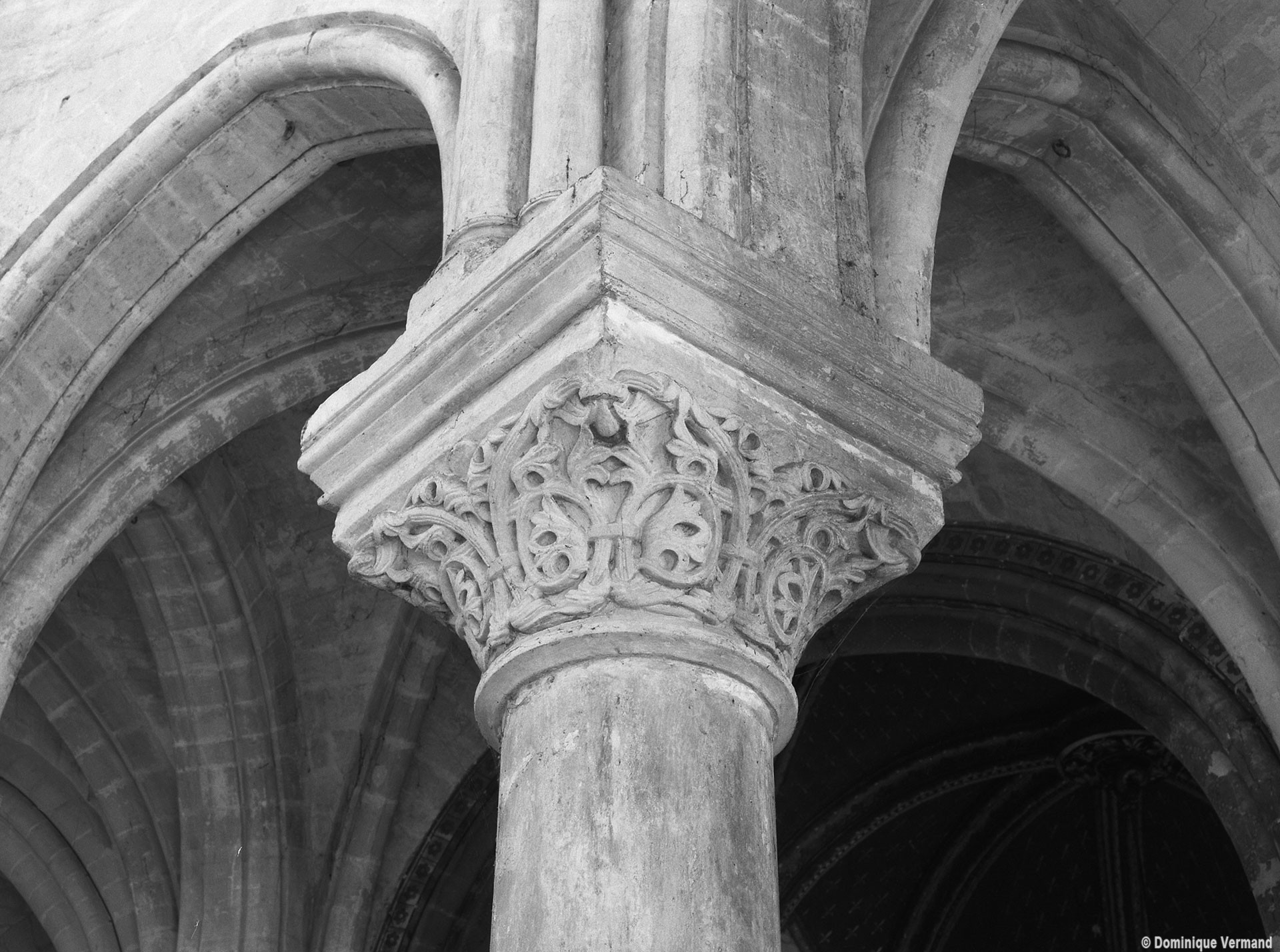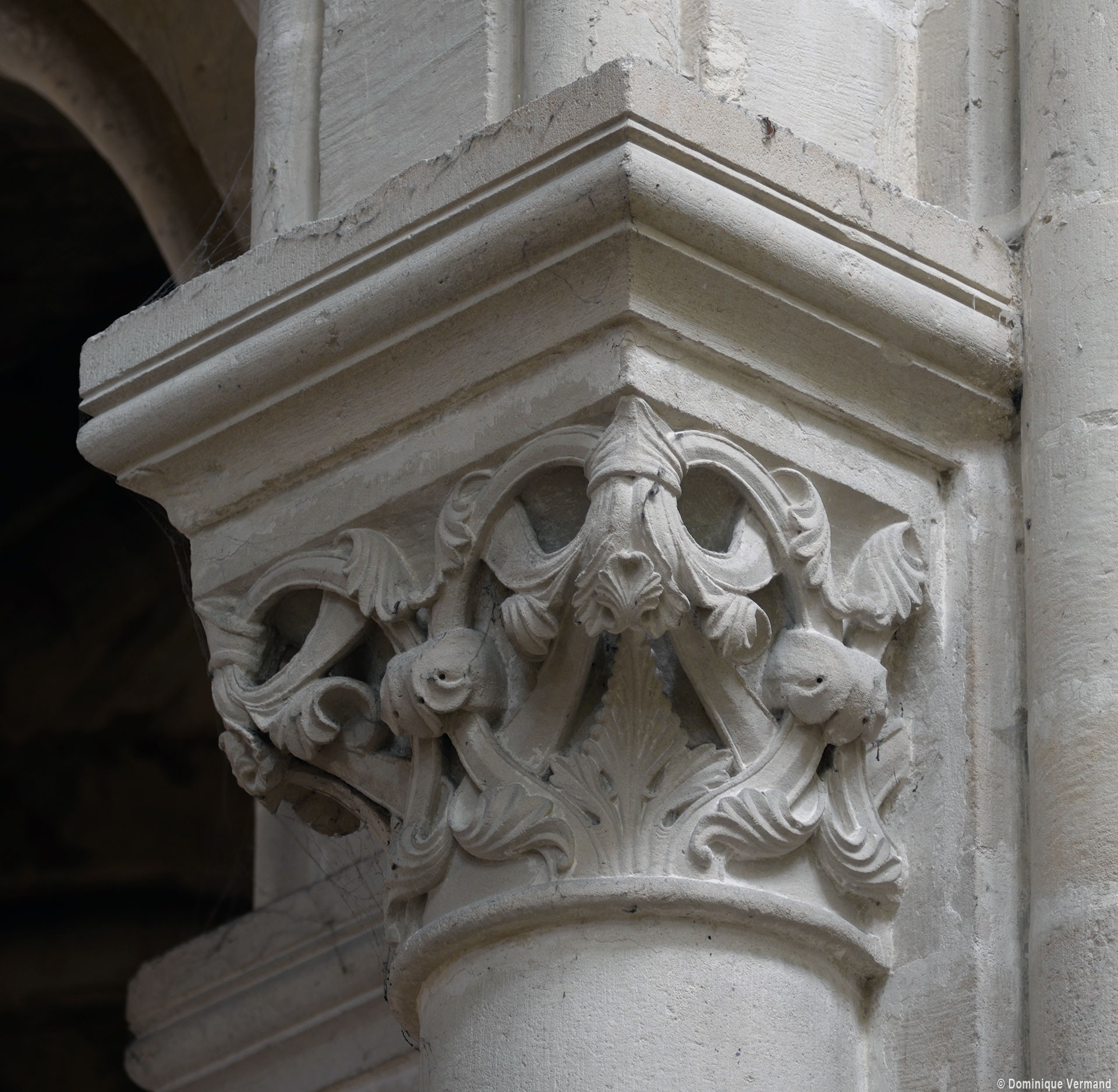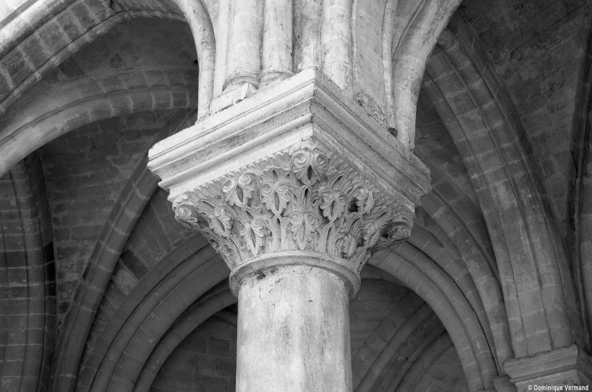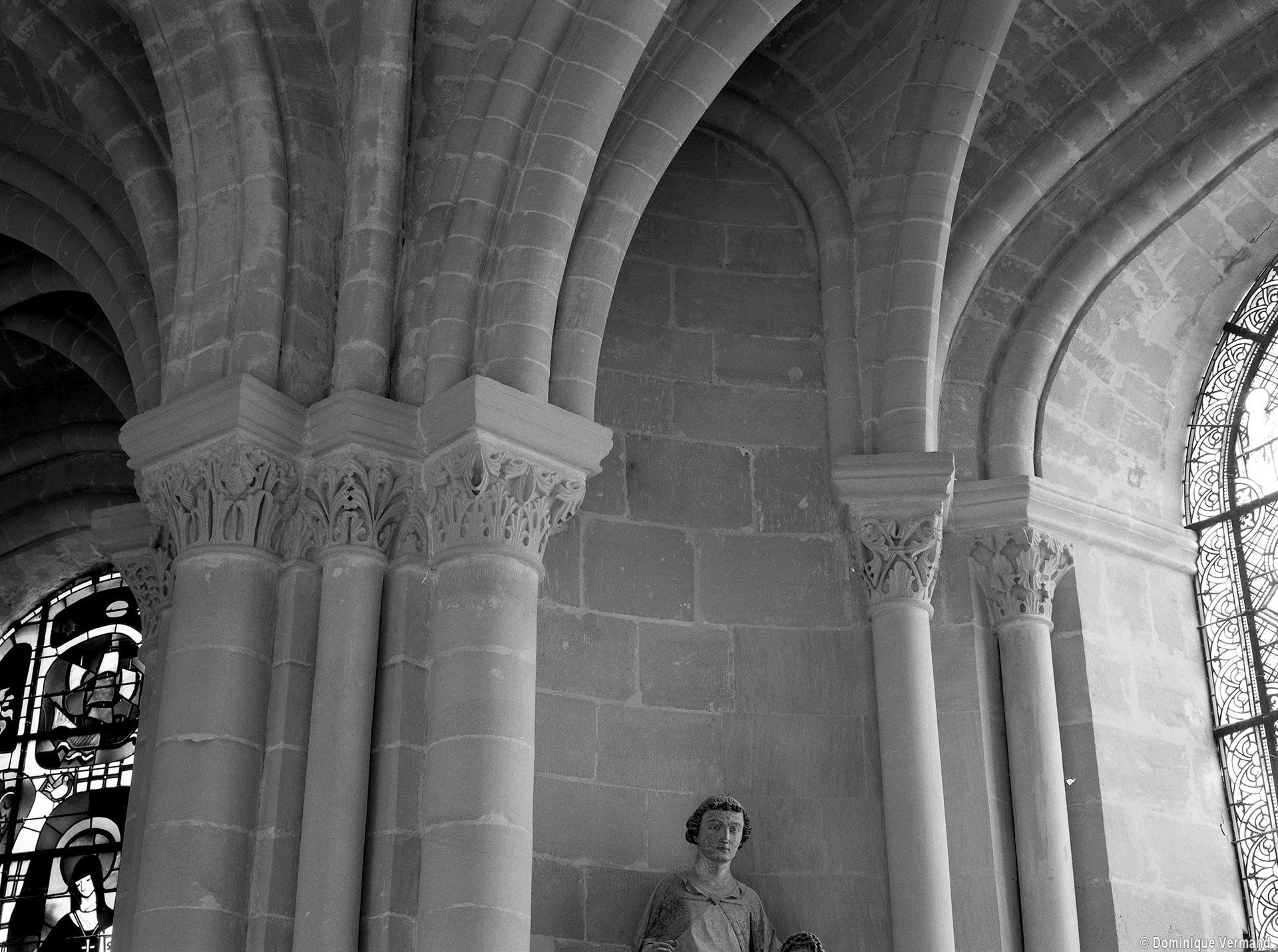 Le choeur du 12ème siècle : les chapiteaux et les bases des parties basses