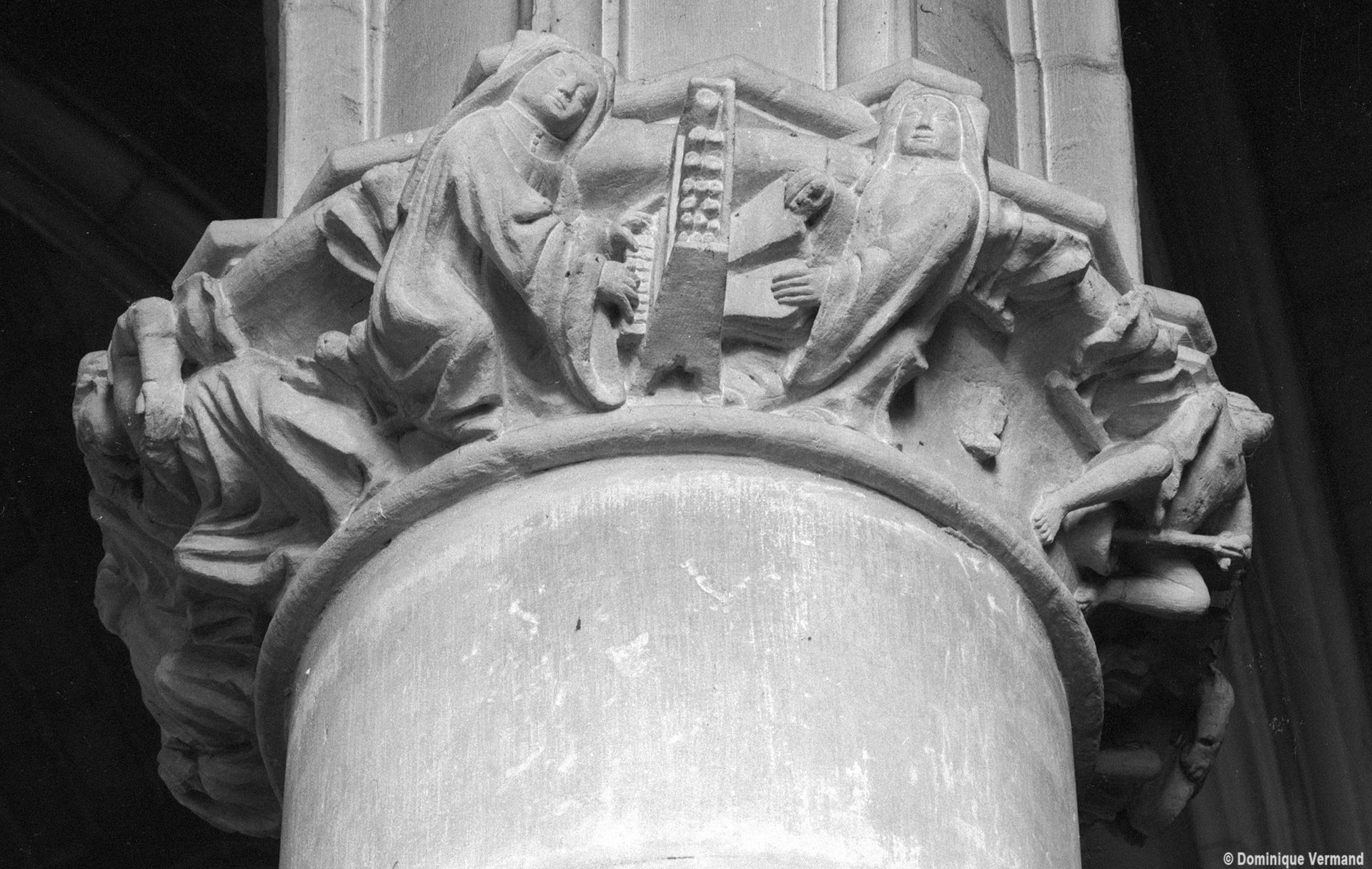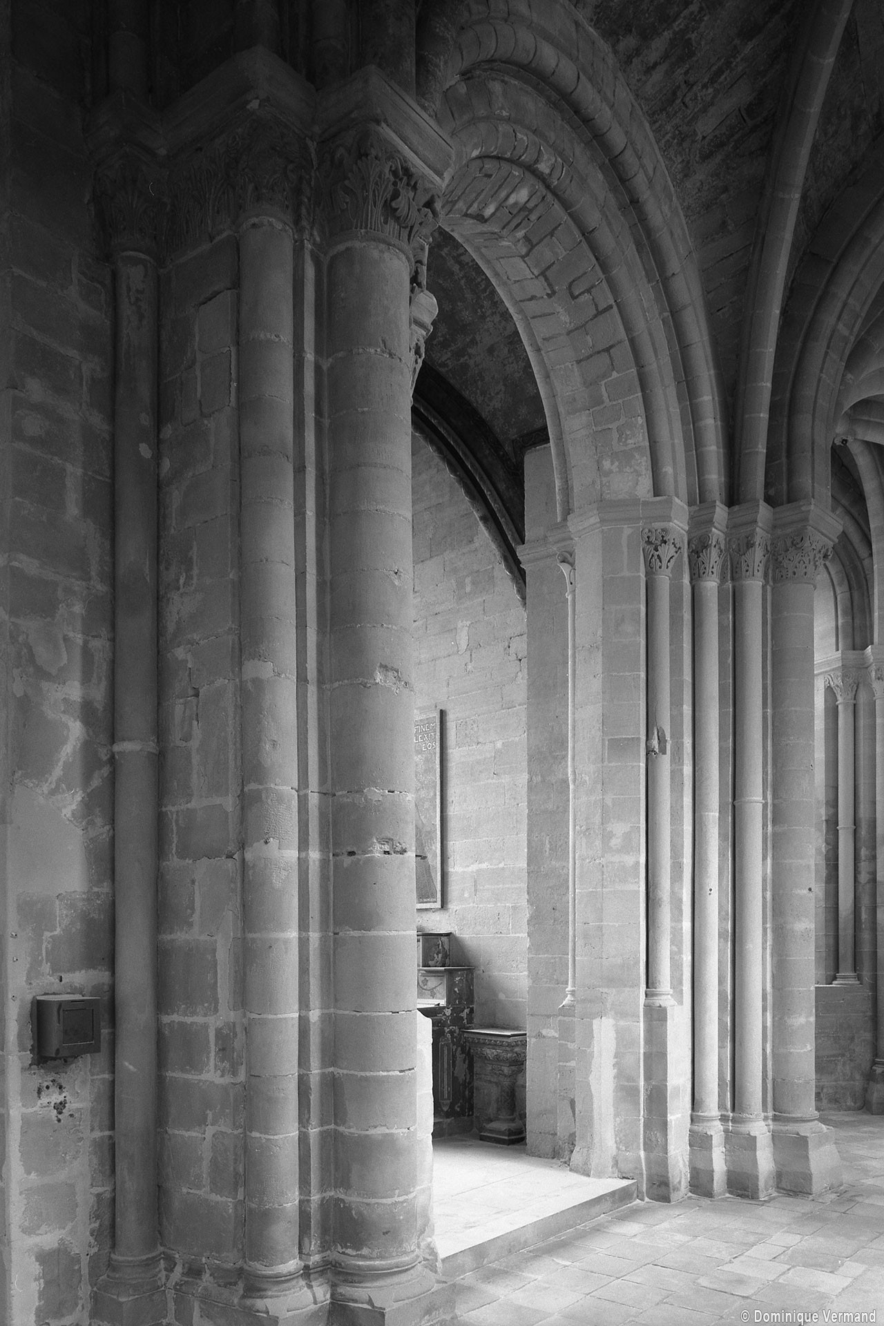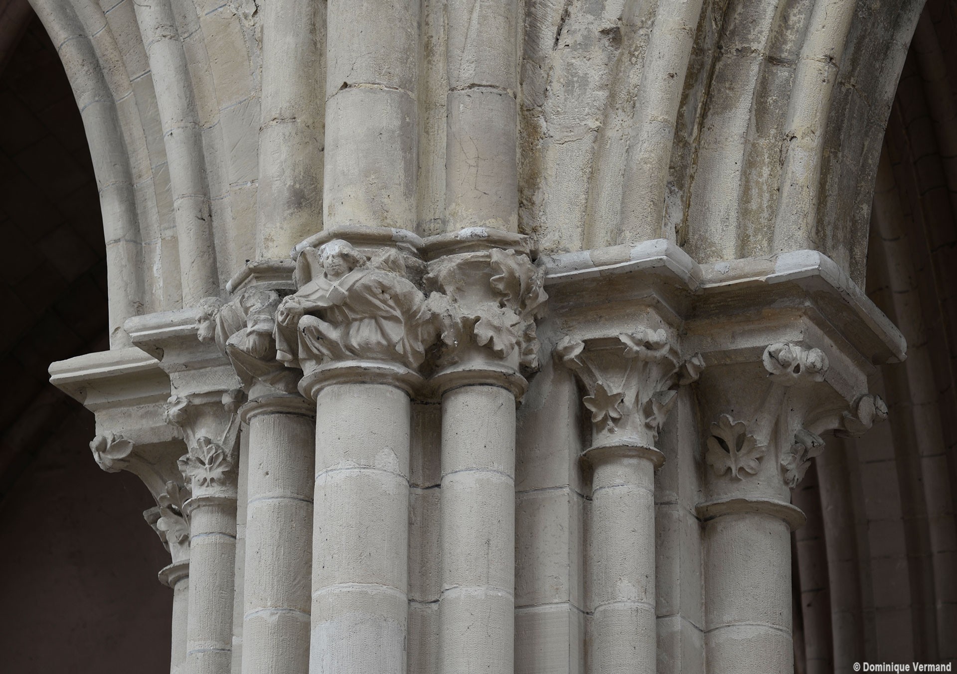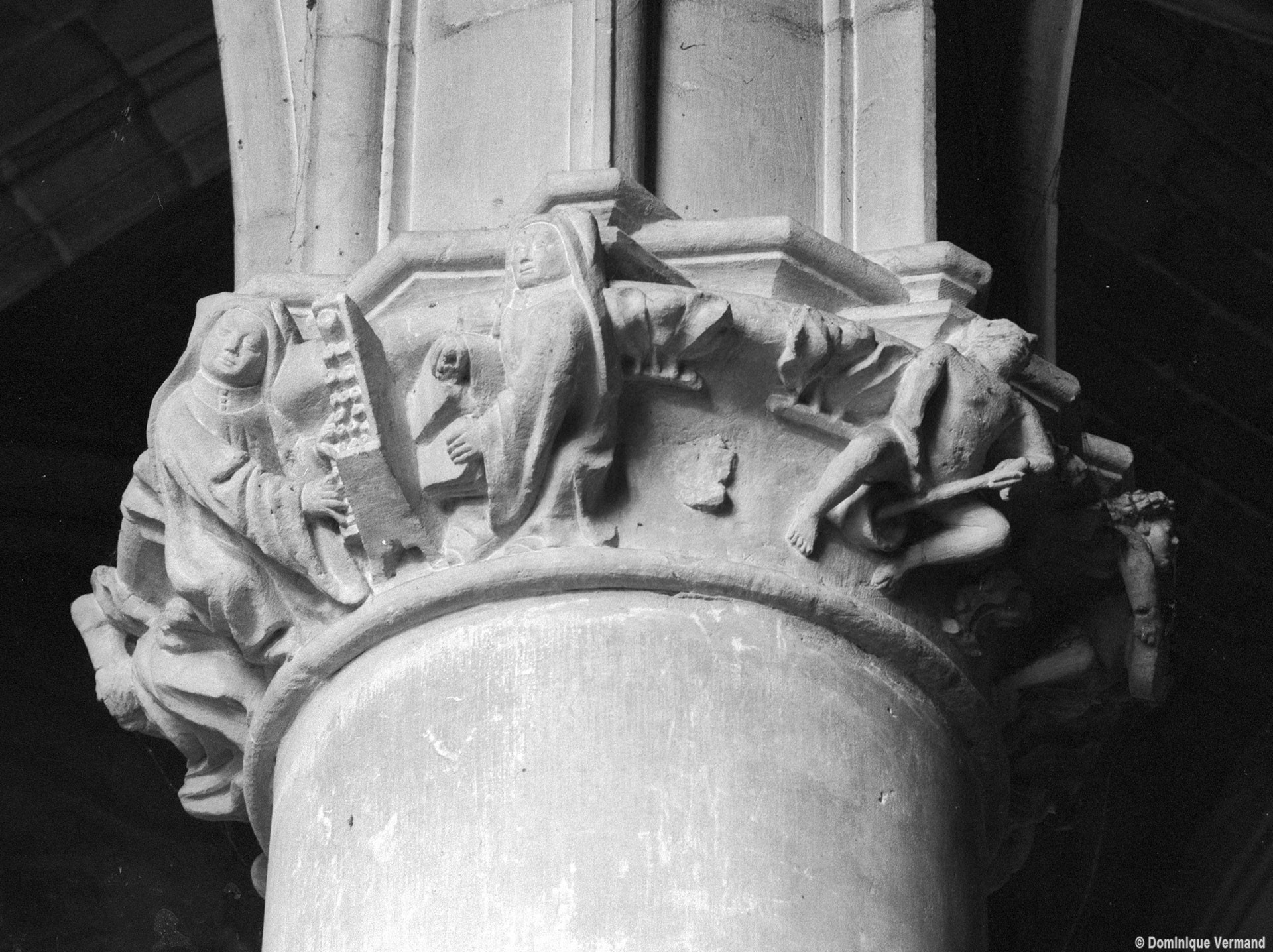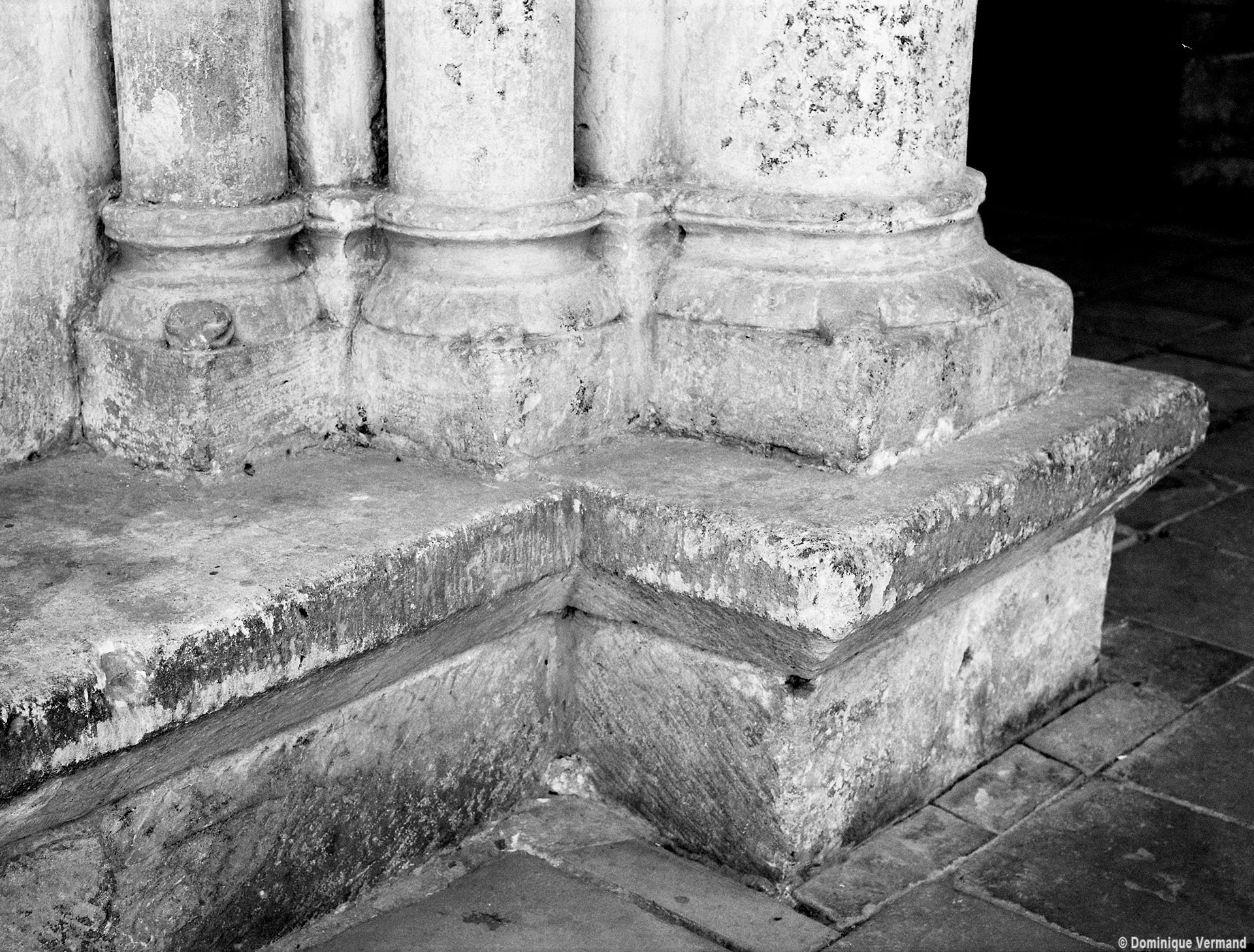 Le choeur du 12ème siècle : les chapiteaux et les bases des parties basses