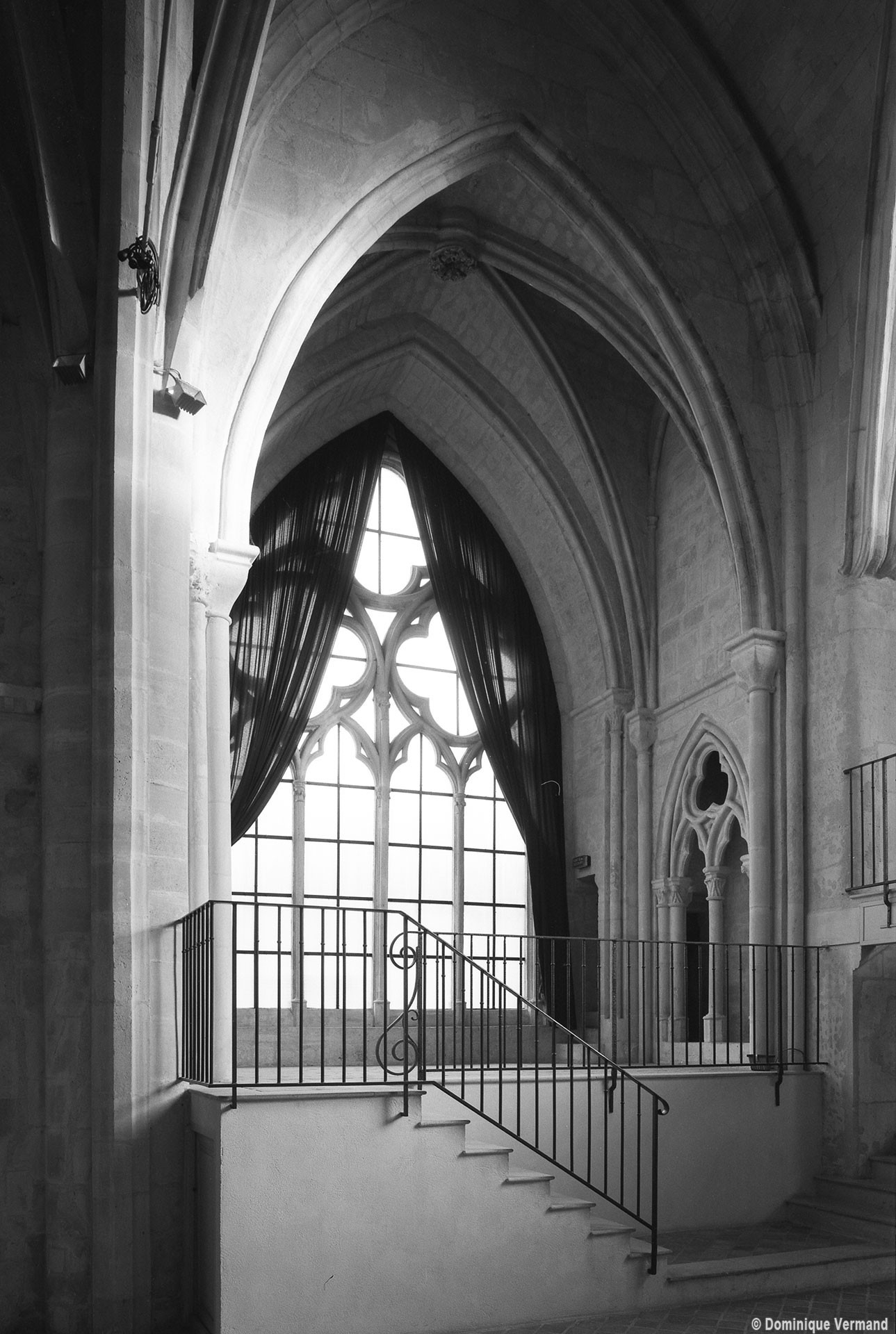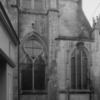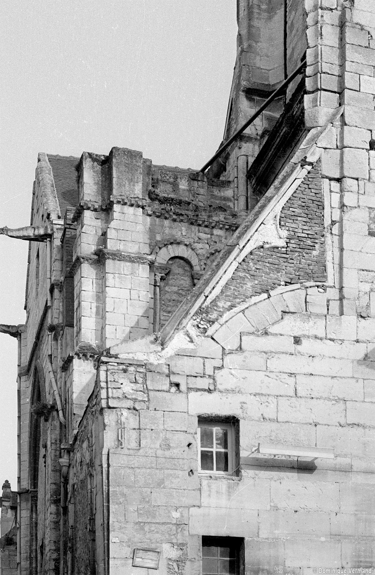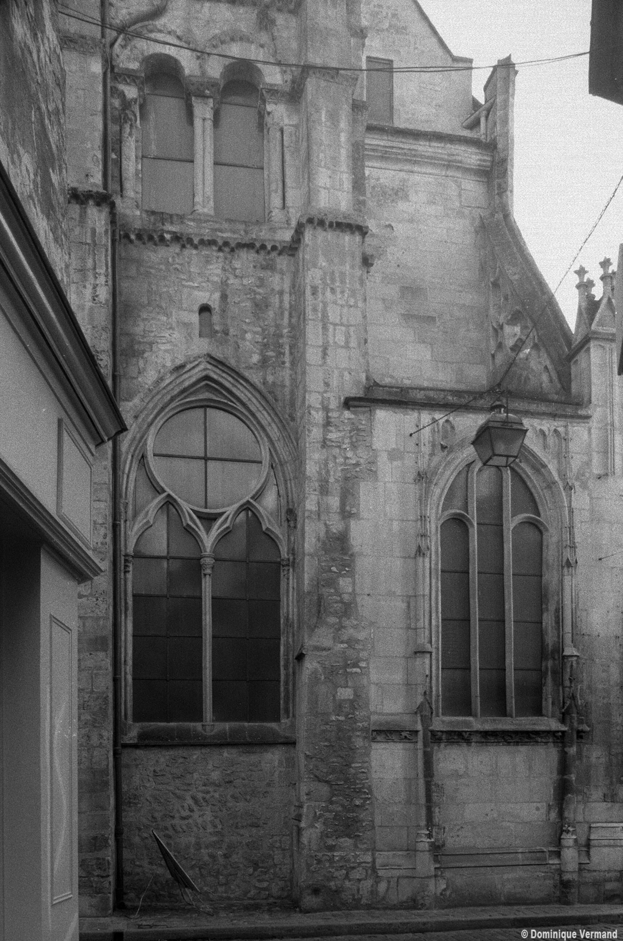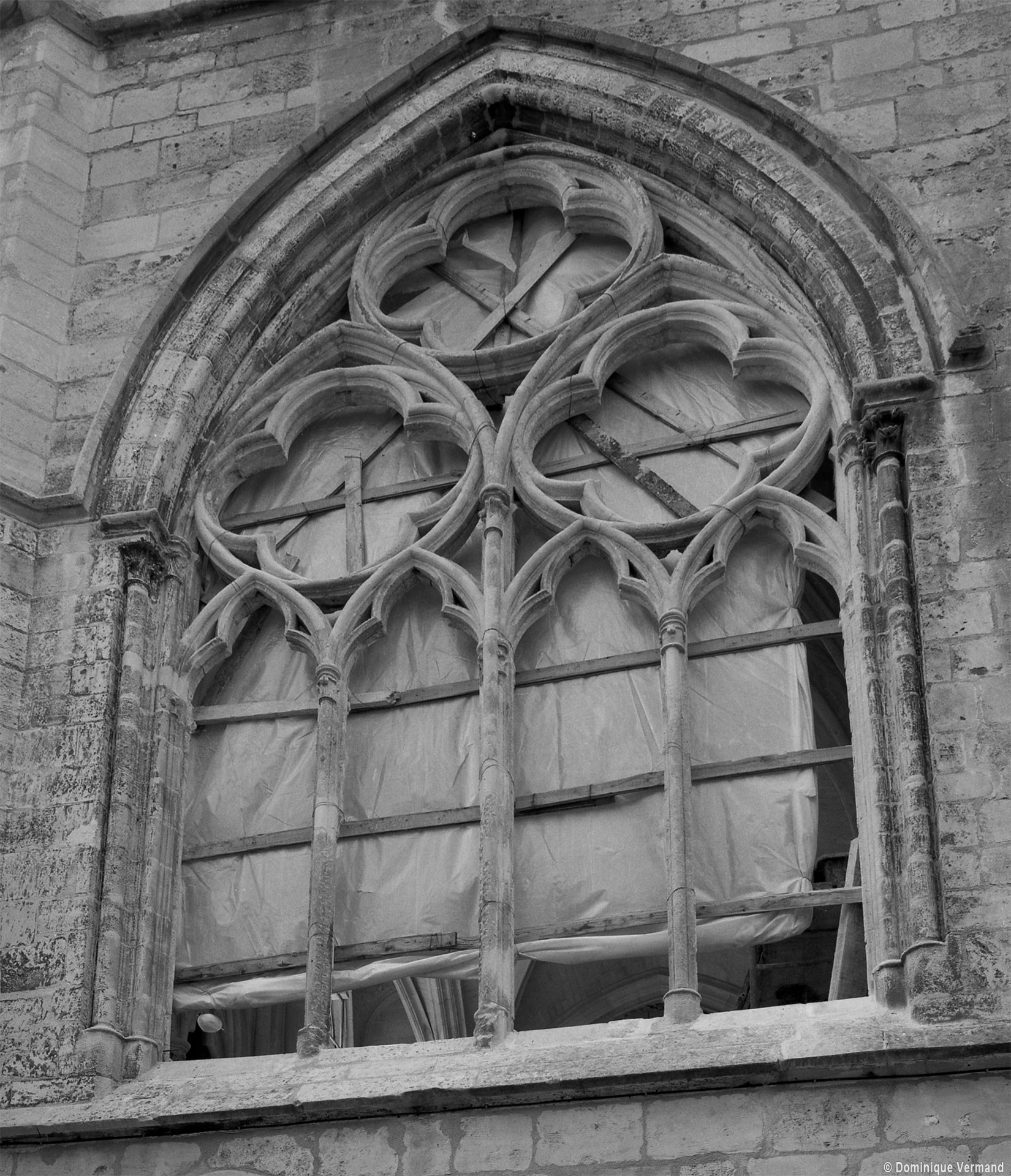 Une reconstruction générale des parties orientales a dû intervenir dans les années 1240, dont témoigne le court bras nord du transept (la rue empêchait tout développement de ce côté), doté d’un triforium dont une arcade a été dégagée et, surtout, éclairé par une magnifique fenêtre dont le réseau – quatre lancettes surmontées de trois roses quadrilobées – est un magnifique exemple de style gothique rayonnant.
