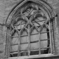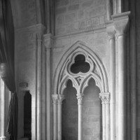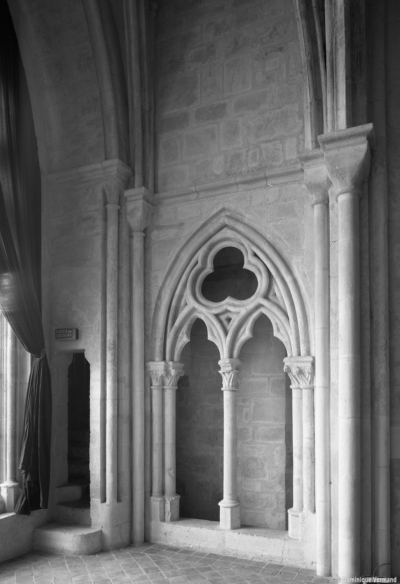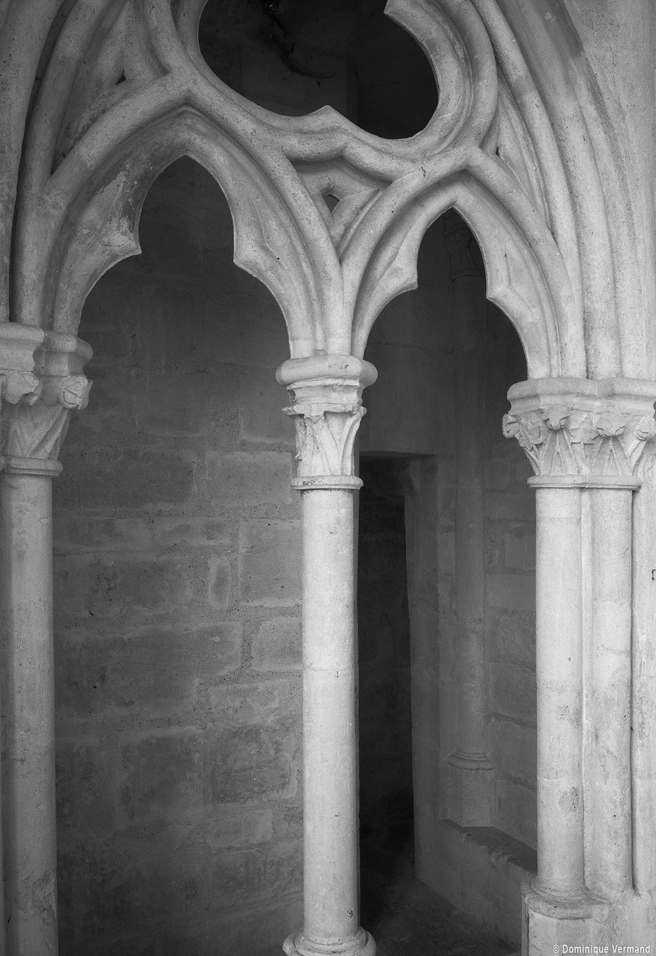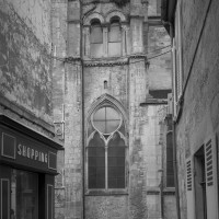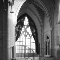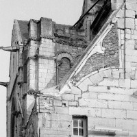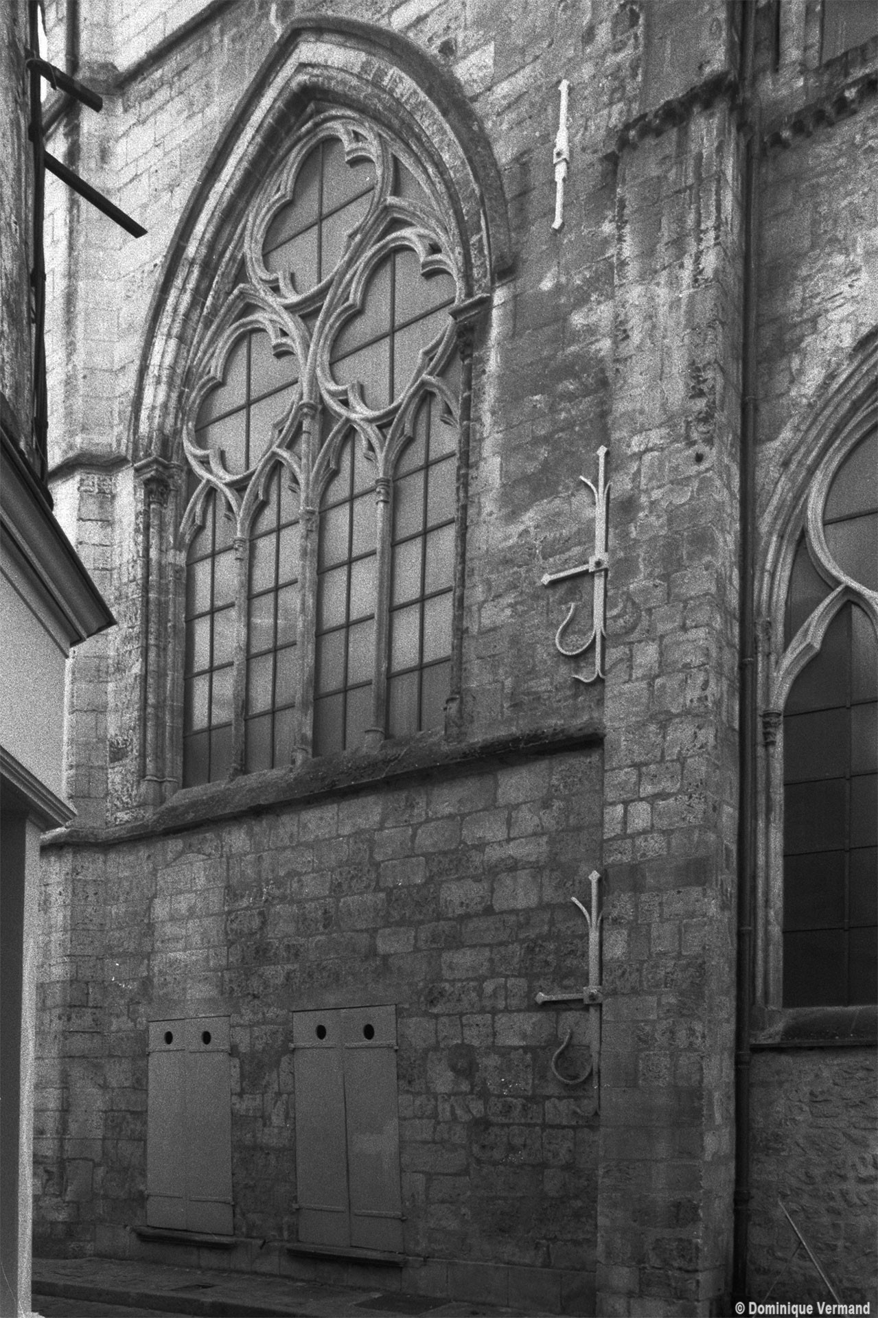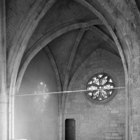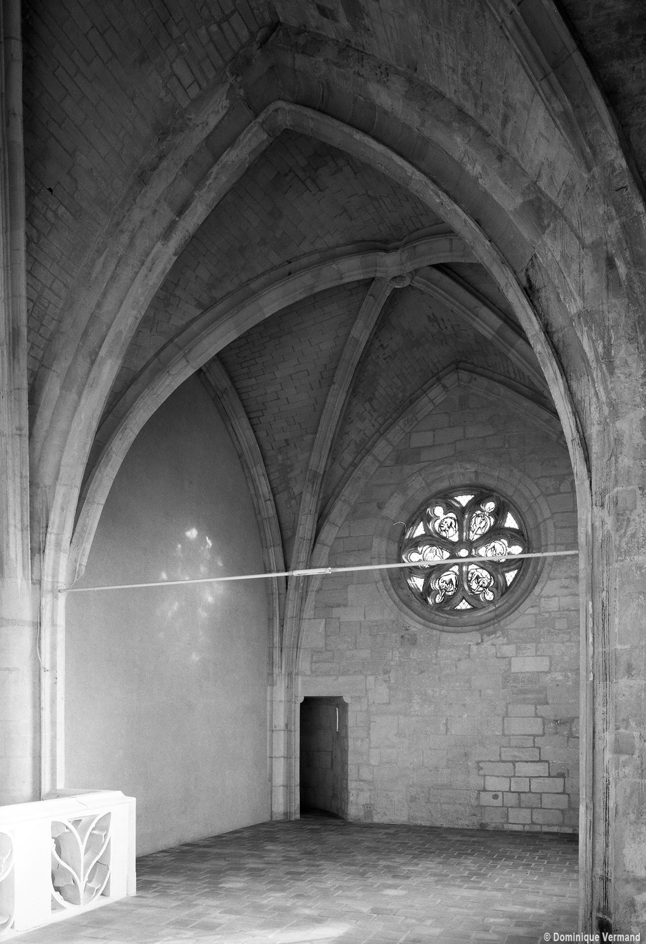 Une reconstruction générale des parties orientales a dû intervenir dans les années 1240, dont témoigne le court bras nord du transept (la rue empêchait tout développement de ce côté), doté d’un triforium dont une arcade a été dégagée et, surtout, éclairé par une magnifique fenêtre dont le réseau – quatre lancettes surmontées de trois roses quadrilobées – est un magnifique exemple de style gothique rayonnant.
