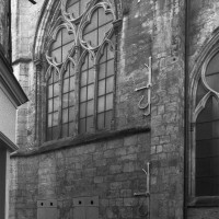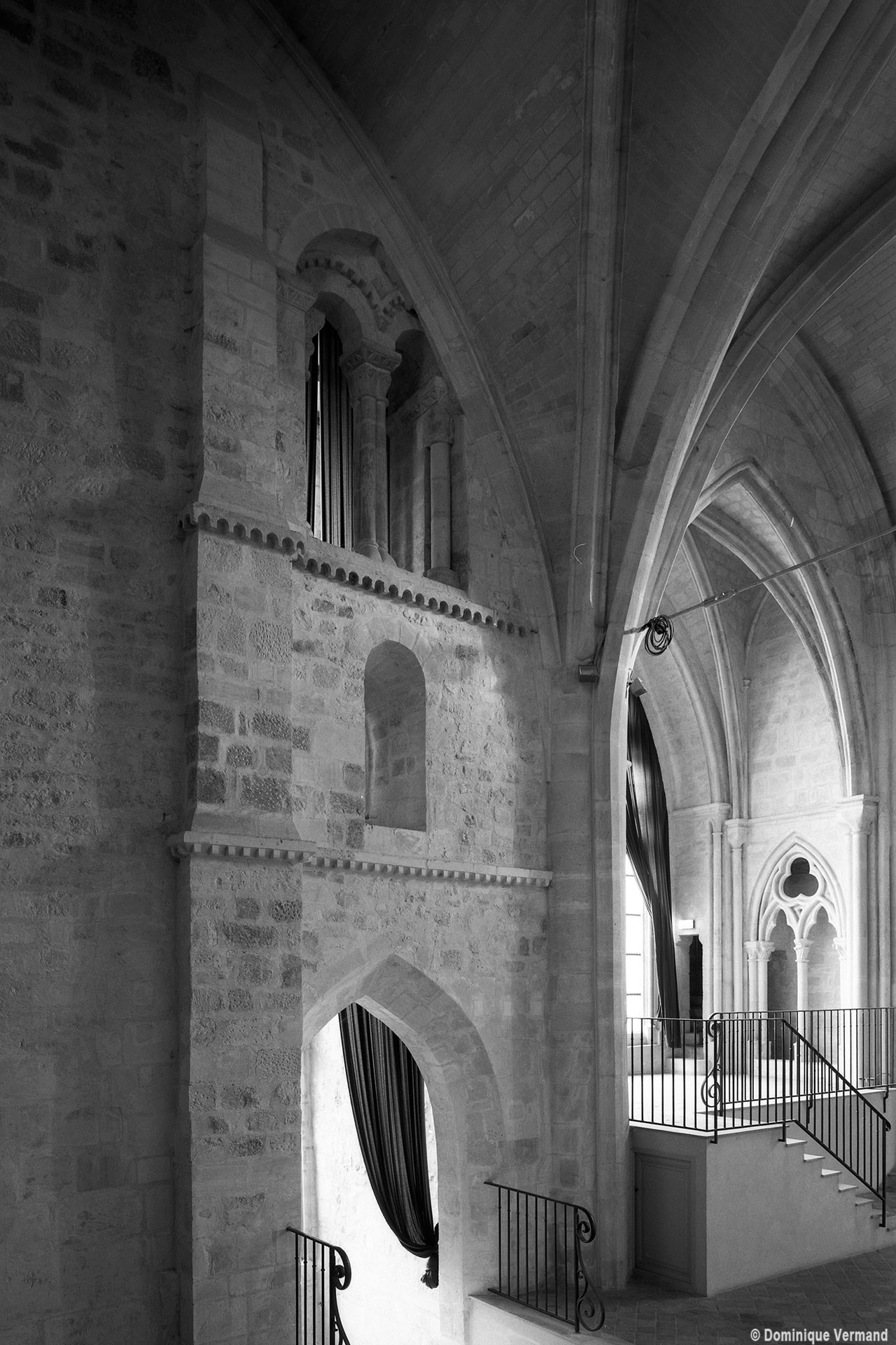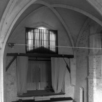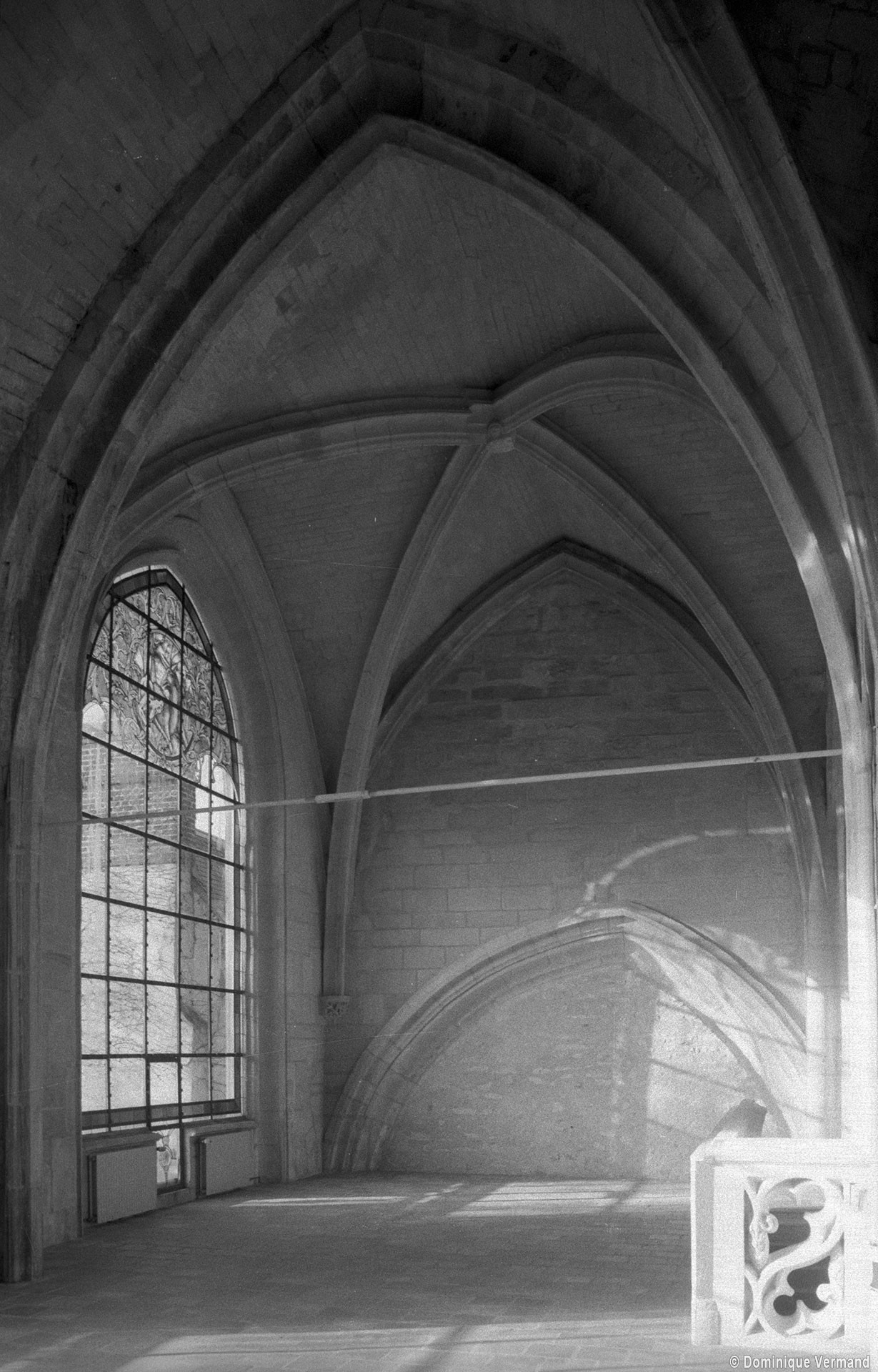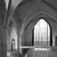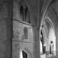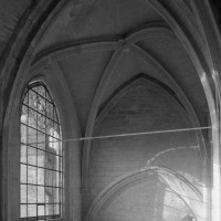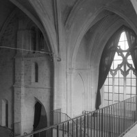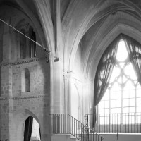 Ce chœur sera à nouveau reconstruit au 15ème siècle et doté, au sud, d’un bas-côté de même hauteur que le vaisseau principal, les quatre voûtes, soutenues par des ogives à profil prismatique, retombant au centre sur une unique pile circulaire. Ce parti confère à l’ensemble une belle unité spatiale qu’amoindrie cependant la division actuelle en deux étages. Une chapelle et une sacristie, couvertes de voûtes à liernes et tiercerons, seront ajoutées au 16ème siècle, toujours du côté sud.