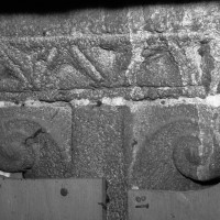 Privé en partie de son second étage et totalement remanié à sa base, le clocher actuel, avec ses baies géminées en plein cintre décorées de billettes et ses tailloirs ornés de triangles gravés ne doit guère être de beaucoup postérieur au milieu du 11ème siècle.