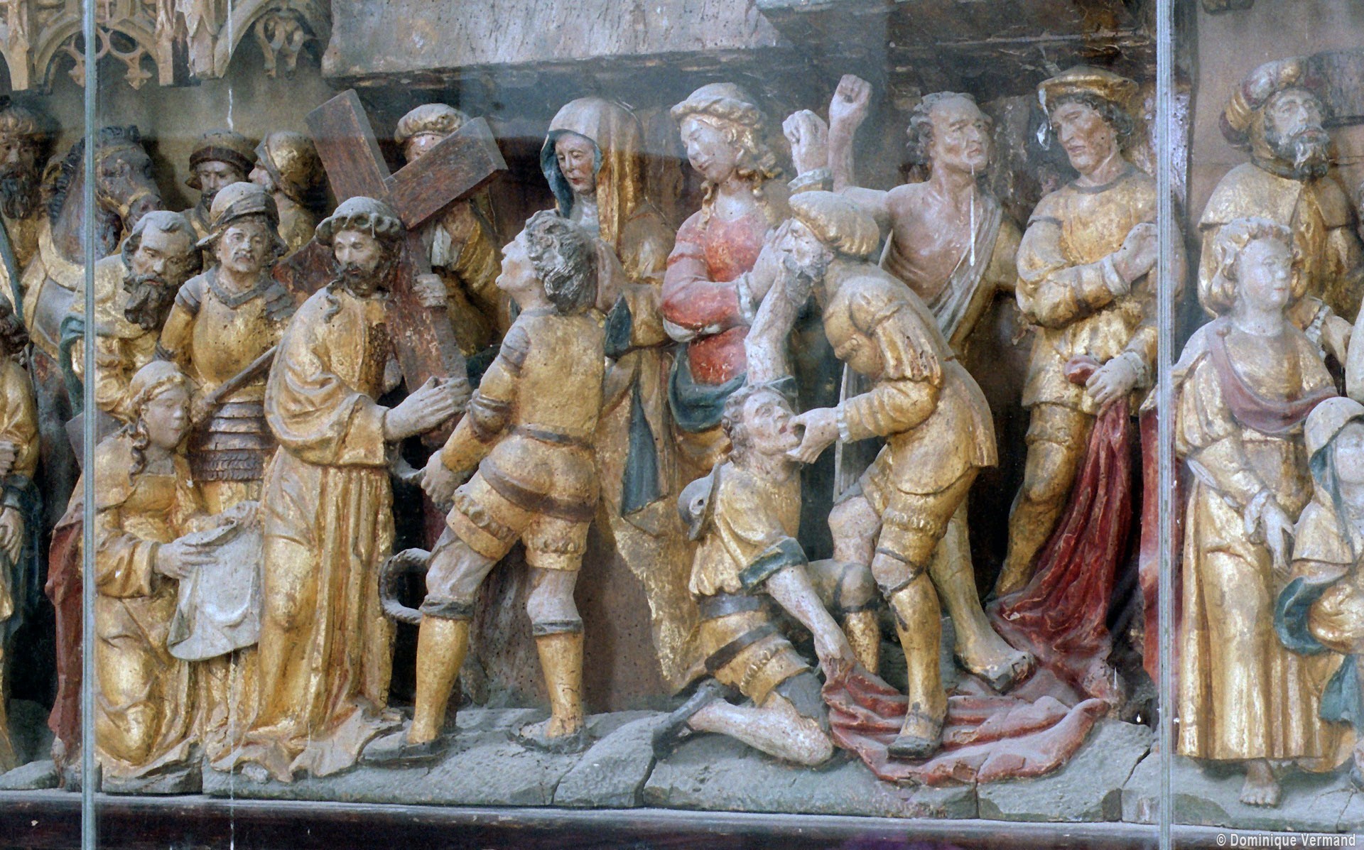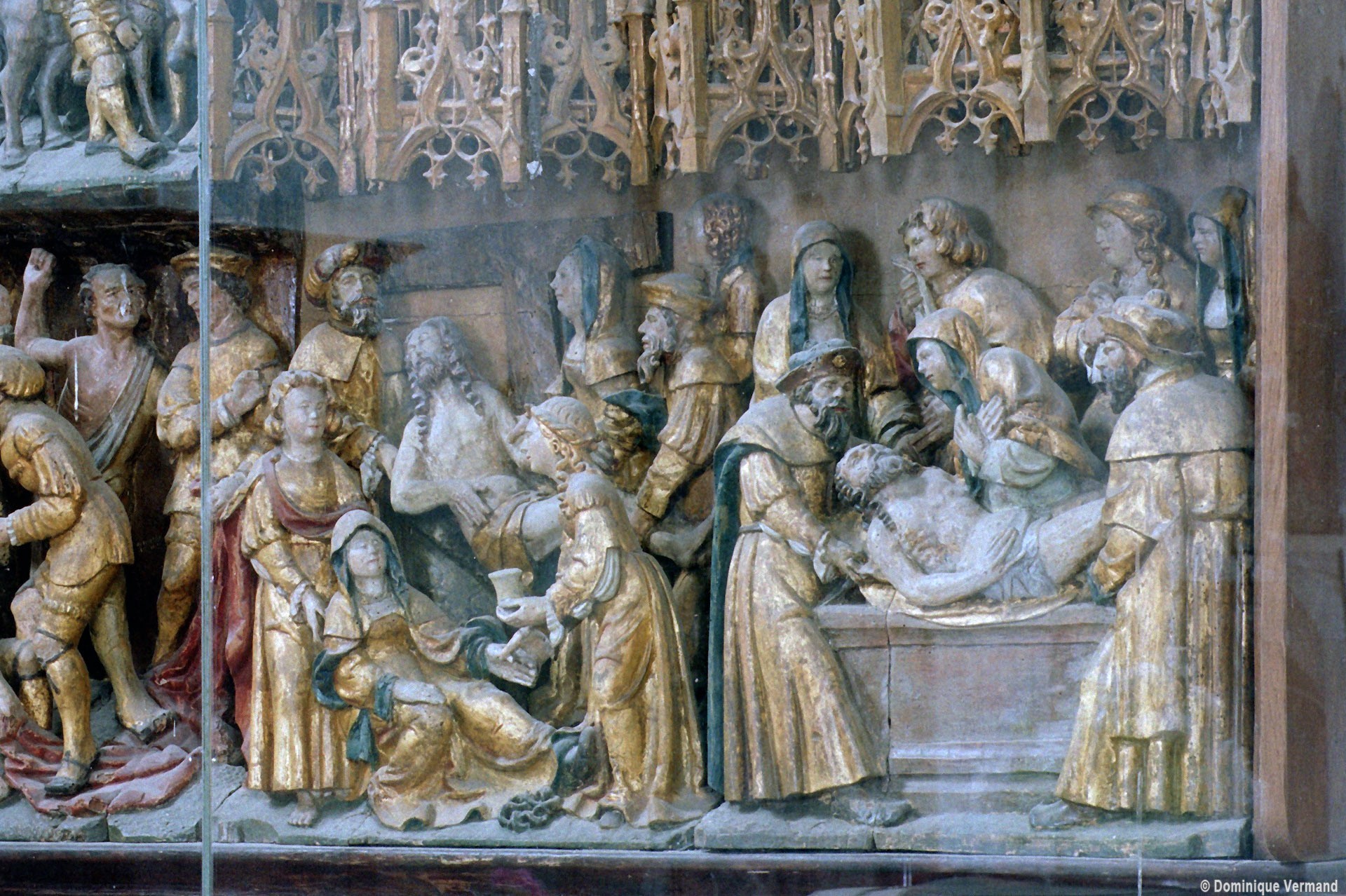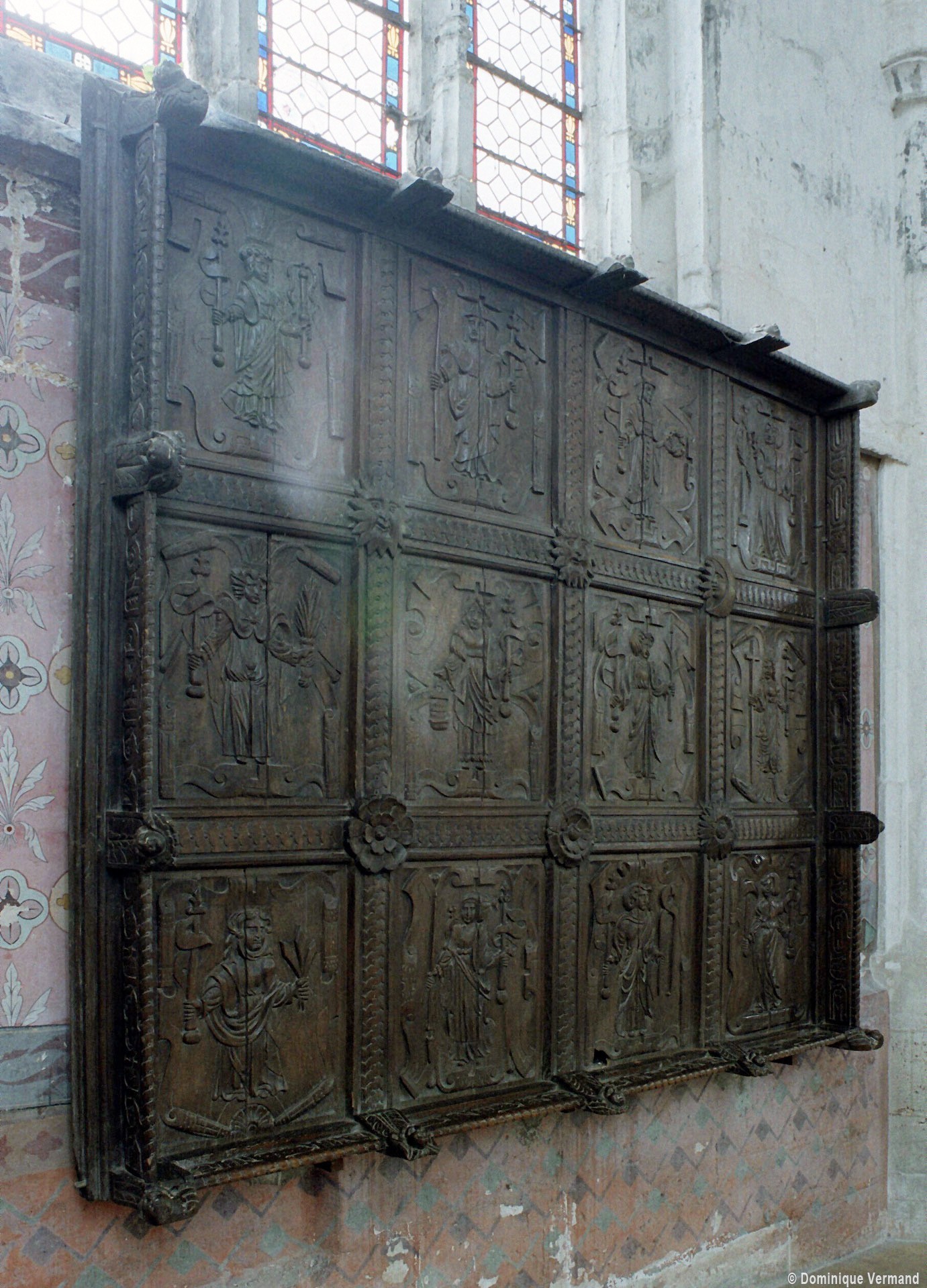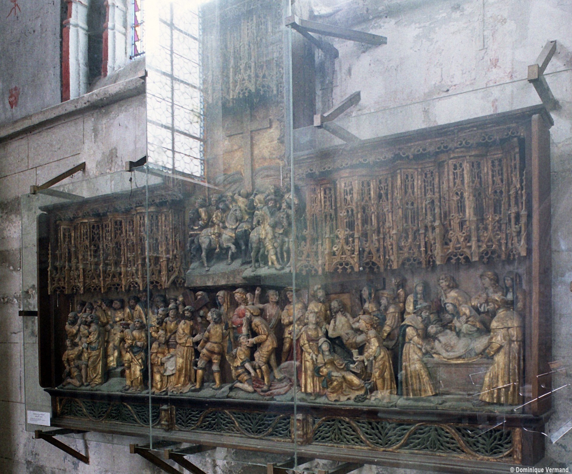 Riche dans son architecture, Saint-Denis l’est aussi par son mobilier : exceptionnel retable en bois polychrome de la Passion du Christ et dais d’autel comprenant douze panneaux sculptés des instruments de la Passion (16ème siècle); deux autels retables secondaires des 17ème et 18ème siècles; remarquable ensemble formé par le maître autel avec son retable peint d’une représentation de la Sainte Famille et les boiseries qui habillent le choeur (vers 1700), pour ne retenir que les éléments les plus marquants (2006).