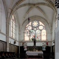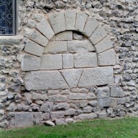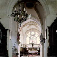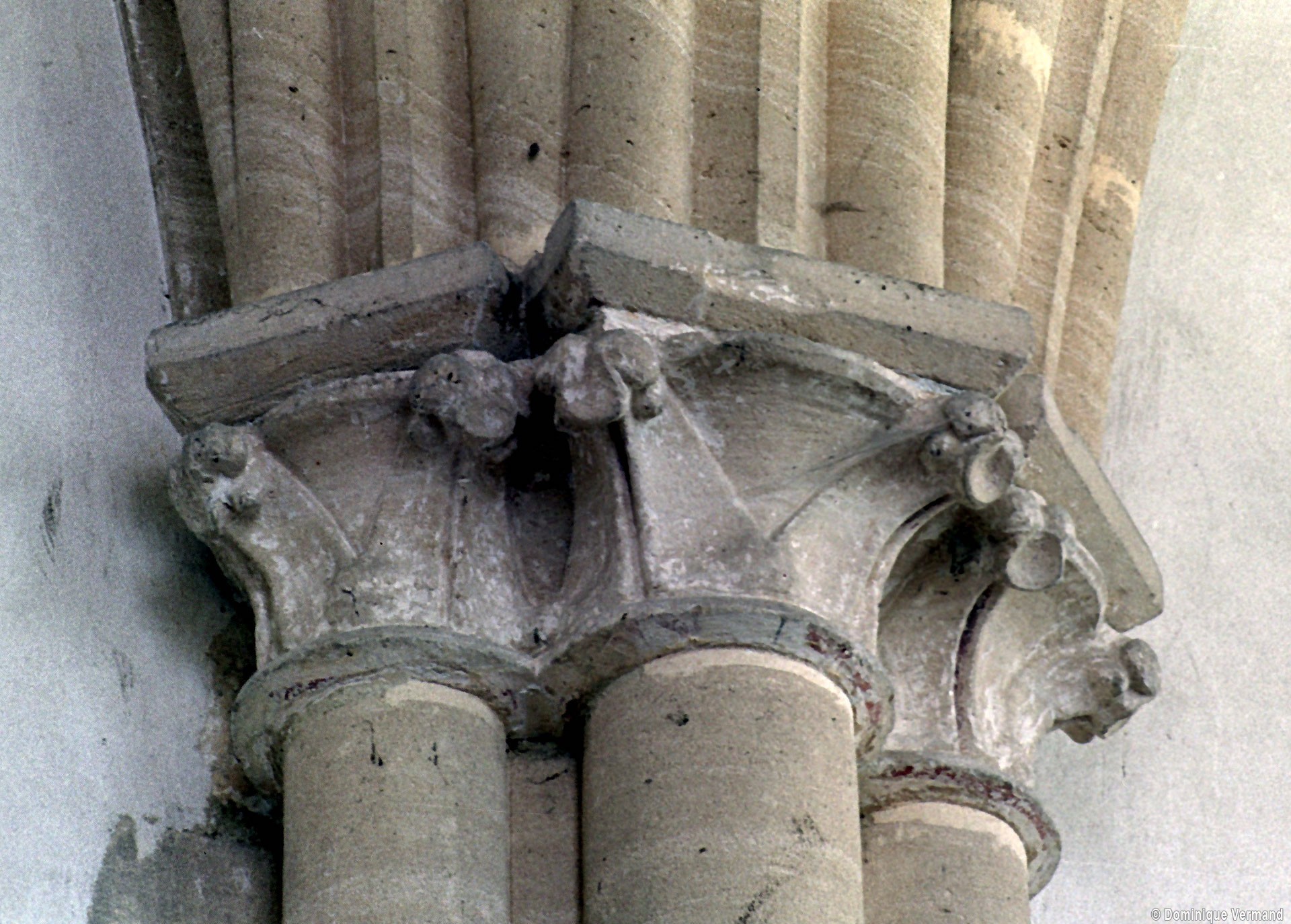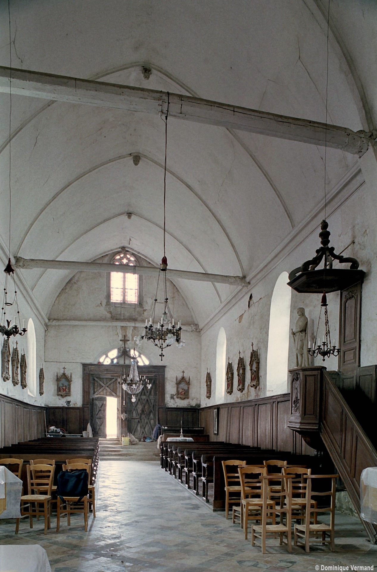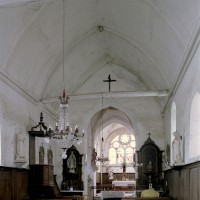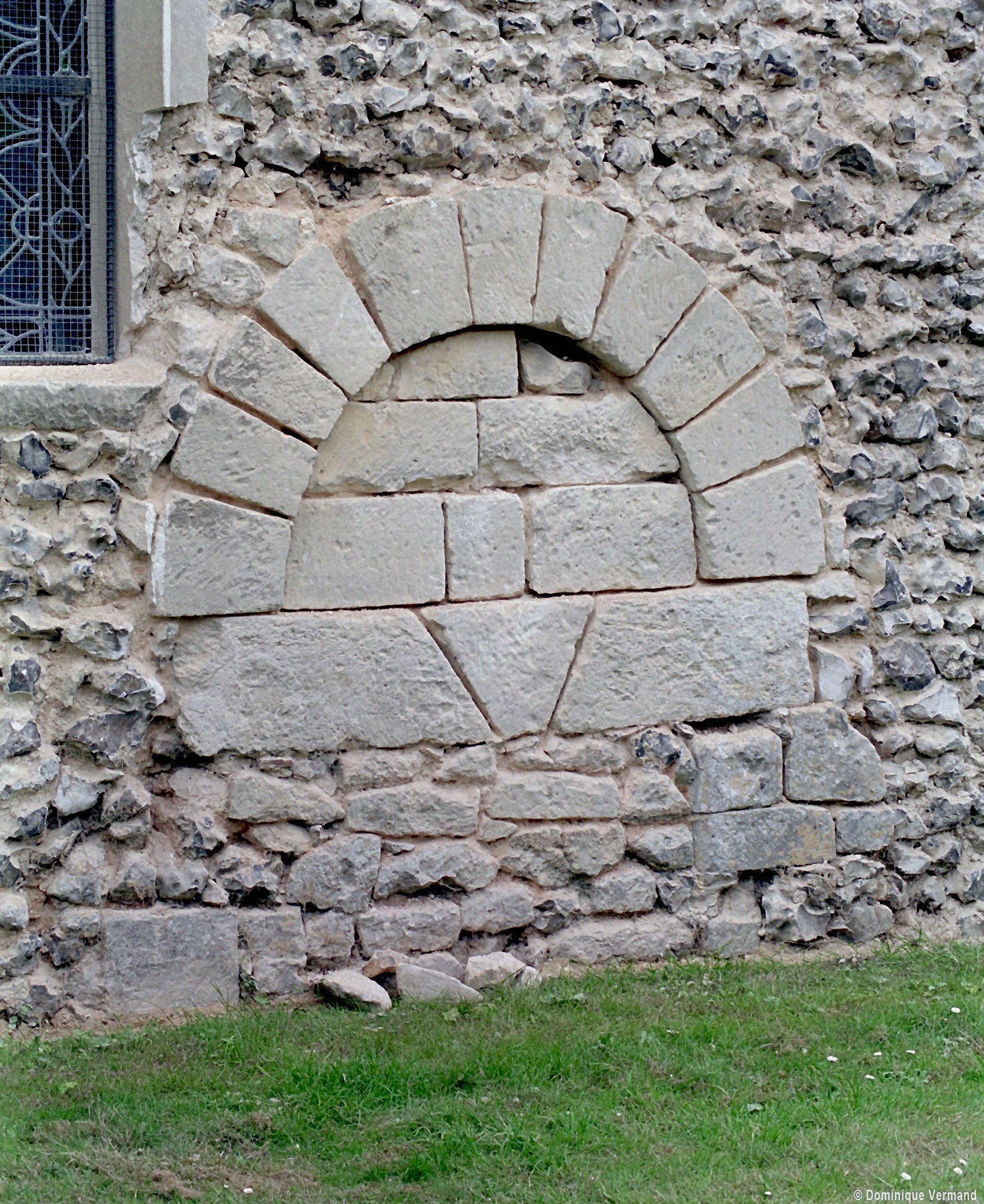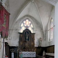 A une nef en silex d’origine ancienne – comme l’atteste une petite porte en plein cintre au nord – mais souvent réparée est venu s’ajouter, au début du 13ème siècle, un chœur de deux travées à chevet plat. Si les chapiteaux à crochets ou feuilles découpées ne laissent aucun doute sur la date de sa construction, une restauration effectuée à la fin du 19ème siècle l’a malheureusement privé de tout caractère d’authenticité comme on peut le voir notamment dans les fenêtres, refaites dans un style plus tardif.