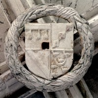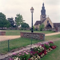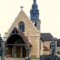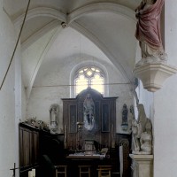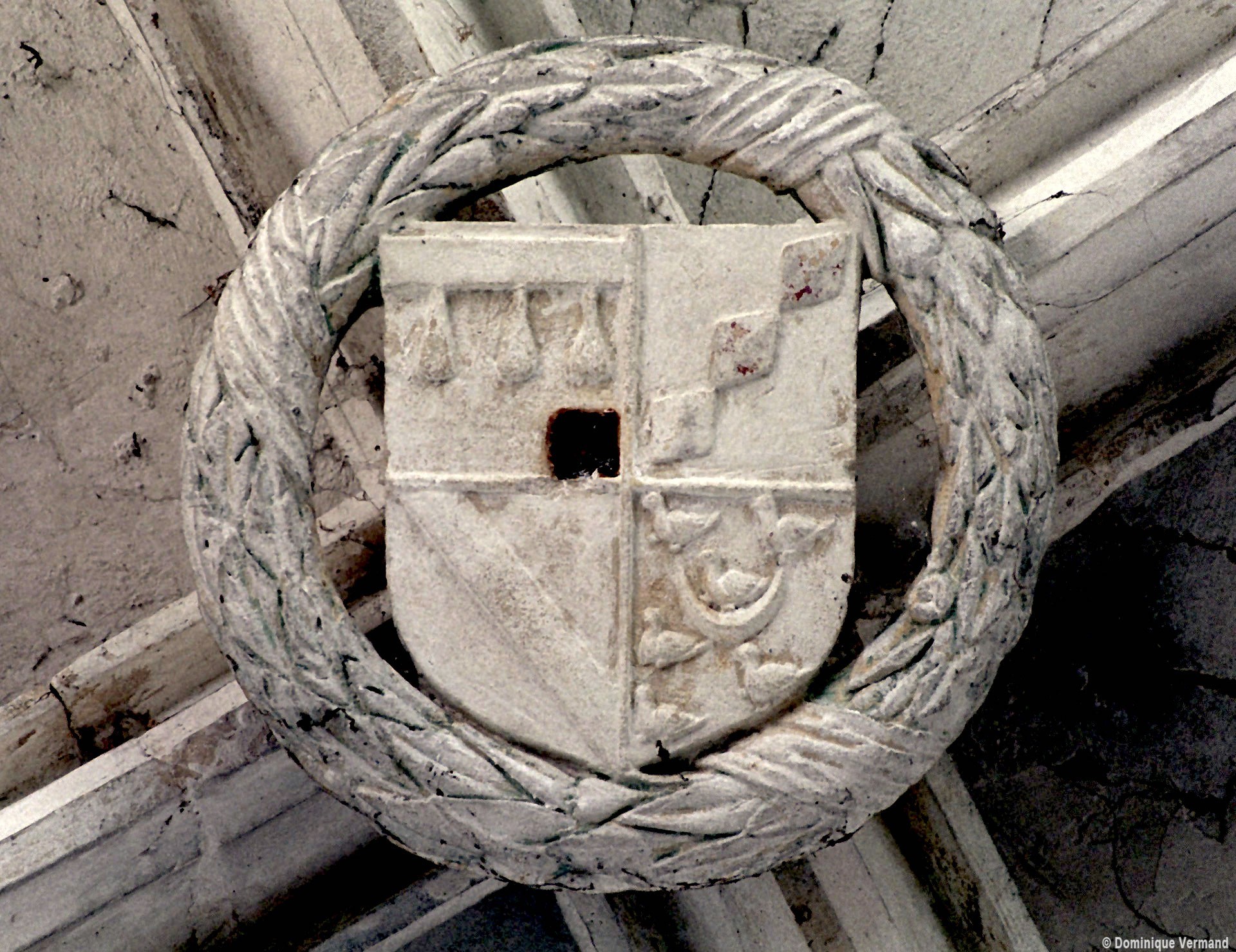 Vers 1300, une chapelle seigneuriale vient flanquer la base du clocher au sud. Il n’en subsiste qu’une fenêtre à réseau rayonnant, la voûte – qui comporte une clef armoriée – ayant été refaite au 16ème siècle, époque où l’église connaît d’importants travaux, sans doute suite aux destructions de la Guerre de Cent Ans. C’est en effet à cette période qu’il faut également assigner le clocher, la chapelle nord, la charpente en carène de la nef et la façade de celle-ci.