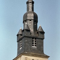 En total contraste avec l’étage du beffroi, très sobre, la flèche superpose trois étages, l’un carré, les deux autres octogonaux, dans une composition aussi originale que complexe. La transition entre les deux premiers étages s’effectue par quatre petits clochetons d’angle. Le second étage est coiffé d’un dôme, lui-même surmonté d’un octogone allongé que couronne, finalement, un second dôme en forme de cloche (2003).