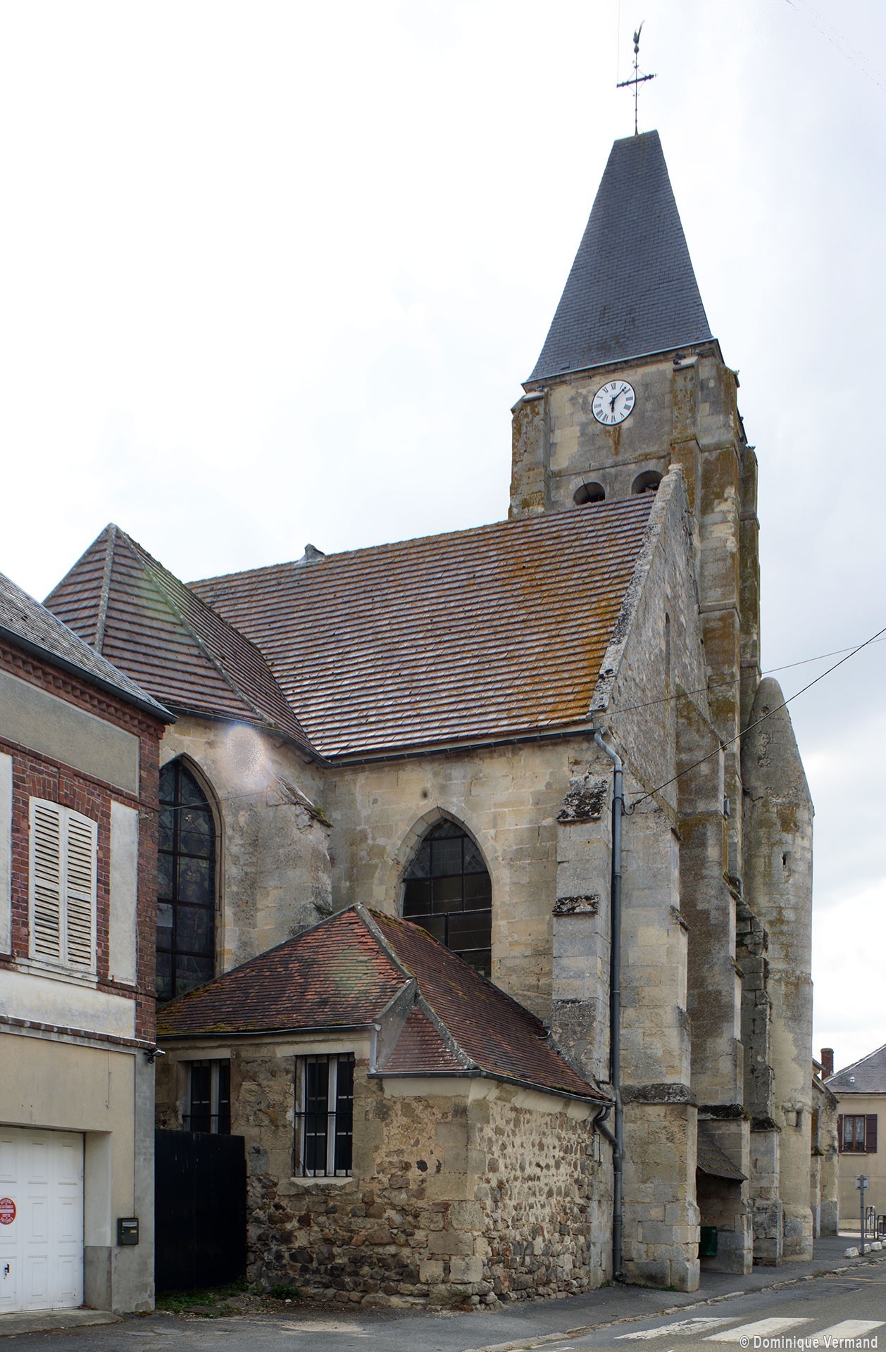 Plusieurs pierres tombales et plaques commémoratives se voient dans le croisillon sud, utilisé sans doute comme chapelle seigneuriale. On remarquera un très beau Christ aux liens, du 16ème siècle, et un lutrin de 1795. Il y a peu à dire de l’extérieur de l’édifice si ce n’est que la partie haute du clocher est aménagée en chambre de guet, comme d’autres tours du Valois et du Multien des 16ème et 17ème siècles.