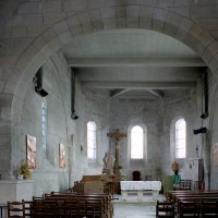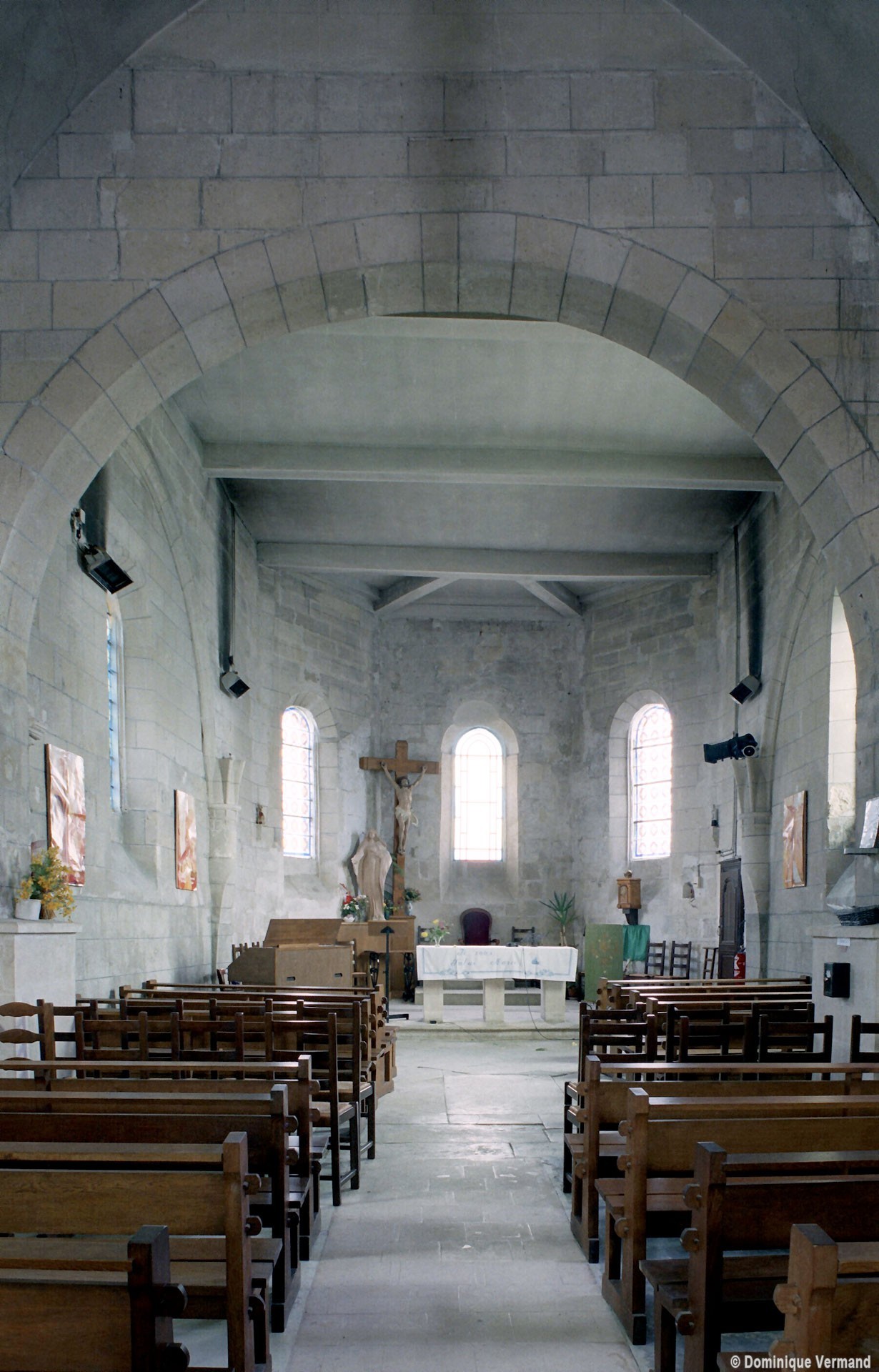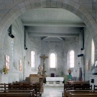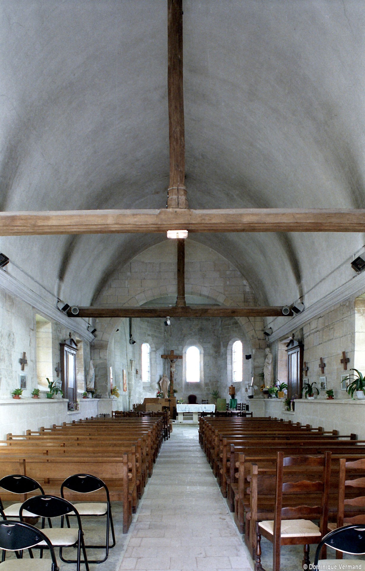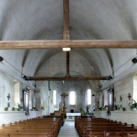 Etroite et longue, la nef remonte, pour l’essentiel, au 17ème siècle et constitue une extension de la chapelle primitive. C’est une construction très simple, ajourée de fenêtres rectangulaires. Elle est couverte d’une charpente en carène avec trois entraits et poinçons de section polygonale (2009, modifié 2017).