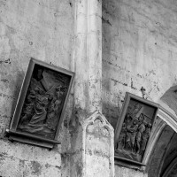 A partir du dernier quart du 13ème siècle se fit sentir le besoin de mettre au diapason du choeur récemment construit les autres parties de l’église. Si les deux croisillons furent partiellement refaits et dotés de fenêtres à réseau rayonnant, c’est cependant la nef qui bénéficia de l’intervention la plus spectaculaire avec l’adjonction de bas-côtés et un voûtement général.