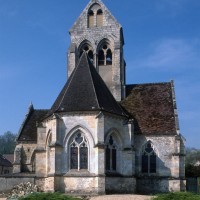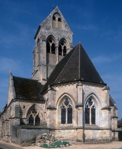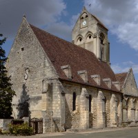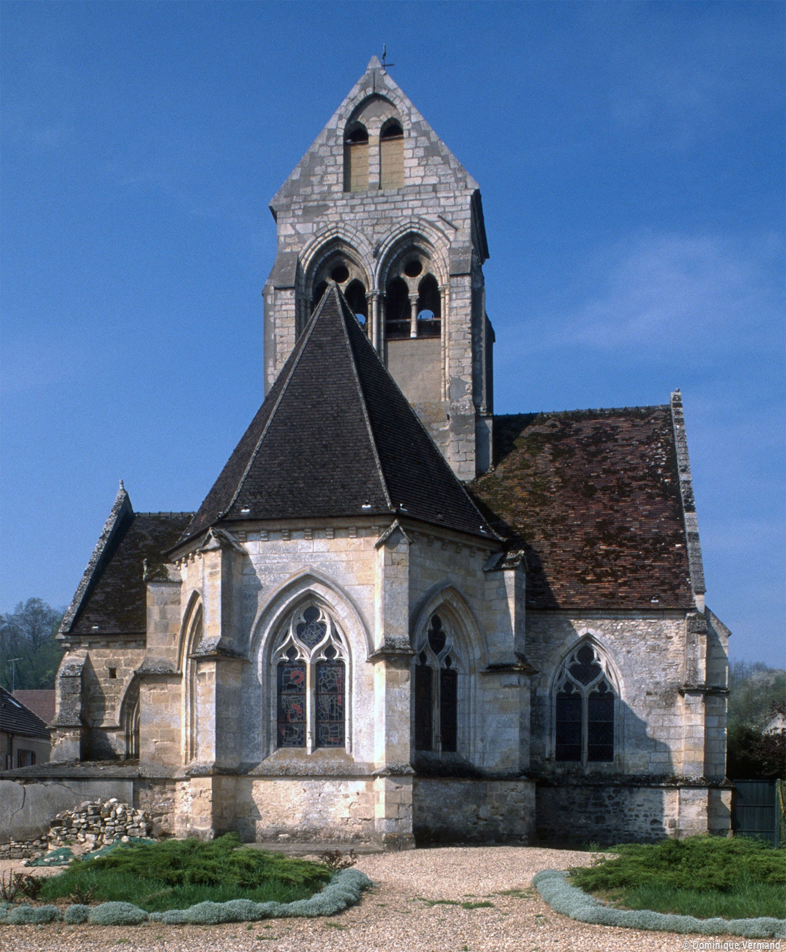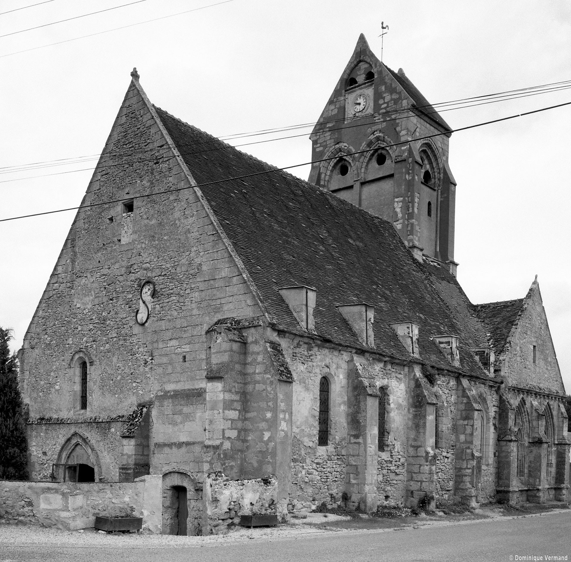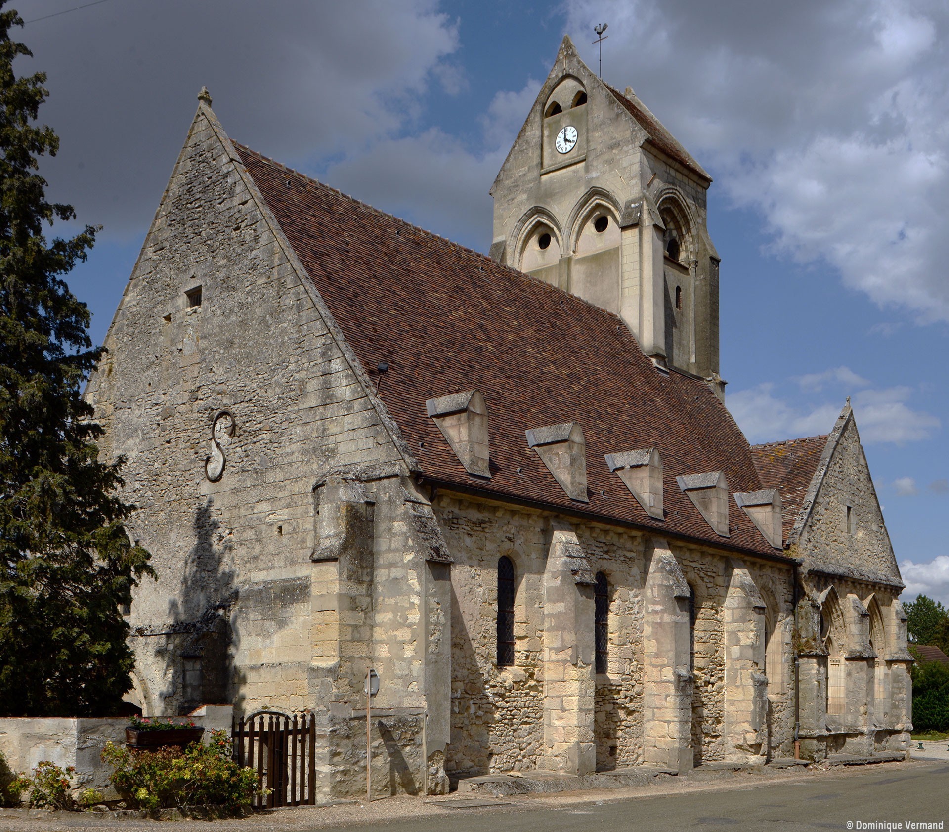 Située dans la vallée de l’Ourcq, Notre-Dame est un bel édifice composite dont l’analyse archéologique s’avère particulièrement ardue. Les parties les plus anciennes remontent au début du 13ème siècle et il semblerait que l’église était alors constituée d’une nef unique et d’un chœur avec clocher sur la travée droite. Seuls la façade, avec son petit portail en cintre brisé, et le clocher, dont la base a été totalement reprise par la suite, appartiennent à ce premier édifice. Le clocher est une tour très élégante, de plan rectangulaire. Ses longues baies – deux sur les grands côtés, une seule sur les petits – sont recoupées par une colonnette et ajourent presque totalement l’étage du beffroi. Une bâtière, dont une petite baie ajoure les murs pignons, le couronne.