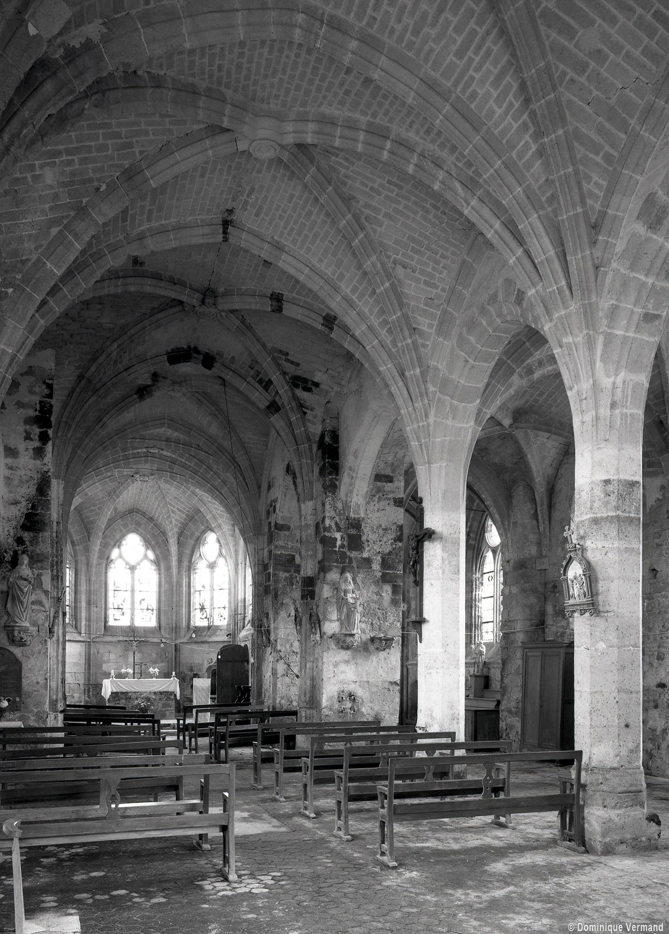 C’est au 15ème siècle qu’il reviendra de donner à l’église son visage définitif : chœur avec belle abside pentagonale ajourée de fenêtres flamboyantes, chapelle de trois travées au nord, réfection de la nef, dotée d’une élégante suite de quatre arcades à piles octogonales.
