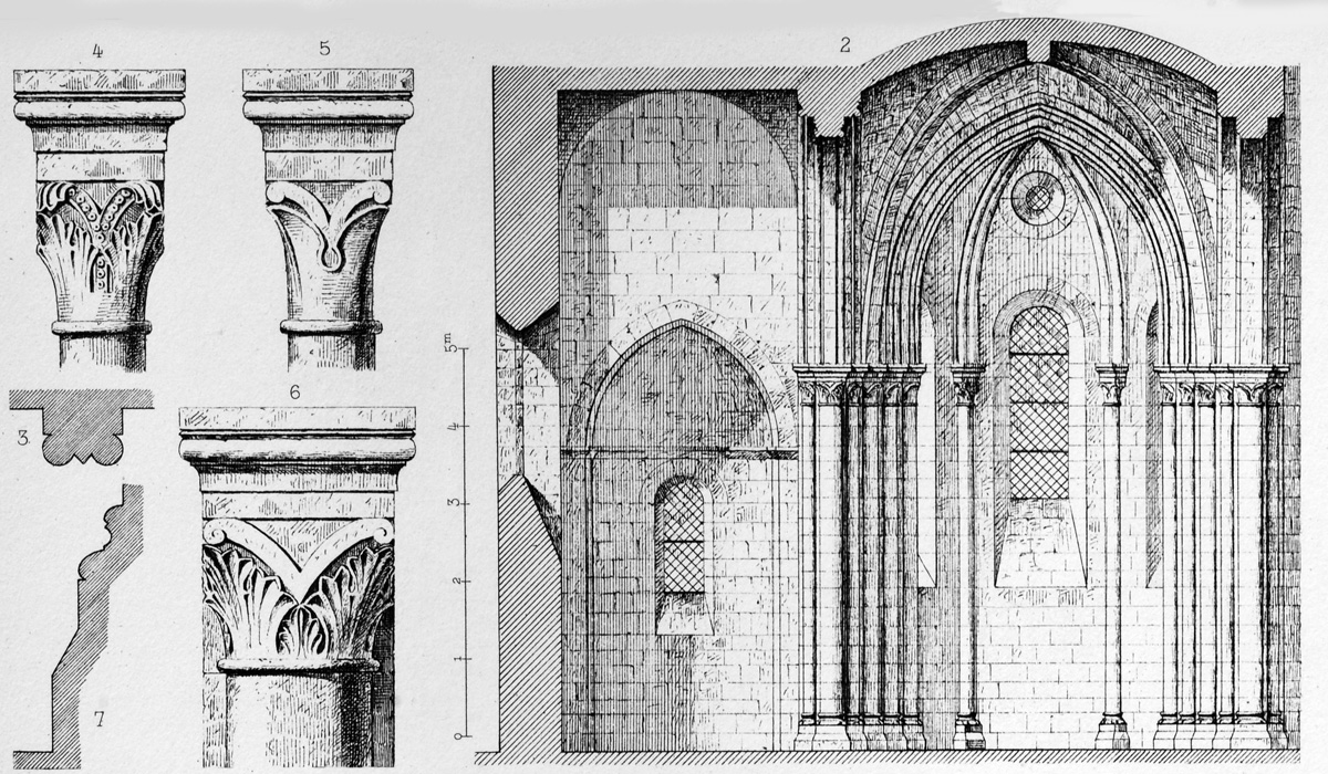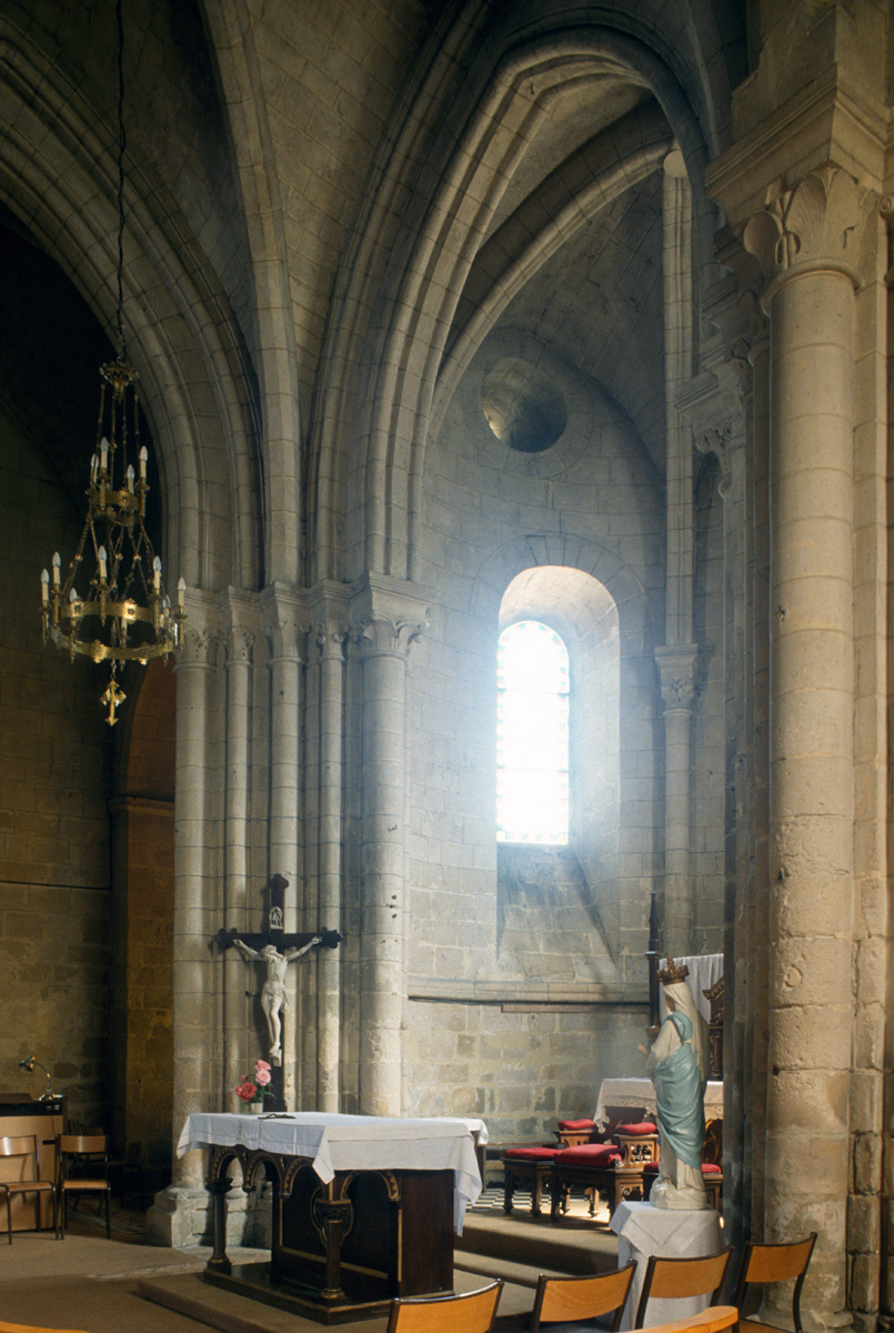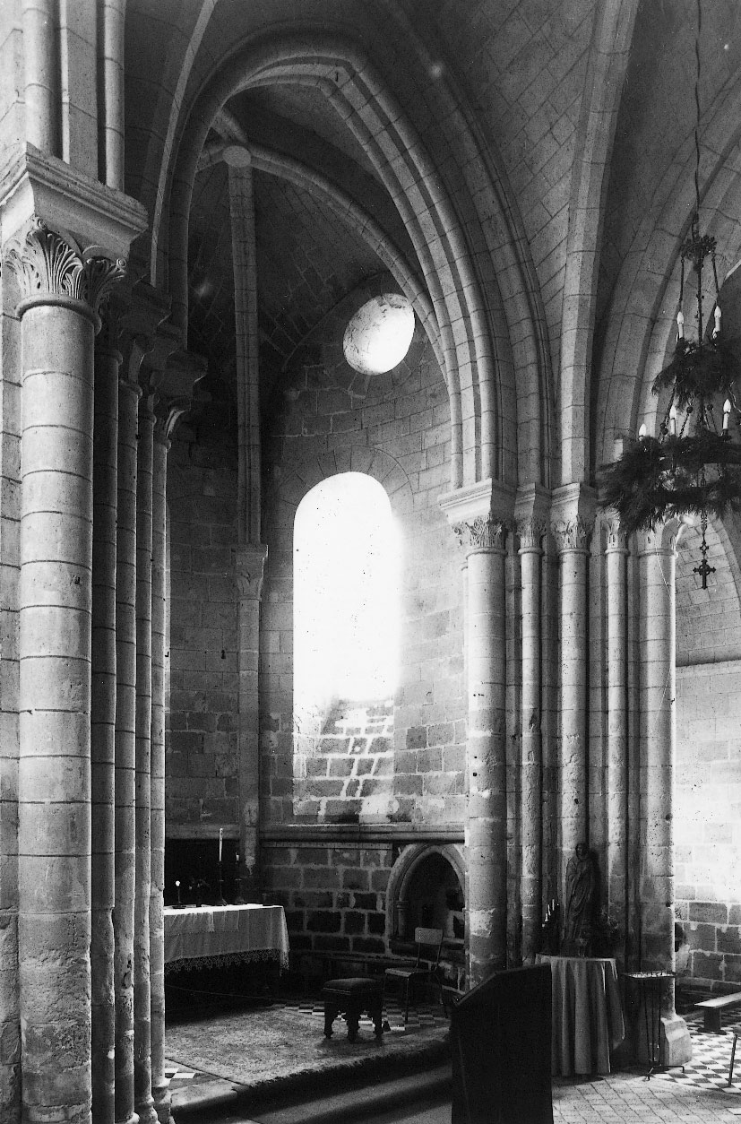 A la première architecture gothique, l’église est redevable de la voûte d’ogives qui couvrait la croisée du transept – refaite au 16ème siècle – et de celle qui couvre encore, malgré un plan en hémicycle, l’abside principale. Mais, c’est surtout dans la mise en oeuvre de ces éléments et le décor de feuilles plates ou d’acanthe des chapiteaux que cette partie de l’église – très proche de ce qui se fait au même moment à la cathédrale de Senlis – est déjà d’esprit gothique.