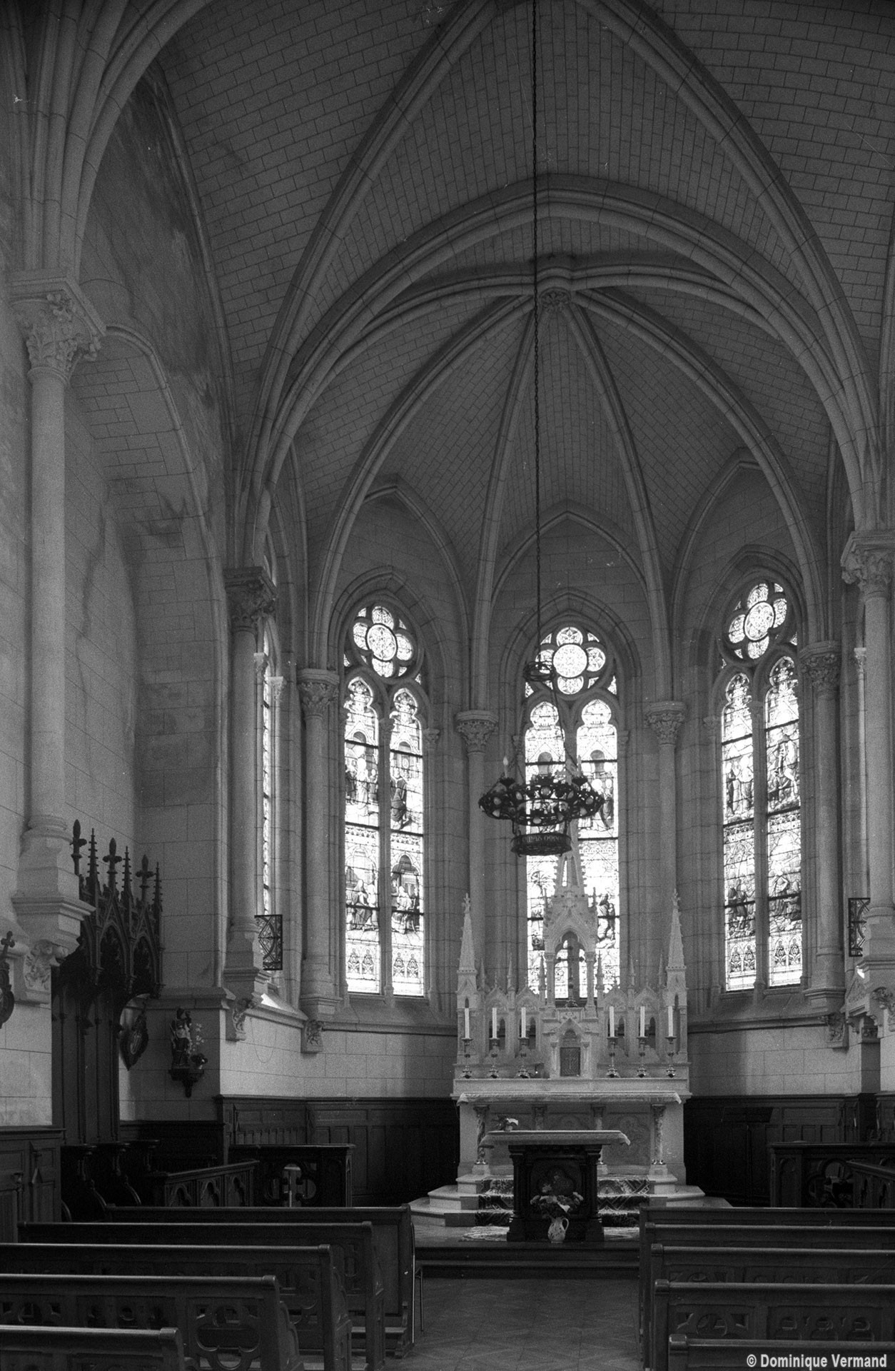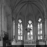 C’est une construction néo-gothique en briques et pierres, extrêmement soignée, comprenant une nef de trois travées, une abside pentagonale et deux annexes de part et d’autre de la dernière travée. On admirera tout particulièrement les fines colonnettes en délit qui reçoivent les voûtes et la façade richement décorée surmontée d’un clocheton élancé. Un centre de prières perpétue la vocation du lieu au recueillement.