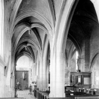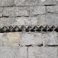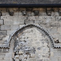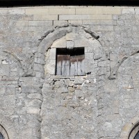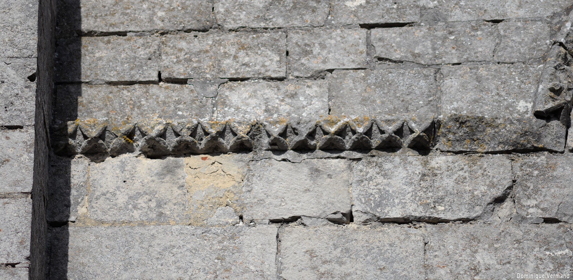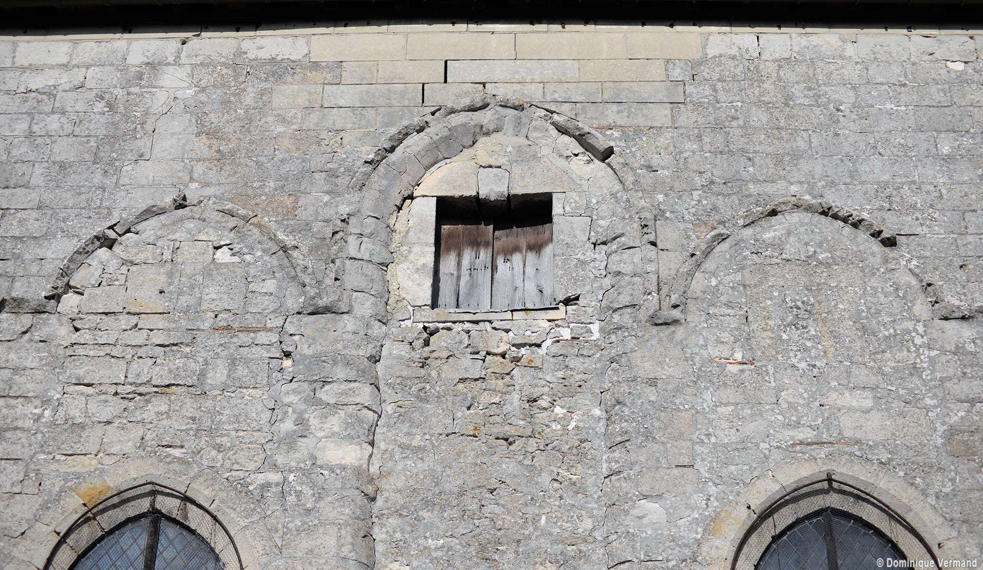 La chute du clocher en 1333, l’incendie du château et de la chapelle en 1359 puis la défense désespérée de Jean de Dours contre les Anglais du comte de Huntington en 1439 avaient, en effet, infligé de cruels dommages à l’édifice et nécessité une reconstruction partielle dès la seconde moitié du 15ème siècle. C’est à celle-ci que l’on doit, outre le revoûtement des parties les plus anciennes, l’édification de la nef et celle du clocher, ouvrage sévère et tronqué, aménagé en tour de guet en partie haute. Le portail qui s’ouvre à l’ouest montre une belle composition de style gothique flamboyant (1994, modifié 2018).