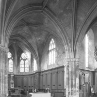 La partie orientale du palais dut disparaître, au plus tard, dans la seconde moitié du 13ème siècle, lorsque fut construit le chœur actuel, formé d’une travée droite et d’une abside à cinq pans. Les fenêtres conservées ont un réseau à profil prismatique composé de deux lancettes surmontées d’une rose. Au début du 14ème siècle était fondée la chapelle de la Vierge pour le repos de Jeanne de France, épouse de Philippe le Bel. C’est l’actuel bras nord du transept, très remanié au 16ème siècle.