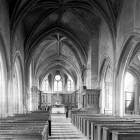 Eclairée à l’origine par de très hautes fenêtres disposées par deux à l’est et à l’ouest et en triplet vers le sud, il est tentant d’établir un lien entre cette construction et le palais sur lequel elle aurait ainsi été greffée. Largement développé vers l’ouest, ce palais se serait alors terminé, à l’opposé, à l’emplacement du chœur actuel. Une voûte sexpartite couvrait dès l’origine cette chapelle, un principe qui a été repris lorsque celle-ci fut voûtée à nouveau, mais beaucoup plus bas, au 16ème siècle.
