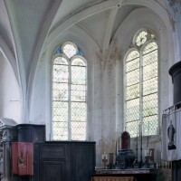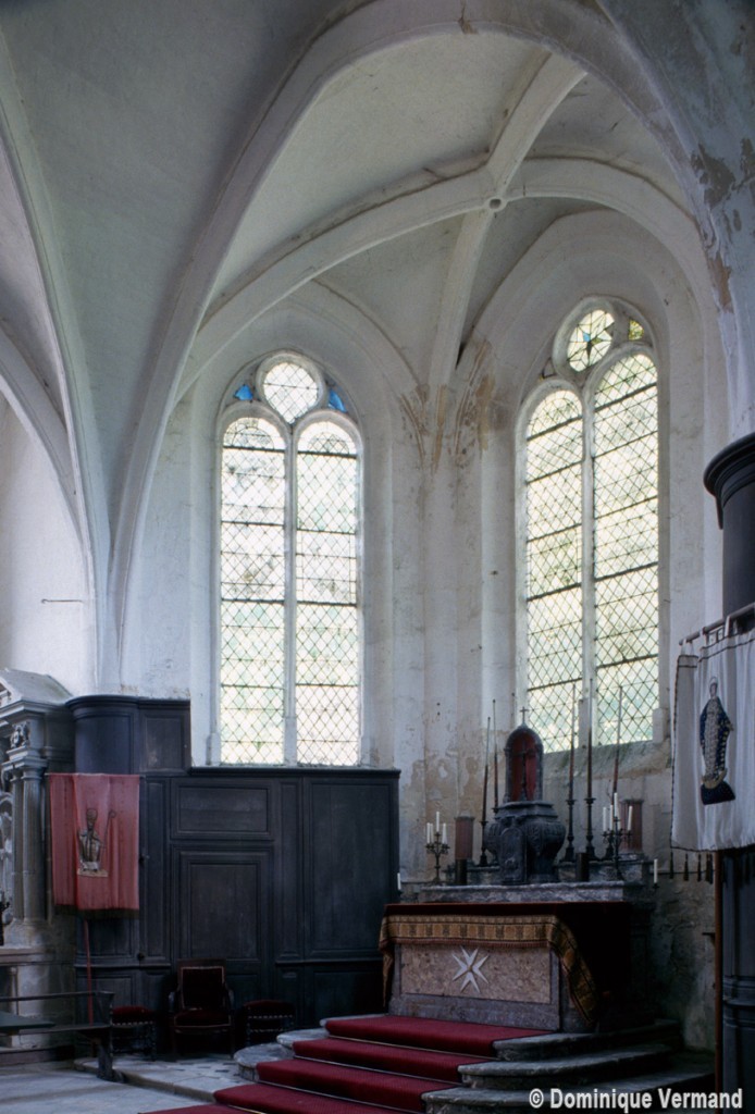 Comme il est d’usage à cette époque, les ogives et les doubleaux à profil prismatique viennent se fondre directement dans les supports. Sous le clocher, la voûte comporte d’origine une grande ouverture circulaire, disposition fréquente à partir du 15ème siècle et destinée à monter la cloche dans le beffroi.