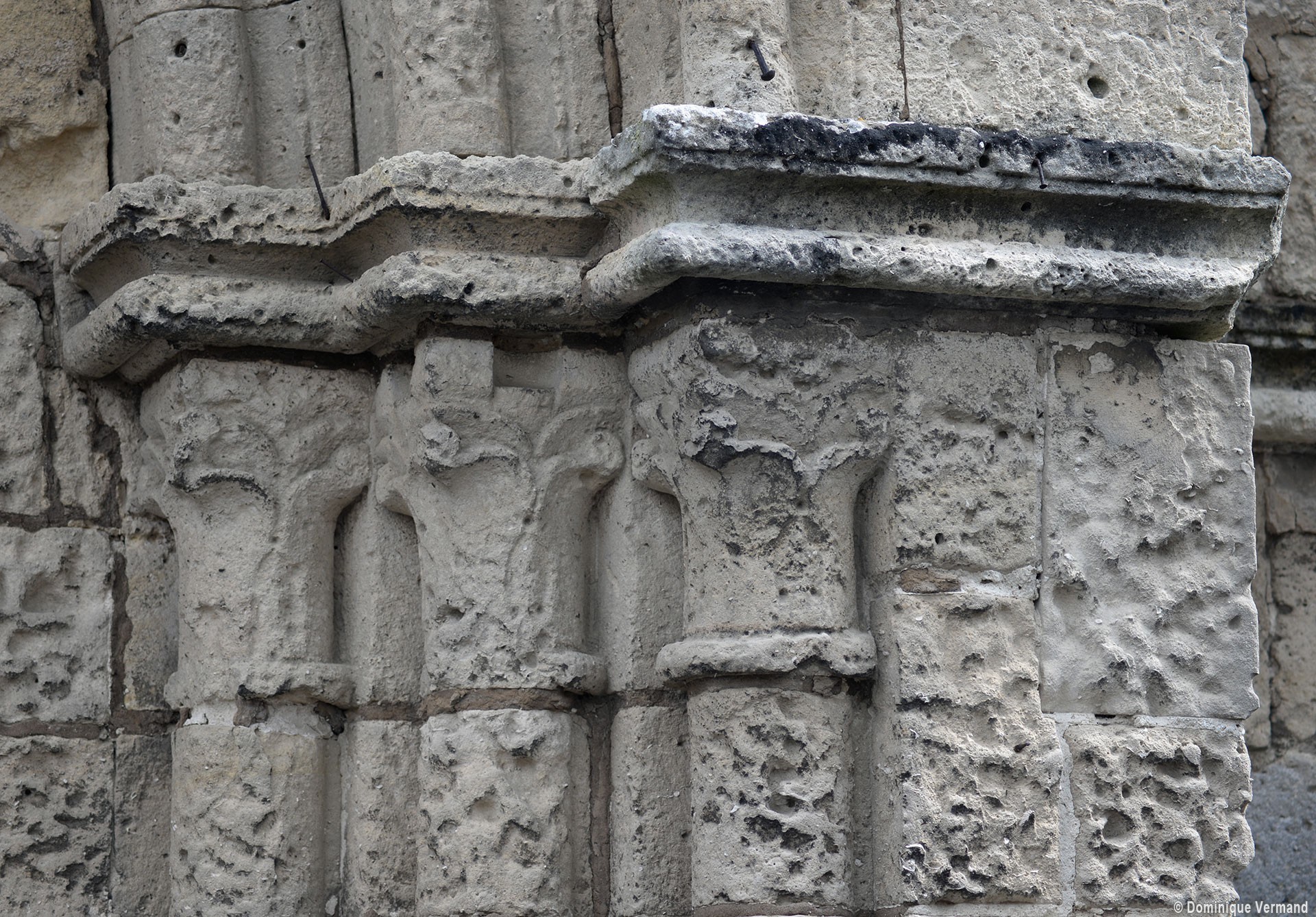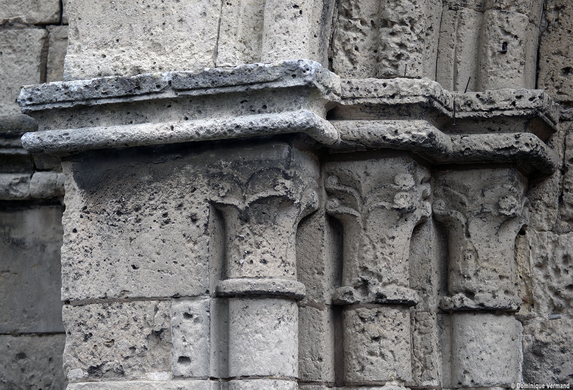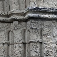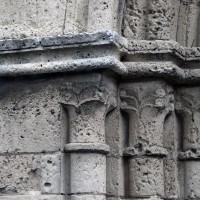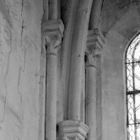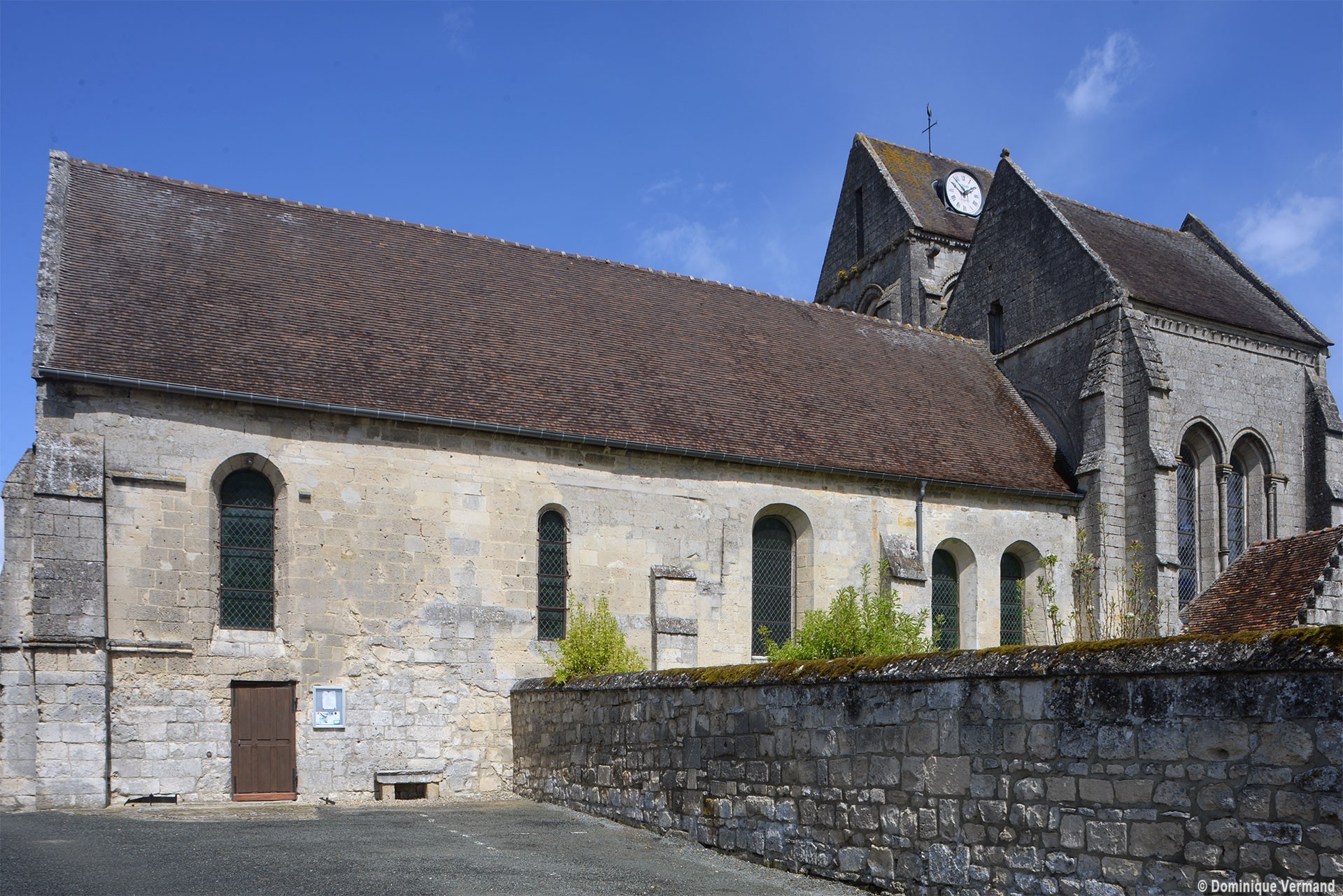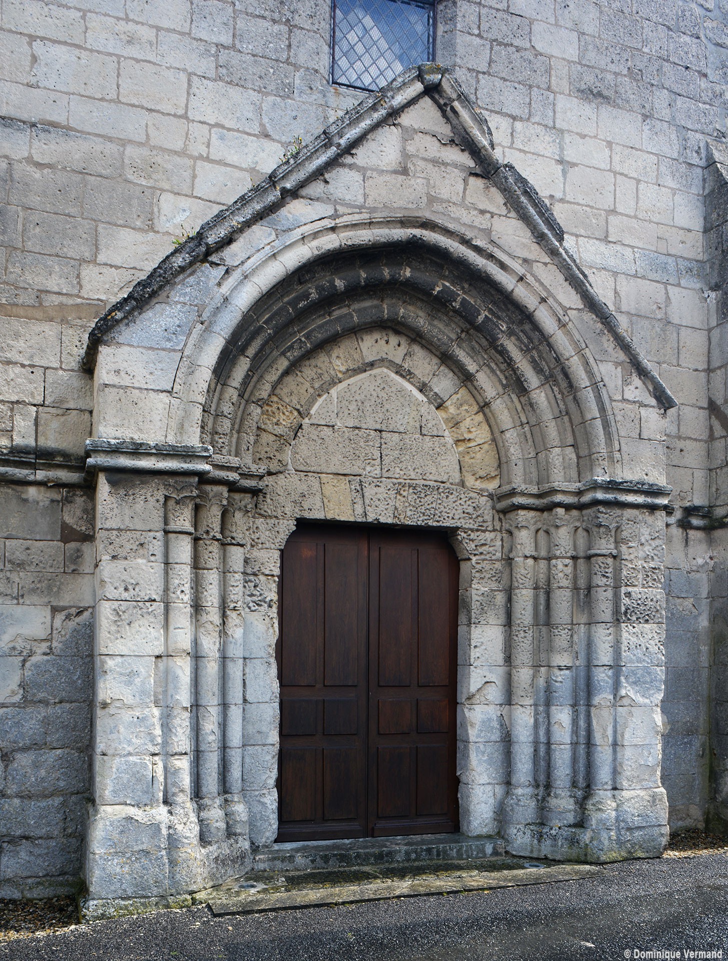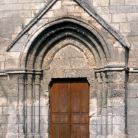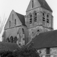 La partie la plus ancienne est la longue nef, bâtie vers 1150 et dont ne s’est guère conservée intacte que la façade. Au centre de celle-ci s’ouvre un beau portail à gâble orné de trois rangées de colonnettes. Le mur sud, trop remanié, n’a plus de caractère et le mur nord a été repris en sous-oeuvre au 16ème siècle lorsque l’église fut dotée d’un bas-côté.