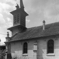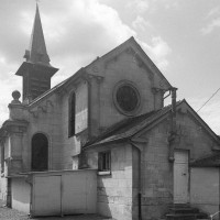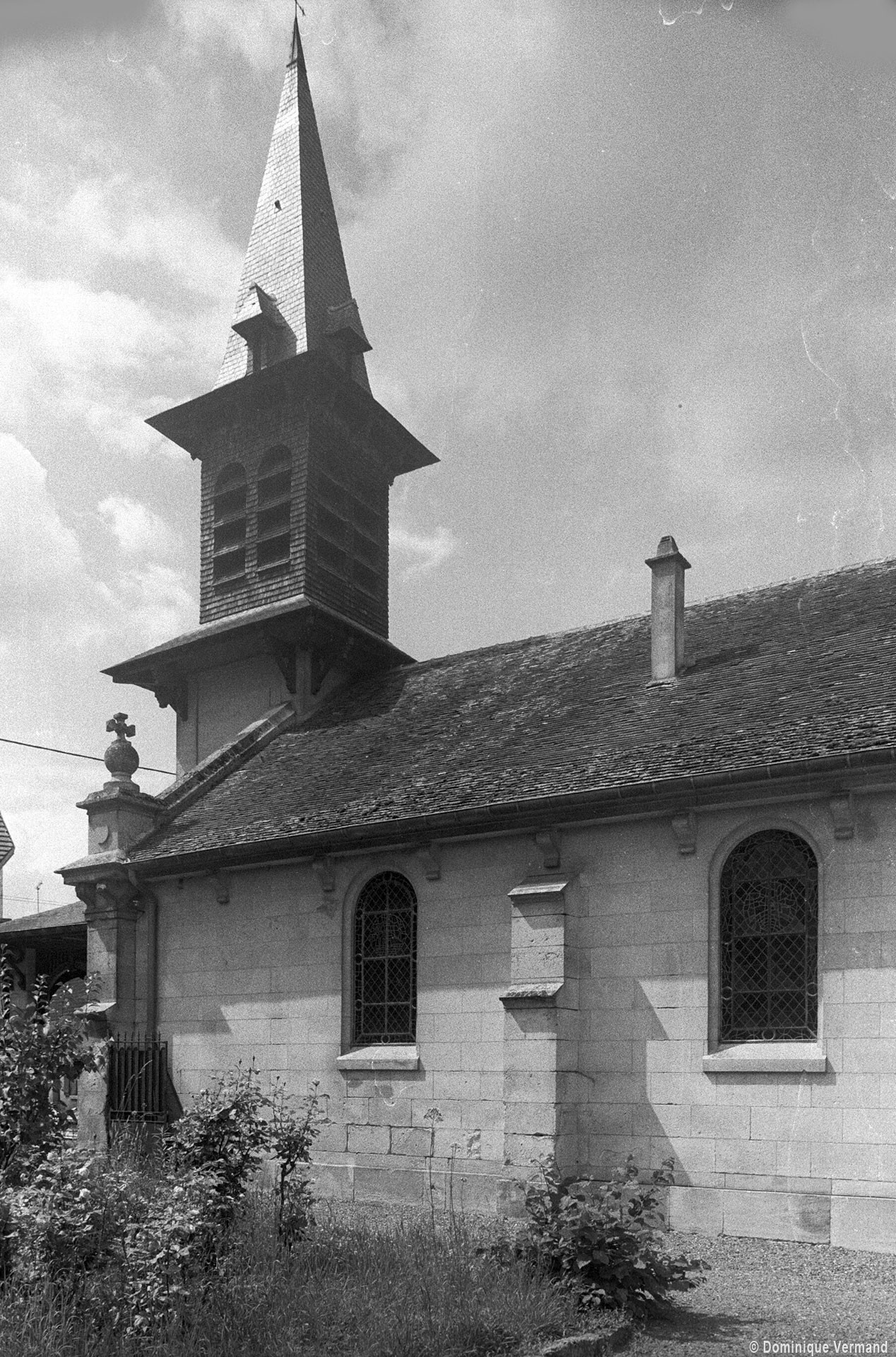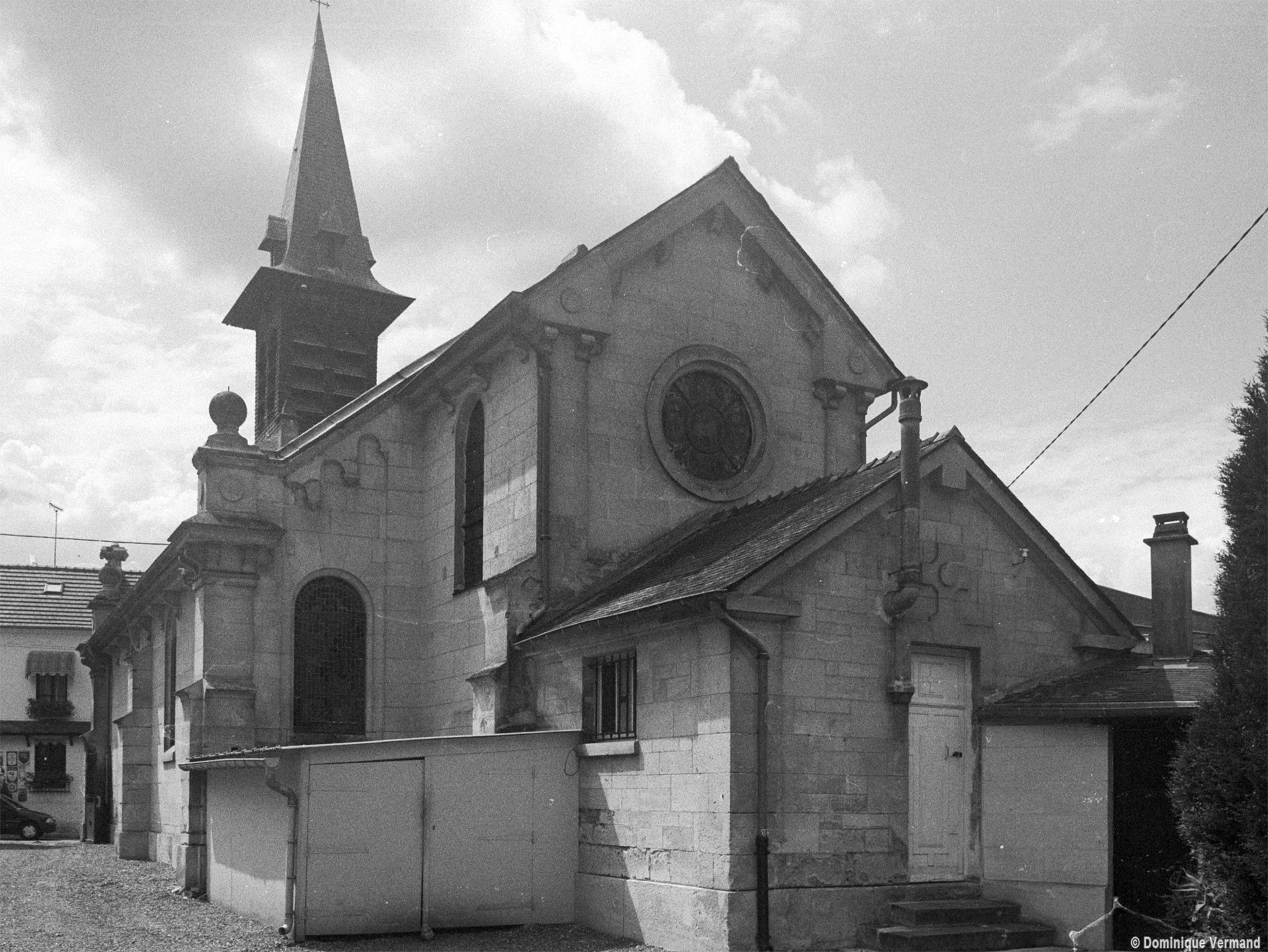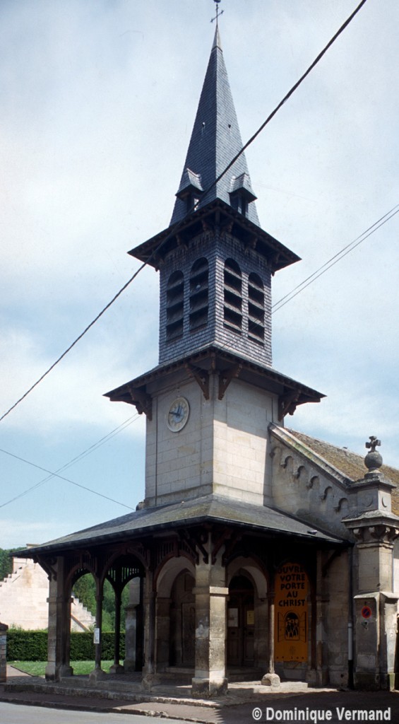 Succédant à un petit édifice sans grand intérêt, l’église actuelle fut reconstruite en 1860 d’après les plans de Grisart, architecte du Palais de Compiègne, à l’instigation de l’Empereur Napoléon III et de l’Impératrice Eugénie, familiers de la région avec leurs nombreux séjours à Compiègne et à Pierrefonds. De style néo-roman, l’église vaut surtout pour son curieux clocher formant porche, dont les toits fortement débordants qui couronnent chacun de ses deux étages lui donnent l’allure d’une pagode. Le second étage est recouvert d’essences de châtaigner éclaté.