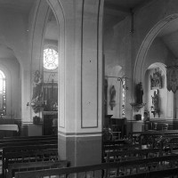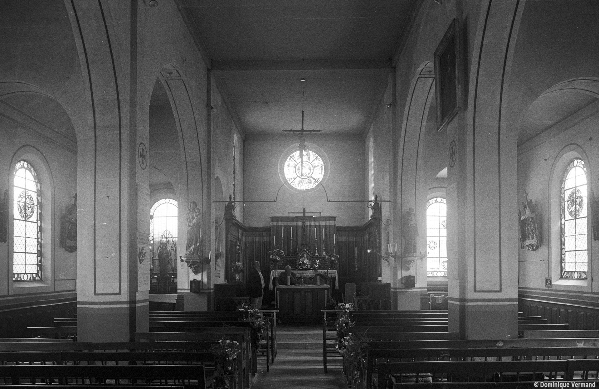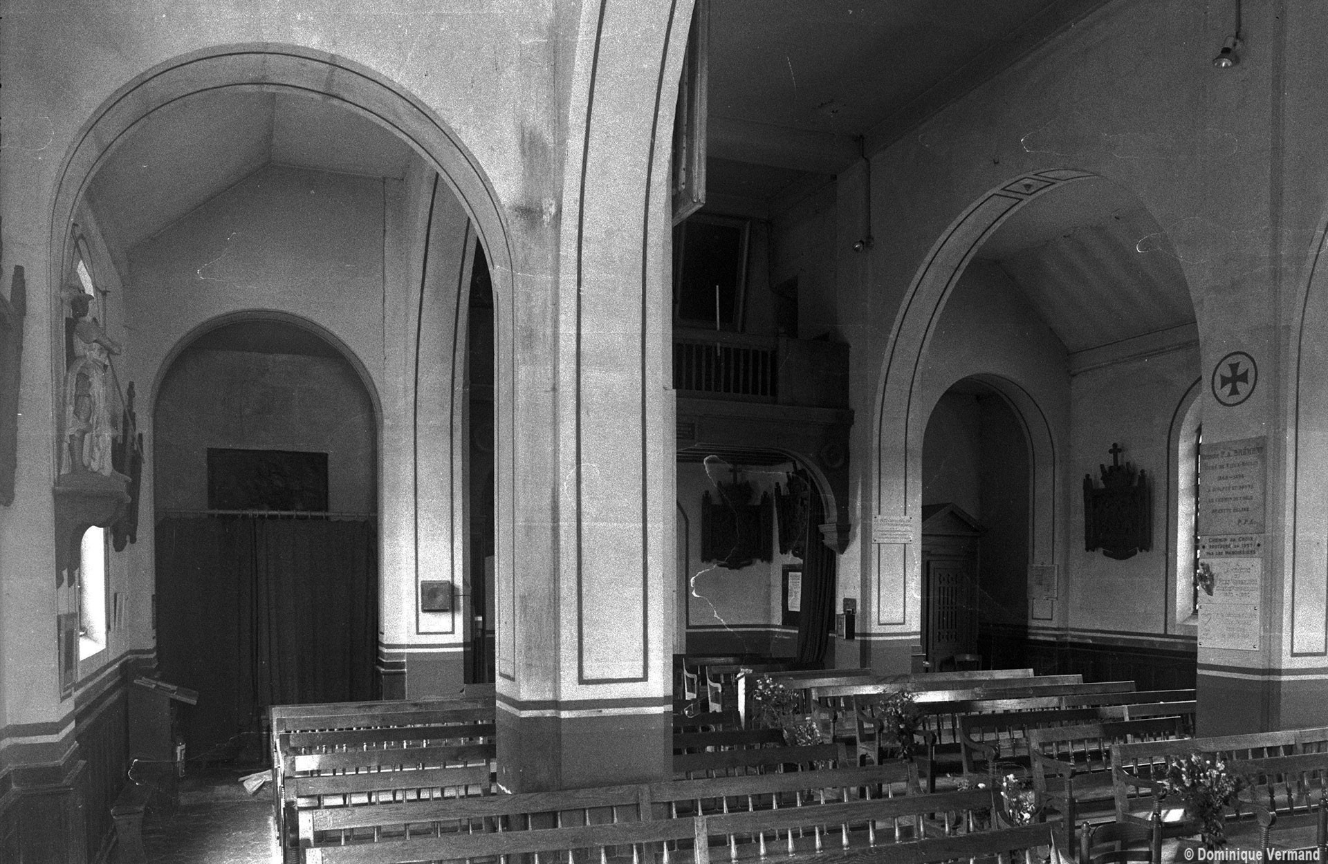 Pour le reste, c’est un édifice de plan quadrangulaire constitué d’une nef aveugle de deux travées avec bas-côtés terminés par une chapelle et d’un choeur à chevet plat. L’intéressant chemin de croix en bois sculpté est dû à P.A. Brément, curé de Vieux-Moulin de 1860 à 1896 (2001).