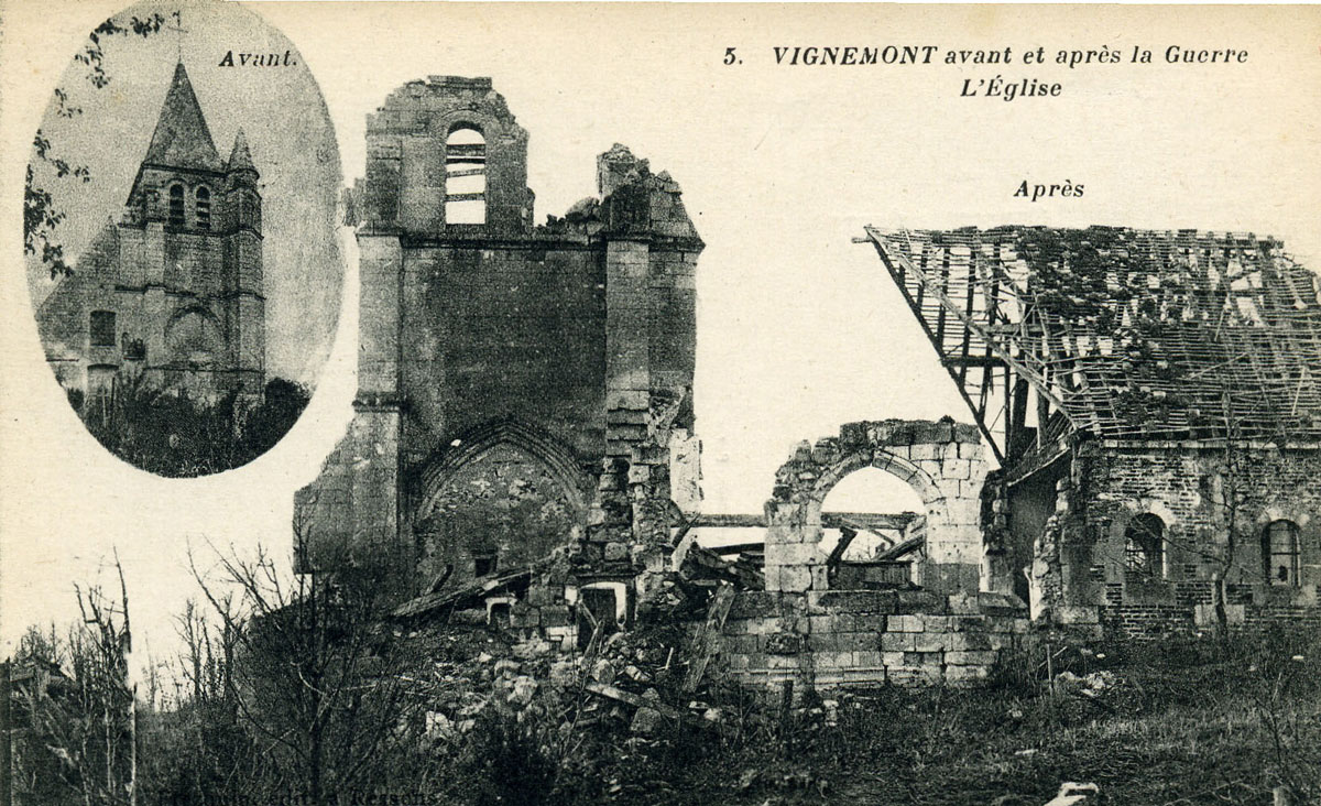 Presque totalement détruite les 6 et 7 juin 1918, l’église Saint-Nicolas et Notre-Dame a été rebâtie en 1923-24 et bénie le 21 juillet 1925. Sa dédicace à saint Nicolas perpétue le souvenir d’un petit prieuré qui dépendait de celui d’Elincourt-Sainte-Marguerite et avait déjà disparu à la Révolution.