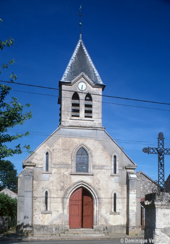 La première église, détruite par les Anglais en 1444, était dédiée à Saint-Genest. L’édifice actuel est une construction modeste et sans style particulier. La large et basse nef unique ainsi que l’abside en hémicycle qui la prolonge peuvent remonter au 16ème siècle. En façade se dresse un petit clocher avec tribune, formant porche, et voûté au rez-de-chaussée de trois berceaux en plein cintre. Sa construction a été achevée en 1891 et s’inspire sans doute de la façade de Lagny-le-Sec, dont les dispositions ont également été reprises, à la même époque, au Plessis-Belleville, à Chèvreville et à Gondreville.