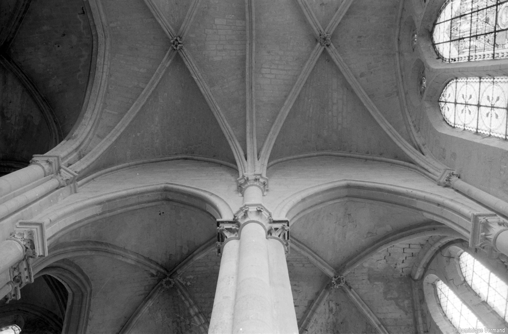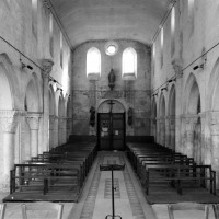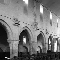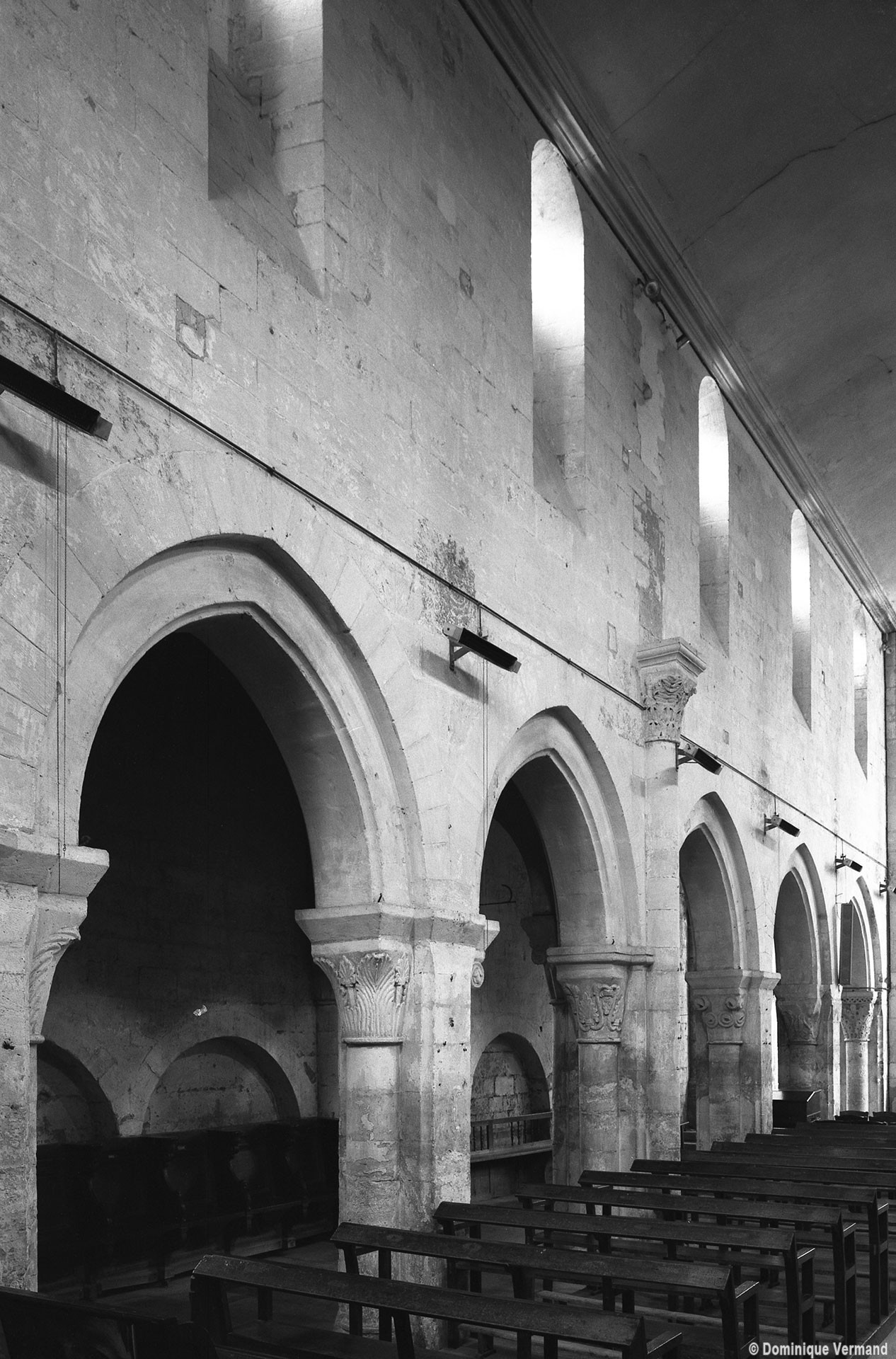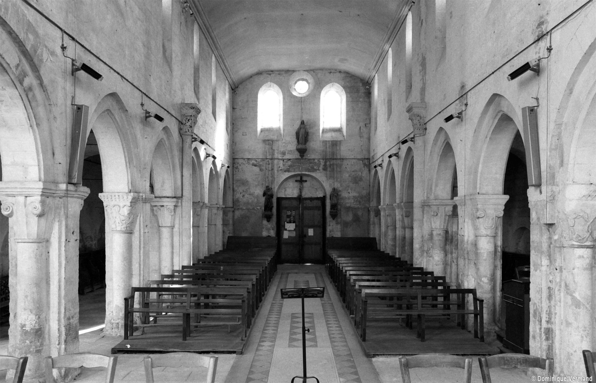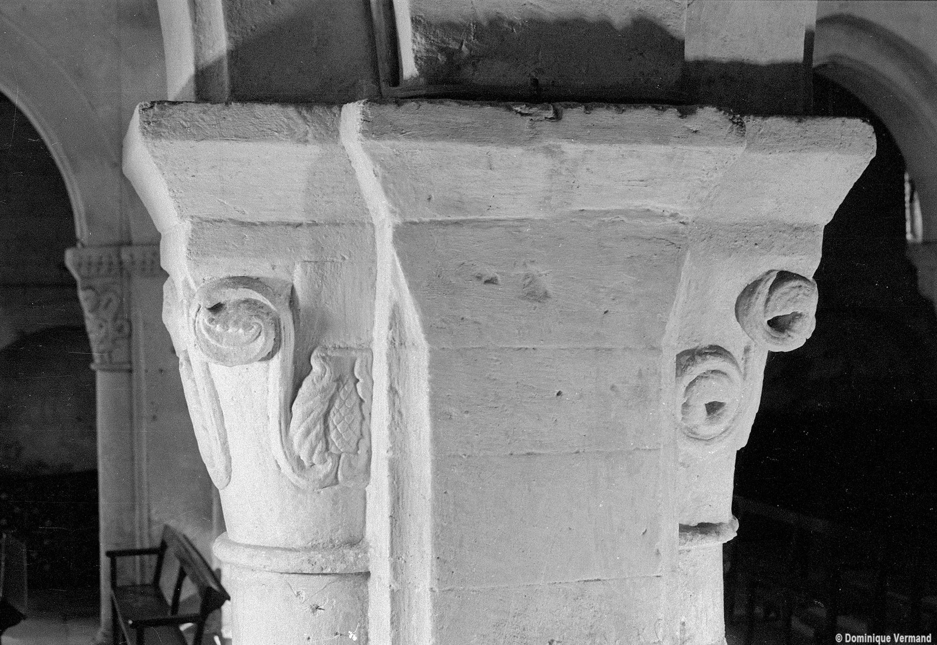 Bâtie vers 1125-30, la nef, avec ses six travées flanquées de bas-côtés, continue la longue tradition des églises basilicales non voûtées cependant que ses arcades brisées à double ressauts et le décor de ses chapiteaux – entrelacs de tiges, volutes, feuilles et fruits d’armoires – annoncent la génération des premières églises voûtées sur croisées d’ogives qui, avec Bury, Cambronne-les-Clermont, Saint-Vaast-les-Mello…, marque le renouveau architectural du milieu du 12ème siècle. Un arc diaphragme reliait autrefois les murs gouttereaux de la nef entre les troisième et quatrième travées, comme en témoignent les deux colonnes engagées, surmontées de chapiteaux, présentes à cet endroit et deux arcs semblables dans les bas-côtés.