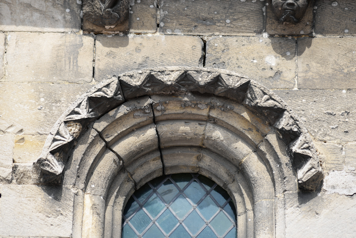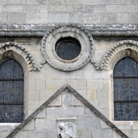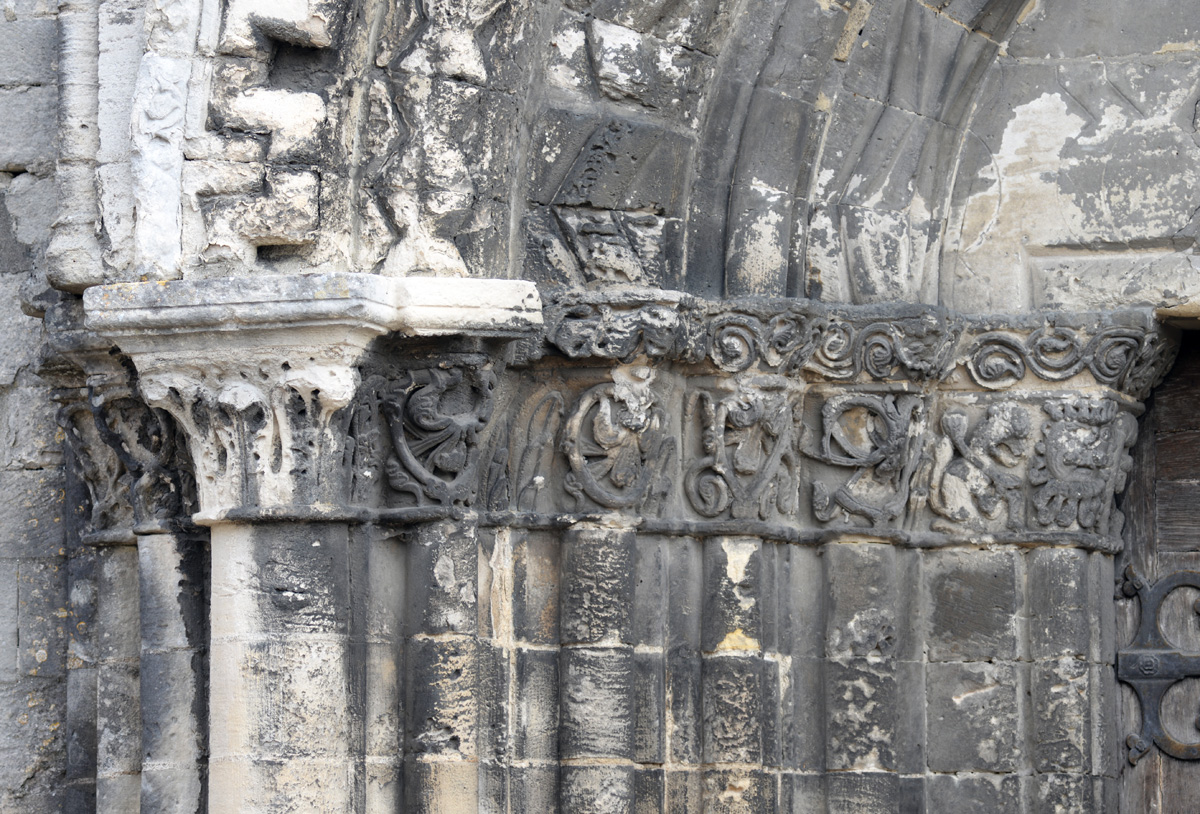 La présence concomitante de bâtons brisés et d’une frette crénelée au portail, d’arcs-diaphragme, d’un chapiteau à godrons, voir d’une corniche beauvaisine relève incontestablement d’une influence normande.