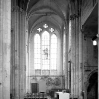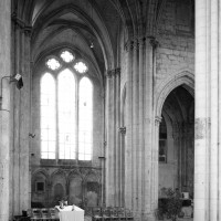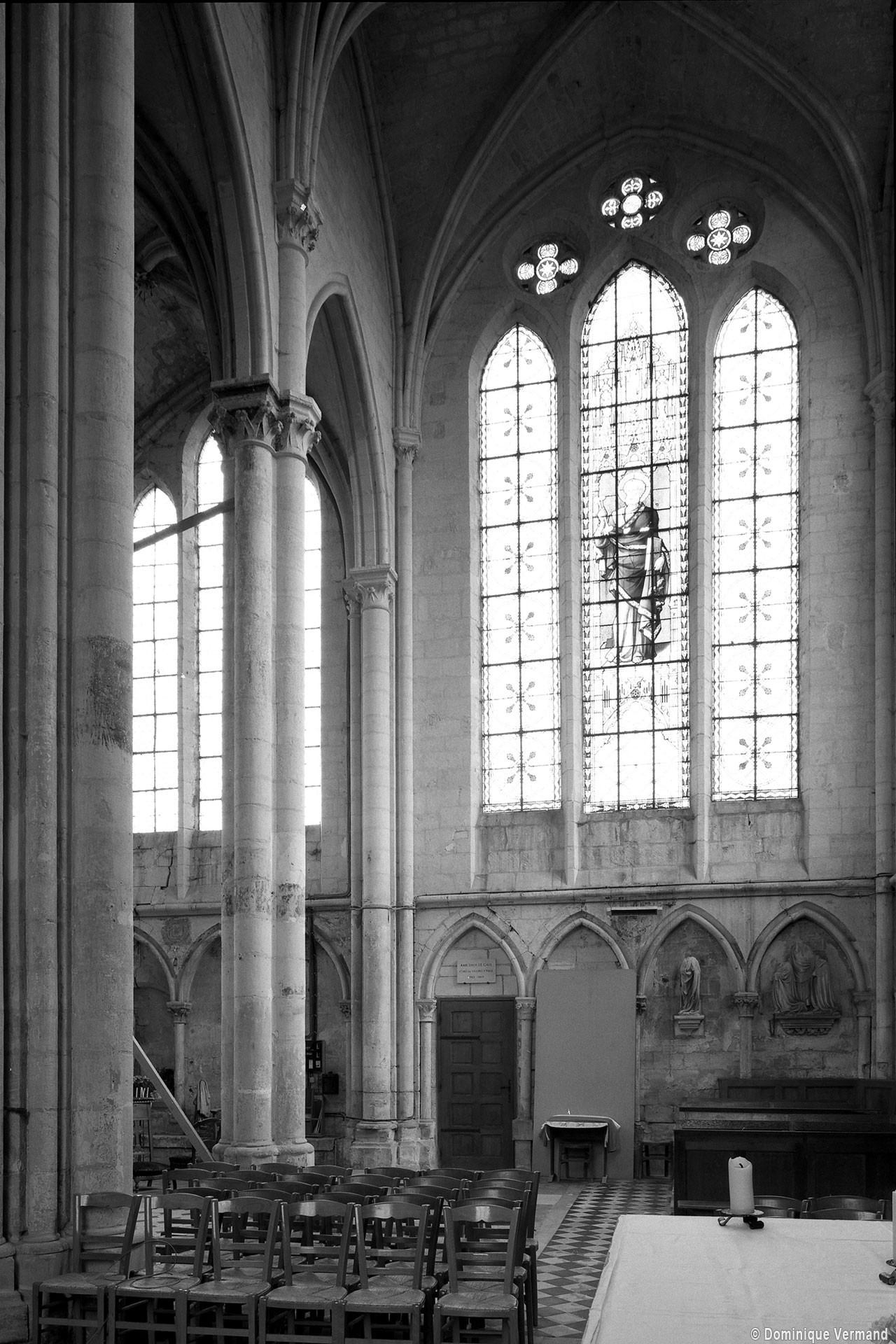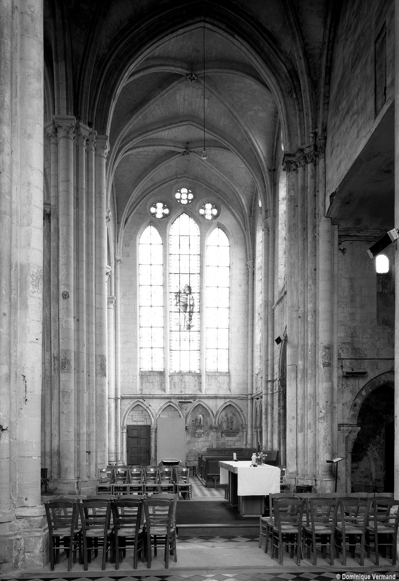 Beaucoup plus élevé que la nef, l’ensemble formé par le transept et le chœur accompagné de ses chapelles se présente comme une double nef transversale s’inscrivant dans un volume rectangulaire très saillant, précurseur pour la région du type du choeur-halle qui connaîtra un certain succès par la suite et dont, tout à côté, Nogent-sur-Oise offre un magnifique exemple. On remarquera tout particulièrement l’élégante pile quadrilobée recevant les voûtes des chapelles du bras sud du transept ainsi que les sobres fenêtres, composées de deux ou trois lancettes surmontées de roses à quatre ou six lobes. Tout ici évoque l’équilibre et la mesure de l’architecture gothique arrivée à maturité. Suivant une disposition très fréquente en Soissonnais et qui se retrouve à Nogent-sur-Oise, le chœur se termine par une niche large et peu profonde qu’encadre un arc brisé, qui abritait primitivement l’autel principal.