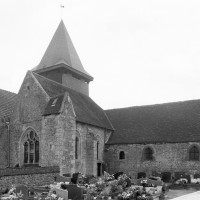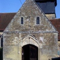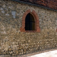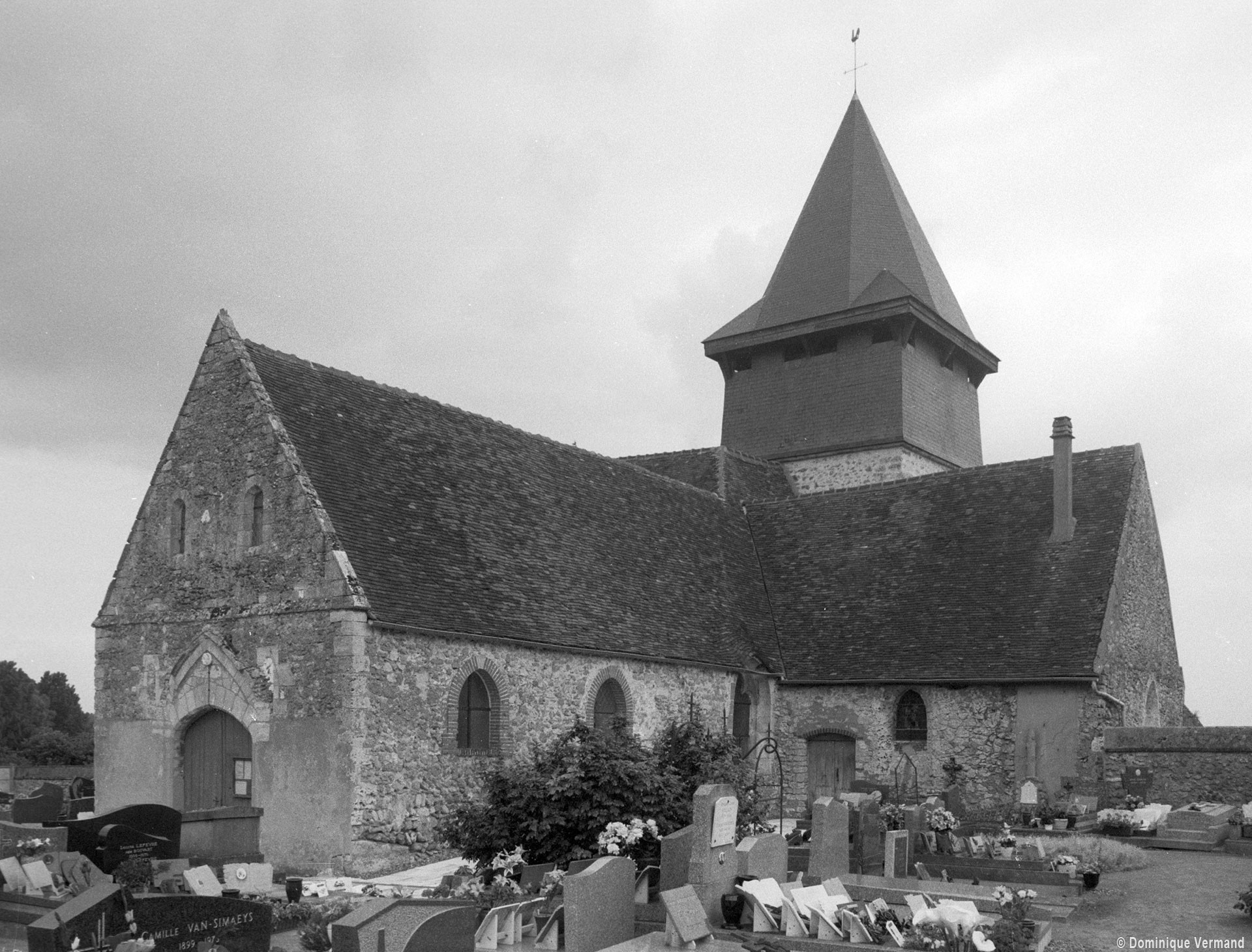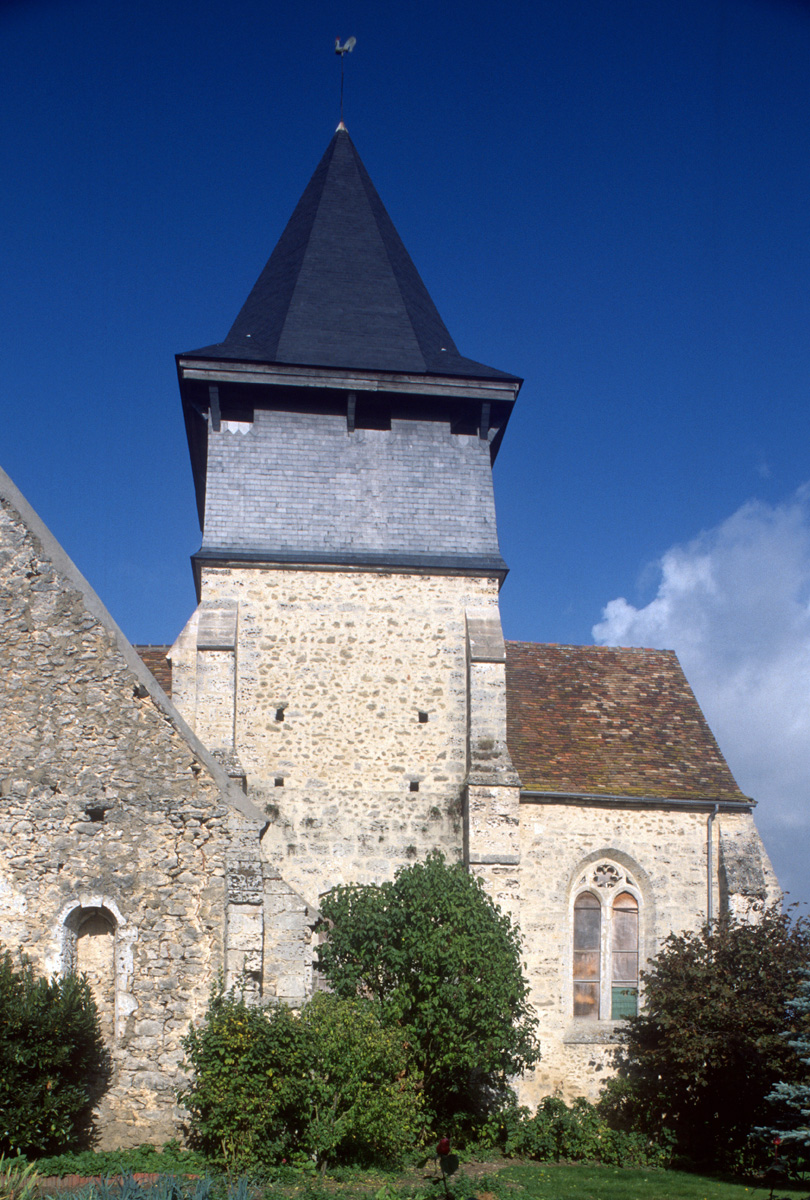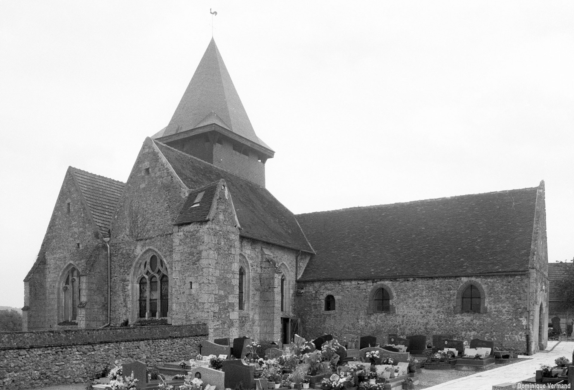 Saint-Martin s’élève sur un replat du versant méridional de la vallée du Thérain. C’est un édifice très hétérogène, construit dans un calcaire très coquillier, dont la partie la plus ancienne est la nef unique, du 11ème siècle. Bien que remaniée par la suite (pignon, ouvertures), elle est intéressante pour son bel appareil en “opus spicatum” et les trois petites fenêtres d’origine – aujourd’hui bouchées – qu’elle conserve. Leur étroitesse a dispensé d’appareiller un cintre qu’on s’est contenté de simuler dans une pierre, avec des claveaux figurés par des traits gravés. C’est une manière de faire que l’on retrouve dans nombre de petites églises rurales à cette époque. Toujours pour des raisons de d’économie, il n’y a pas de contreforts, les angles de la construction étant simplement renforcés par des pierres appareillées en carreaux et boutisses.