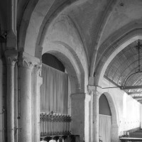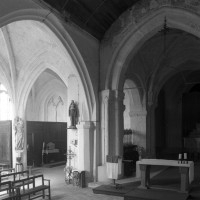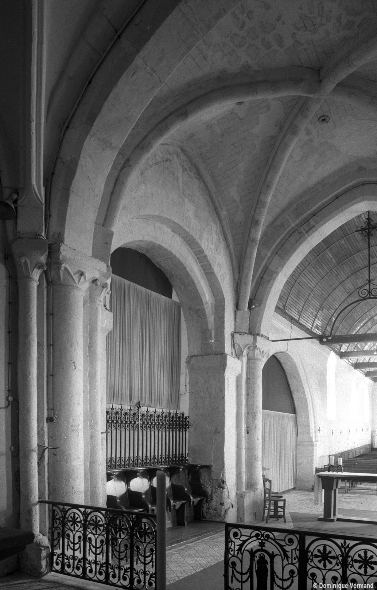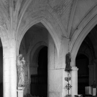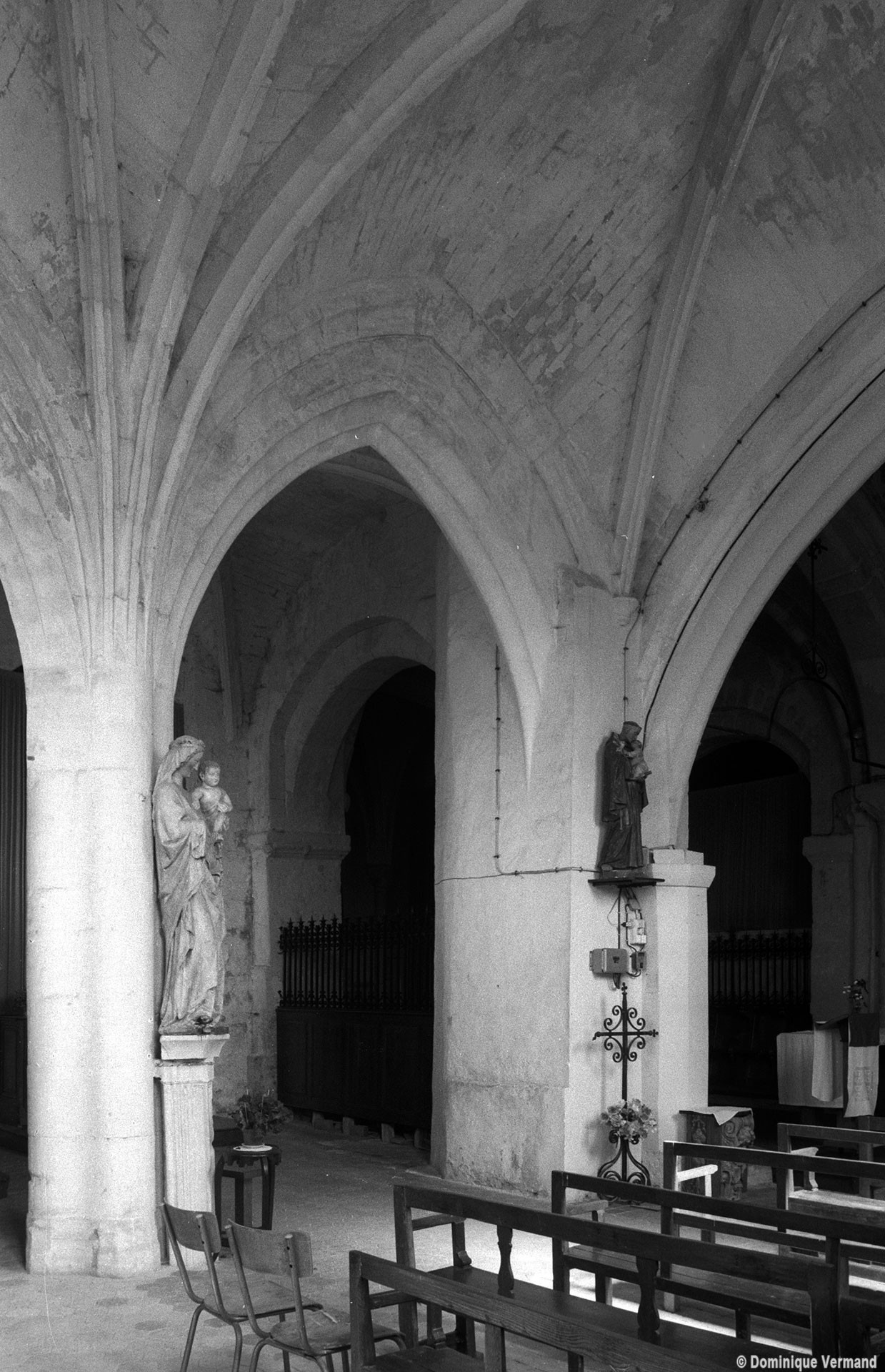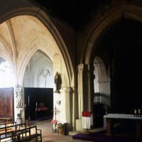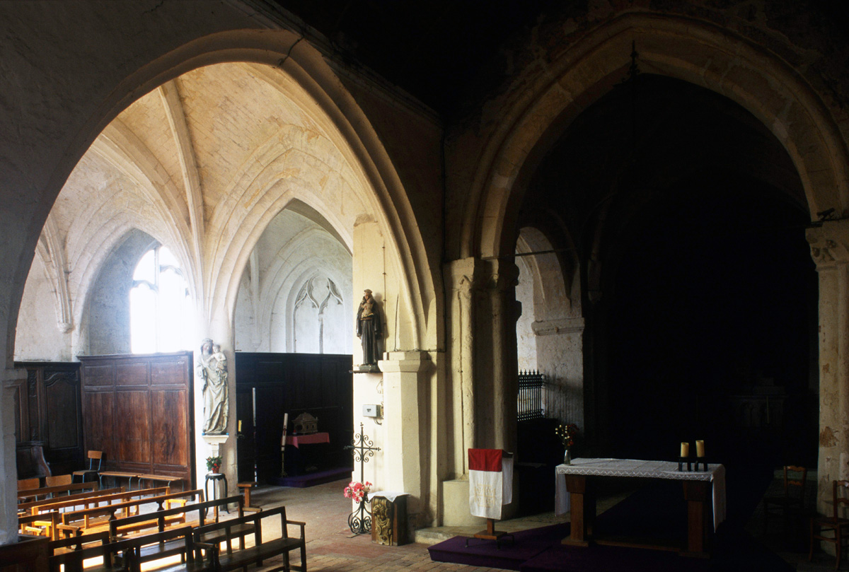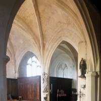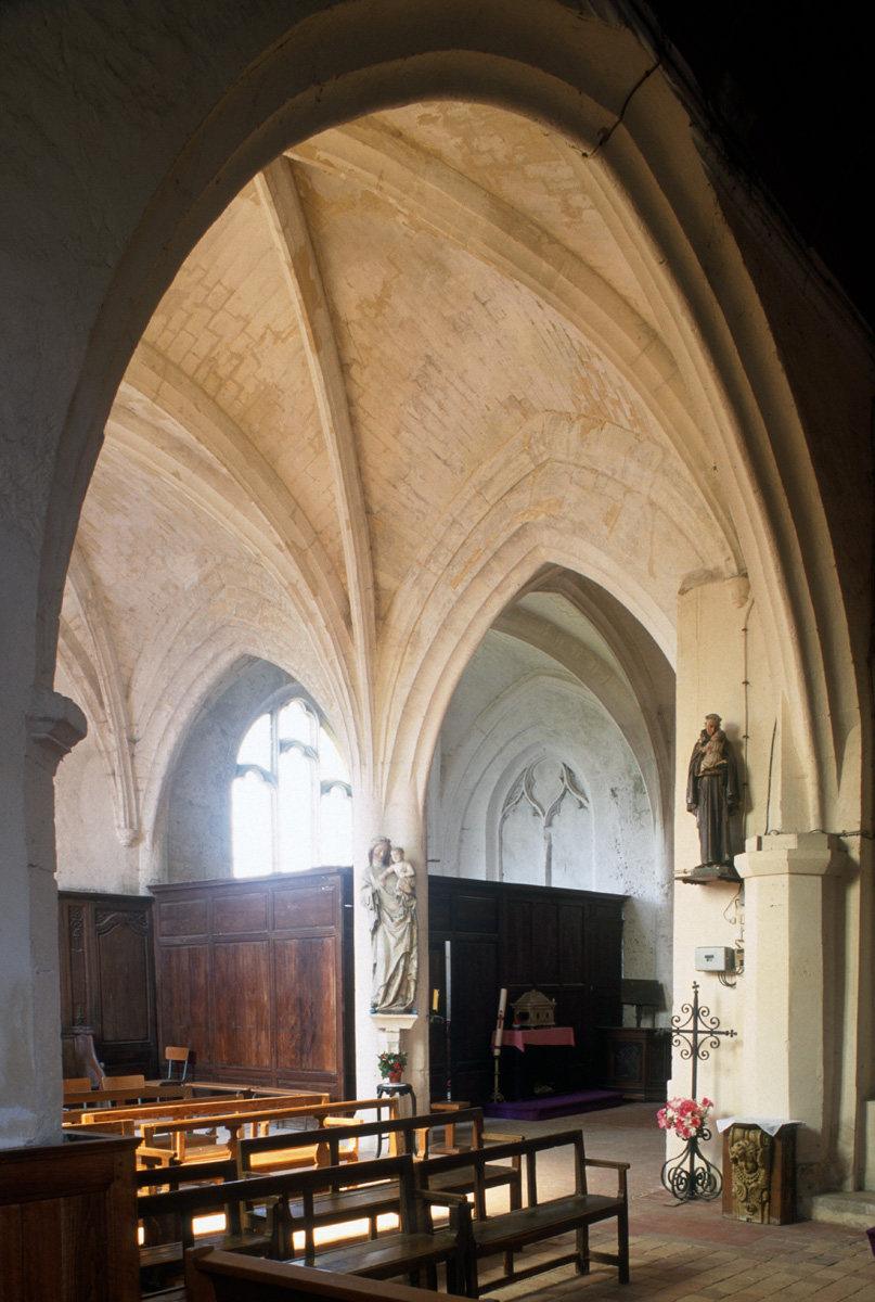 Enfin, c’est au 16ème siècle qu’a été bâtie la chapelle qui jouxte, au nord, le dernier tiers de la nef et la première travée du choeur. Selon un schéma assez classique à l’époque, ses quatre voûtes à nervures prismatiques retombent au centre sur une pile circulaire. Si certains remplages des fenêtres ont encore le réseau flamboyant, d’autres sacrifient au tracé en plein cintre que la Renaissance remet alors à l’honneur (1998, modifié 2015).