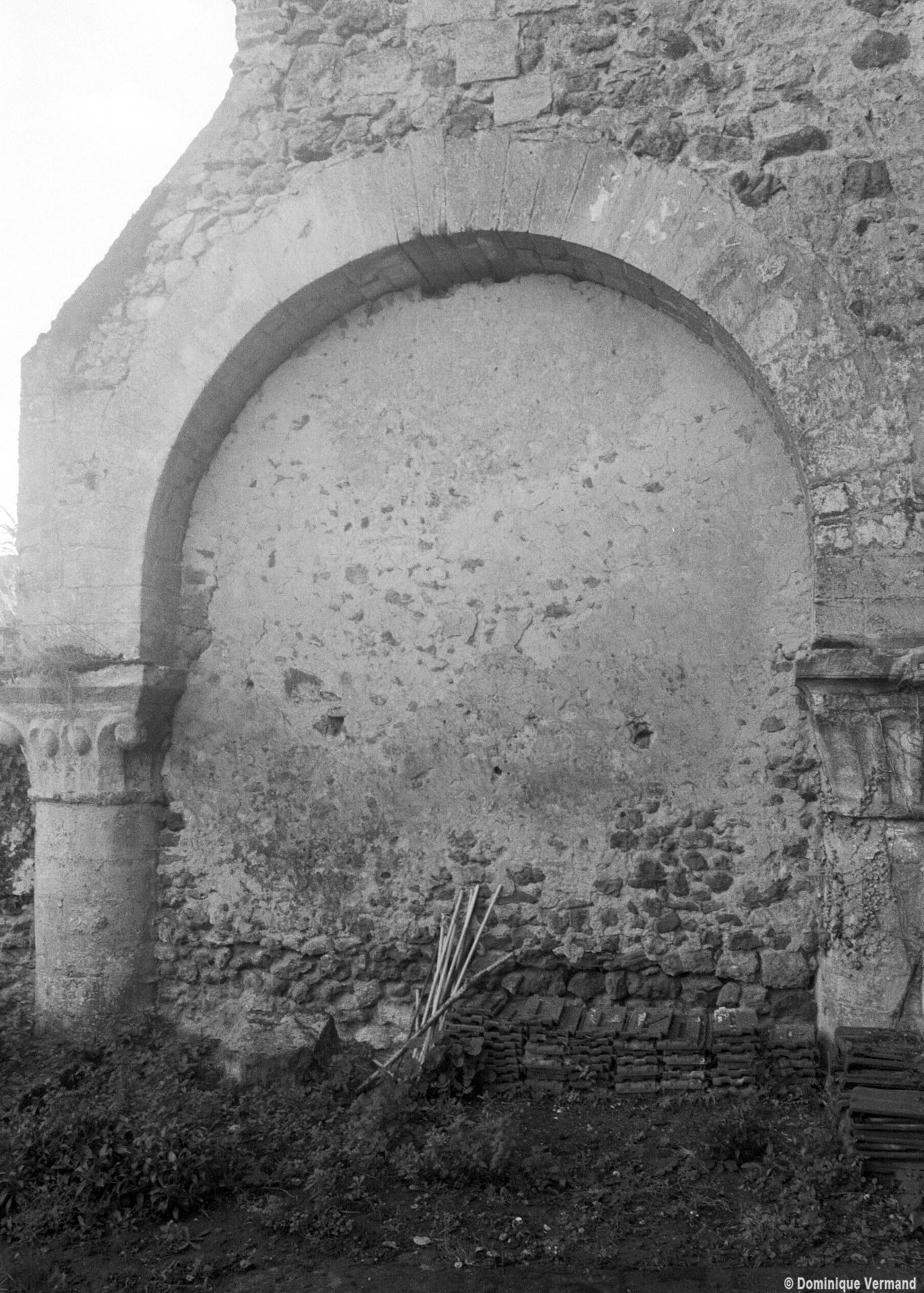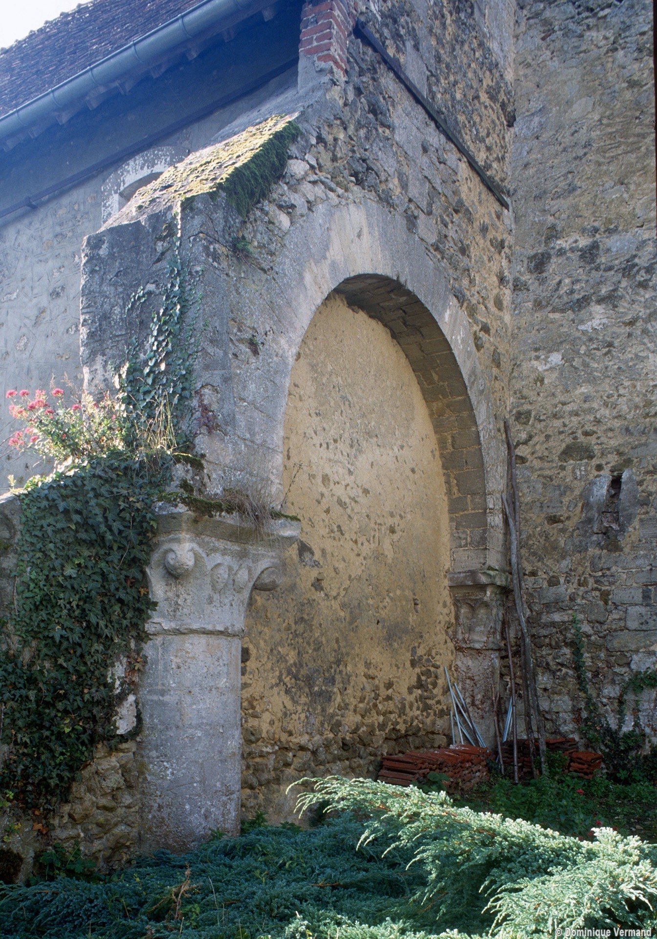 Si le manoir prieural, avec ses belles cheminées cylindriques du 13ème ou 14ème siècle, est relativement bien conservé, il n’en est pas de même de l’église, dont seule subsiste une petite partie du mur gouttereau sud de la nef. Bien que modestes, ces restes sont néanmoins suffisants pour imaginer une importante église romane dont la nef, non voûtée, s’ouvrait sur les bas-côtés par des arcades en plein cintre retombant sur des piles circulaires, un parti inconnu ailleurs dans la région à cette époque. Le décor des chapiteaux conservés, et notamment celui dont la corbeille côtelée se garnit de pommes de pin et de volutes d’angles, indique en effet le premier quart du 12ème siècle. (D.Vermand, 1998, modifié 2017)
