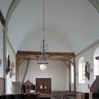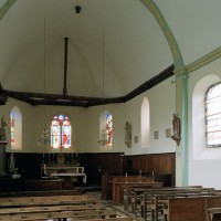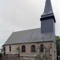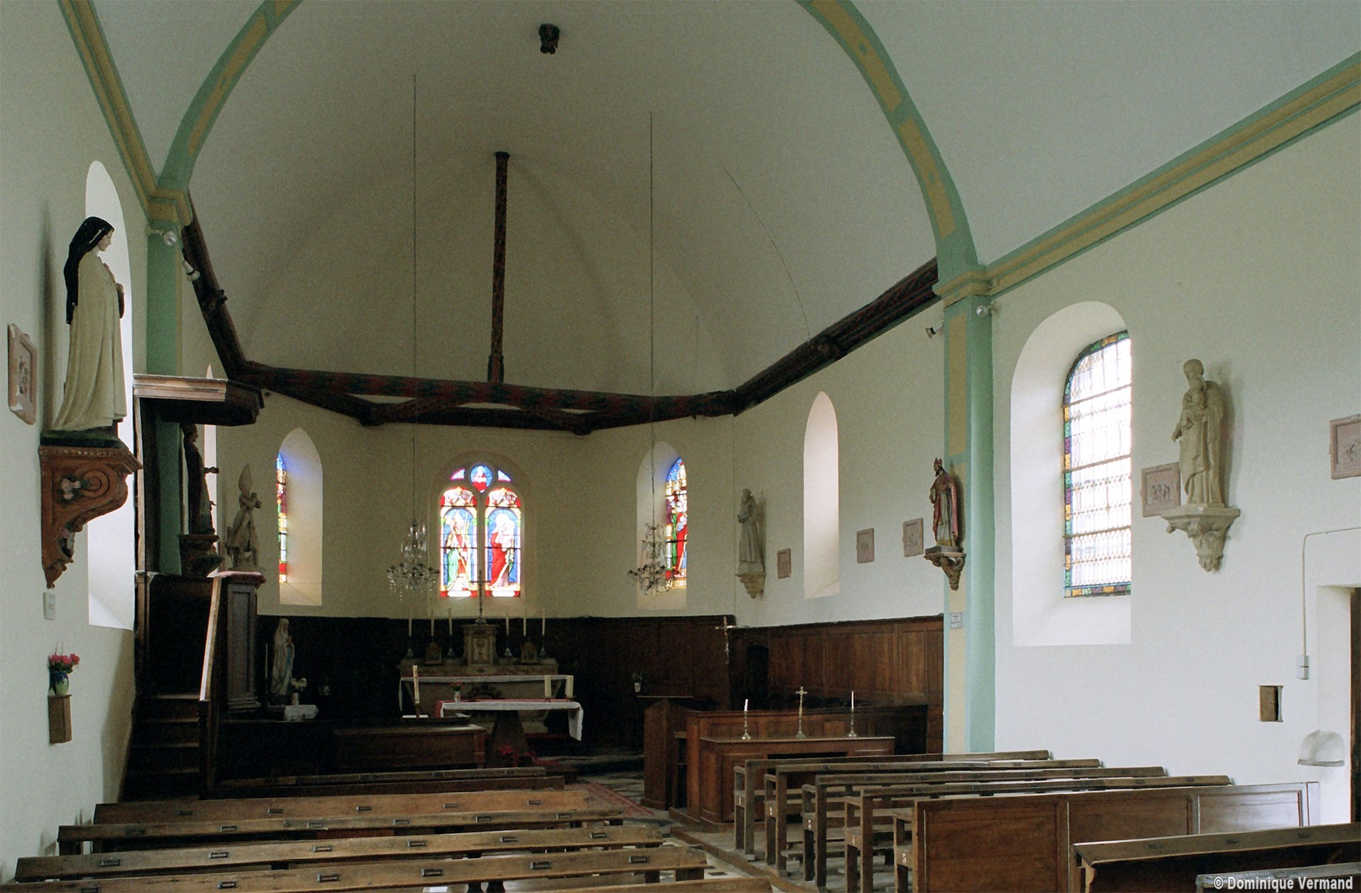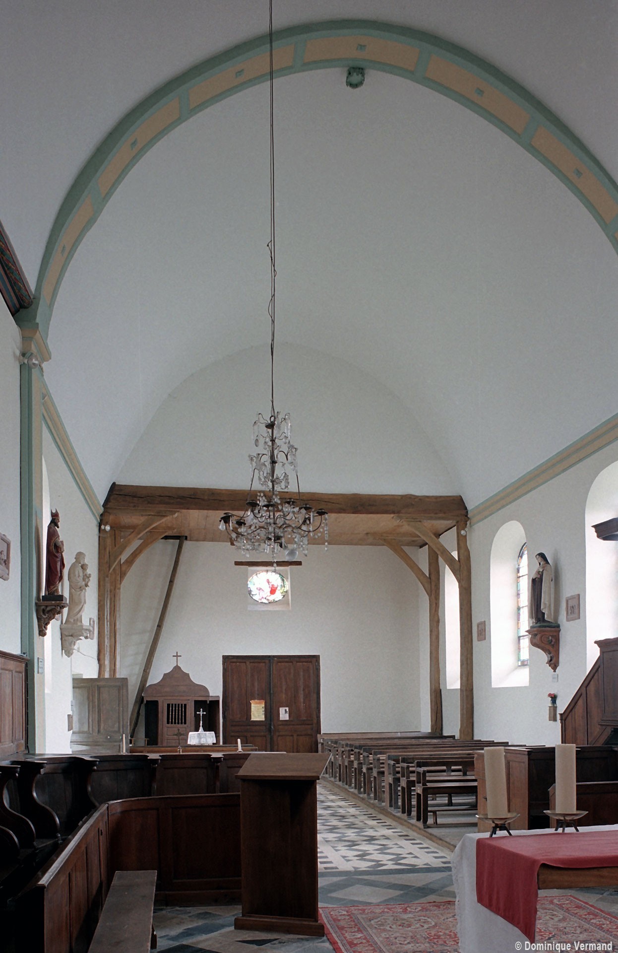 Reconstruite en grés en 1787, la nef est éclairée par des fenêtres en briques au cintre surbaissé comme il est fréquent à l’époque. Vers la façade, un ensemble de trois contreforts assure, de chaque côté, la nécessaire stabilisation de la structure en charpente qui supporte le clocher (2006).