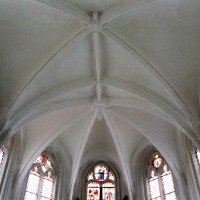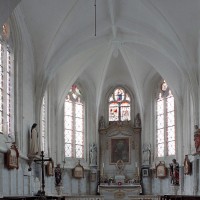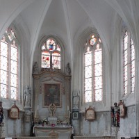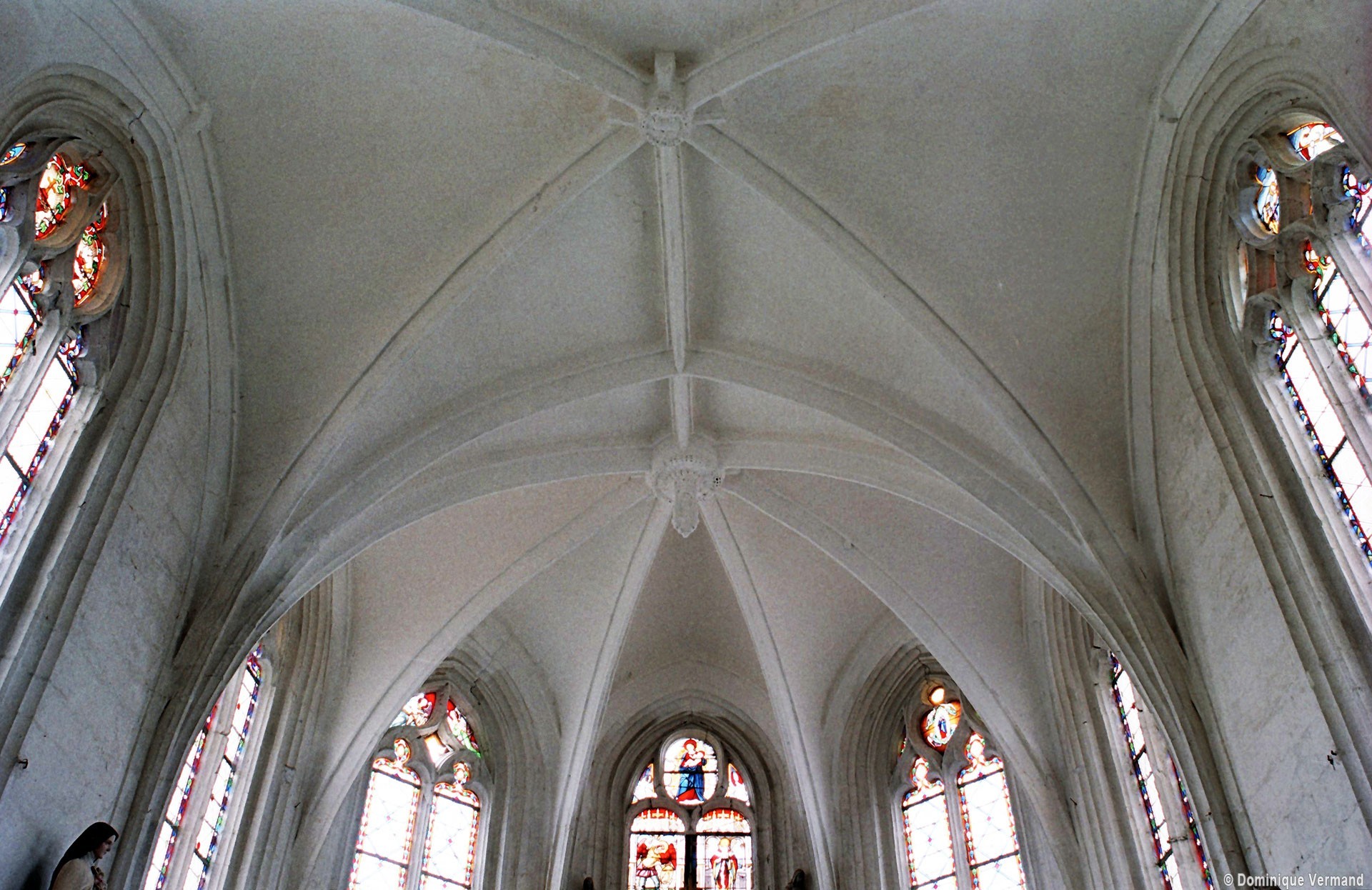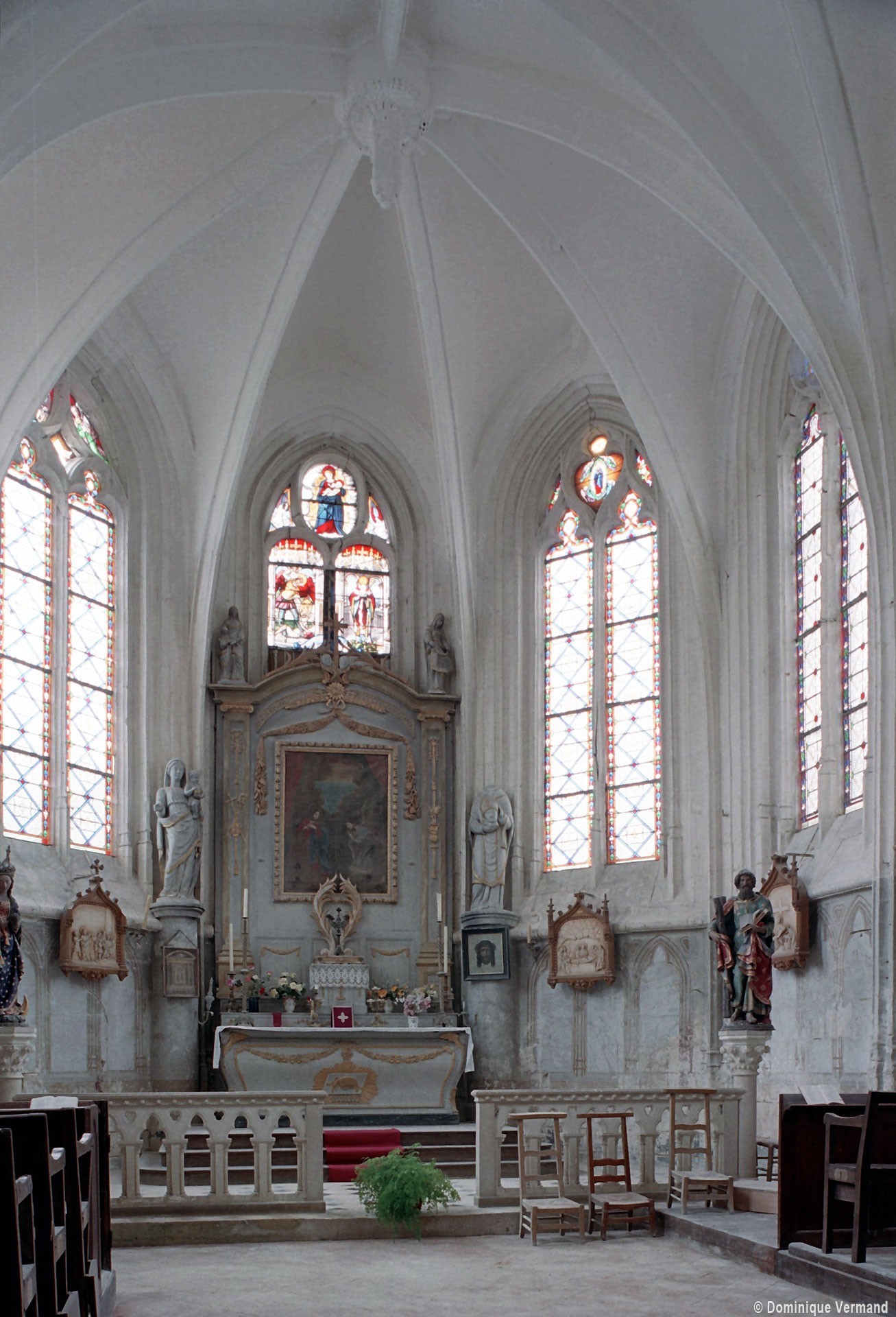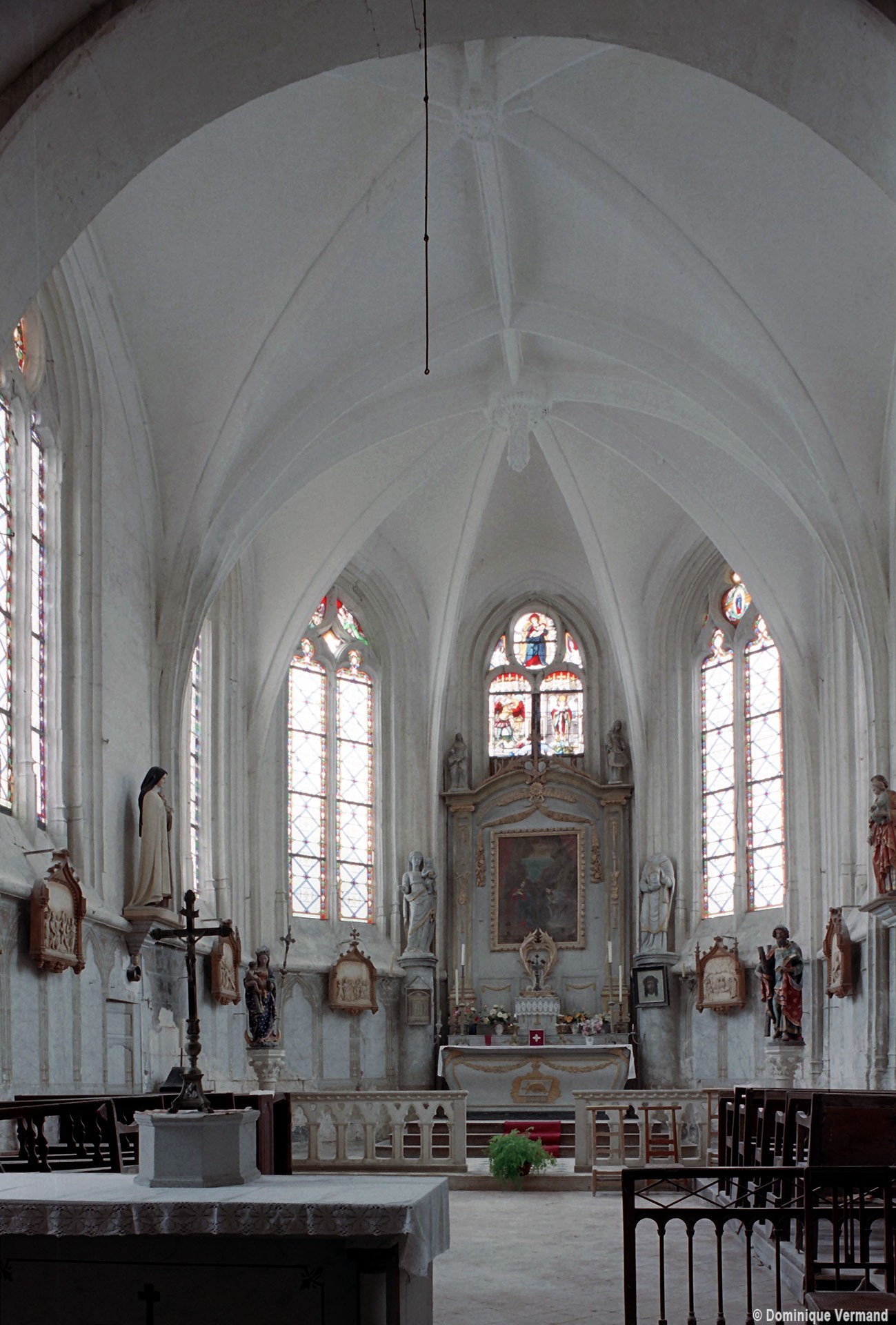 Terminé en 1543, il comprend une travée droite suivie d’une abside à cinq pans. Les voûtes d’ogives retombent directement sur des minces supports à profil prismatique engagés dans le mur. Les ogives de l’abside convergent vers une clef pendante reliée à la clef de la travée droite par une nervure supplémentaire (lierne). Cette clef comporte le départ d’autres liernes qui n’ont, semble-t-il, jamais été réalisées. Traditionnel dans son plan, ce chœur l’est également dans son élévation qui superpose un soubassement nu et des larges fenêtres ouvertes jusque dans la lunette des voûtes. Toutes possèdent un réseau flamboyant, sauf celle d’axe dont le remplage est de style Renaissance comme l’est, d’ailleurs, la clef pendante. Un tel mélange des styles est très fréquent au 16ème siècle.