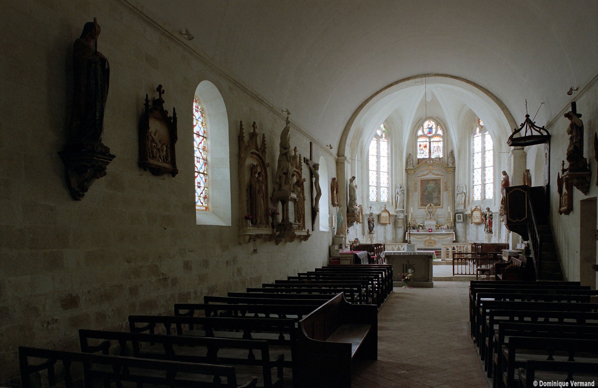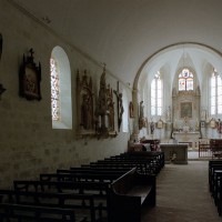 Le mobilier comporte principalement une cuve baptismale en pierre, très simple, du 12ème siècle, un bénitier à fût torsadé du 16ème siècle, une chaire à prêcher et un autel-retable du 18ème siècle (2005).