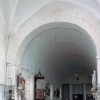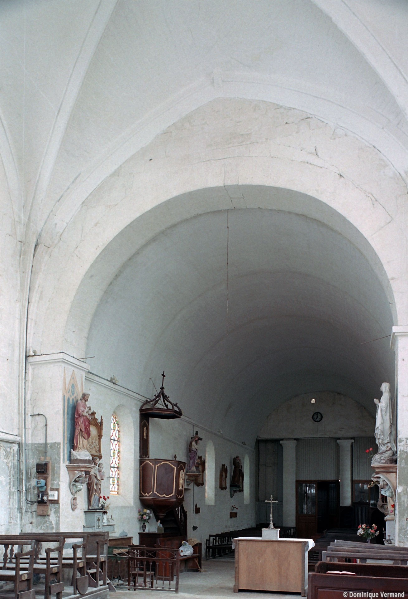 Exceptée dans sa moitié orientale, de peu postérieure au chœur, la nef a été refaite en 1829. Non voûtée et percée de simples fenêtres en plein cintre, elle vaut surtout pour sa façade, bon exemple d’architecture néo-classique avec son petit portail encadré par des pilastres et surmonté par un fronton triangulaire.