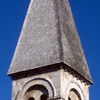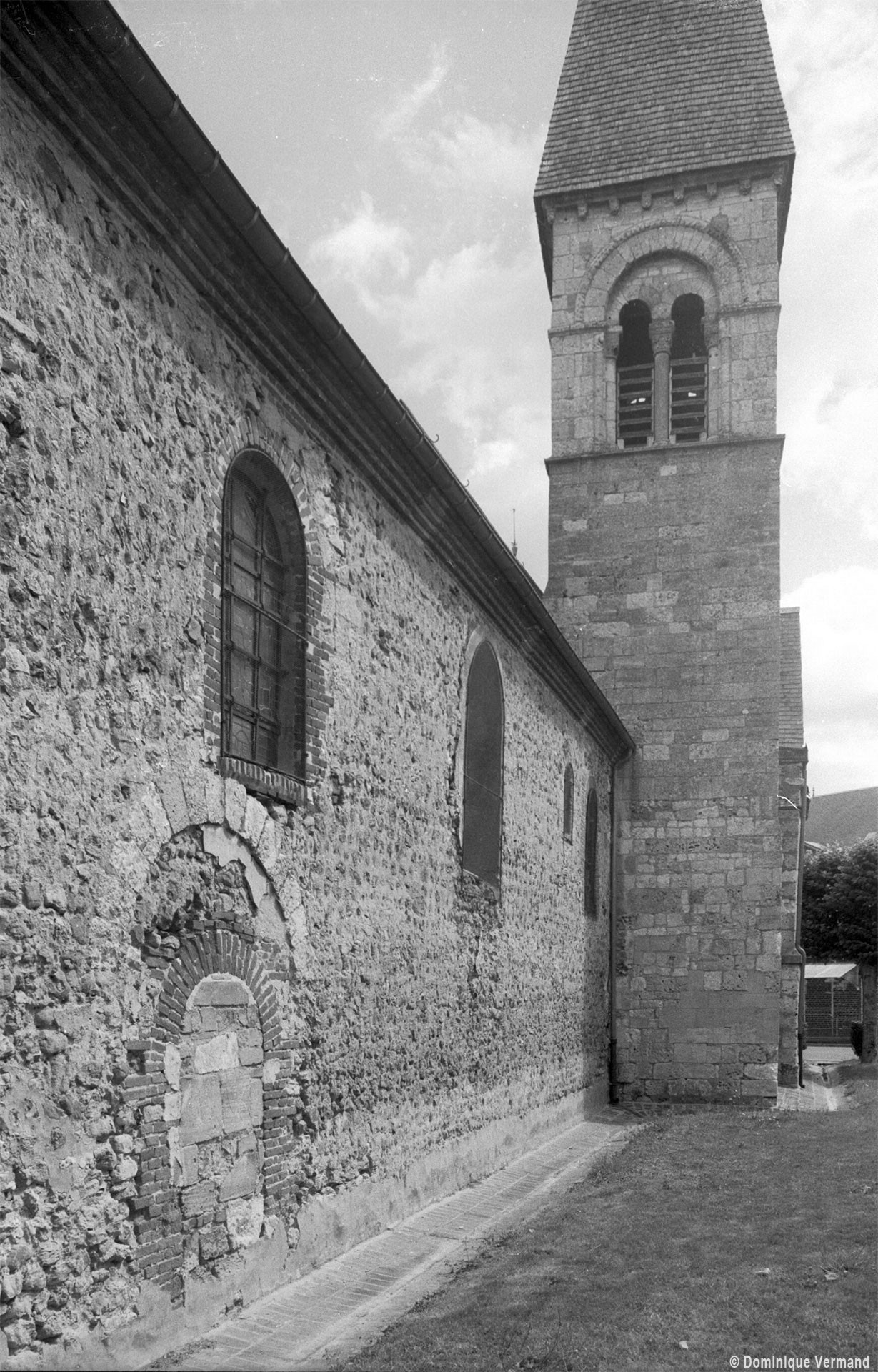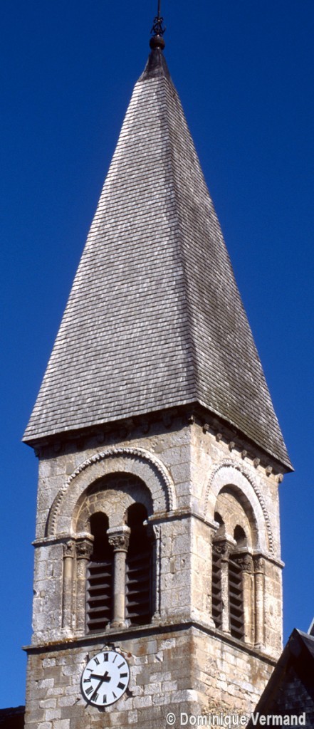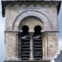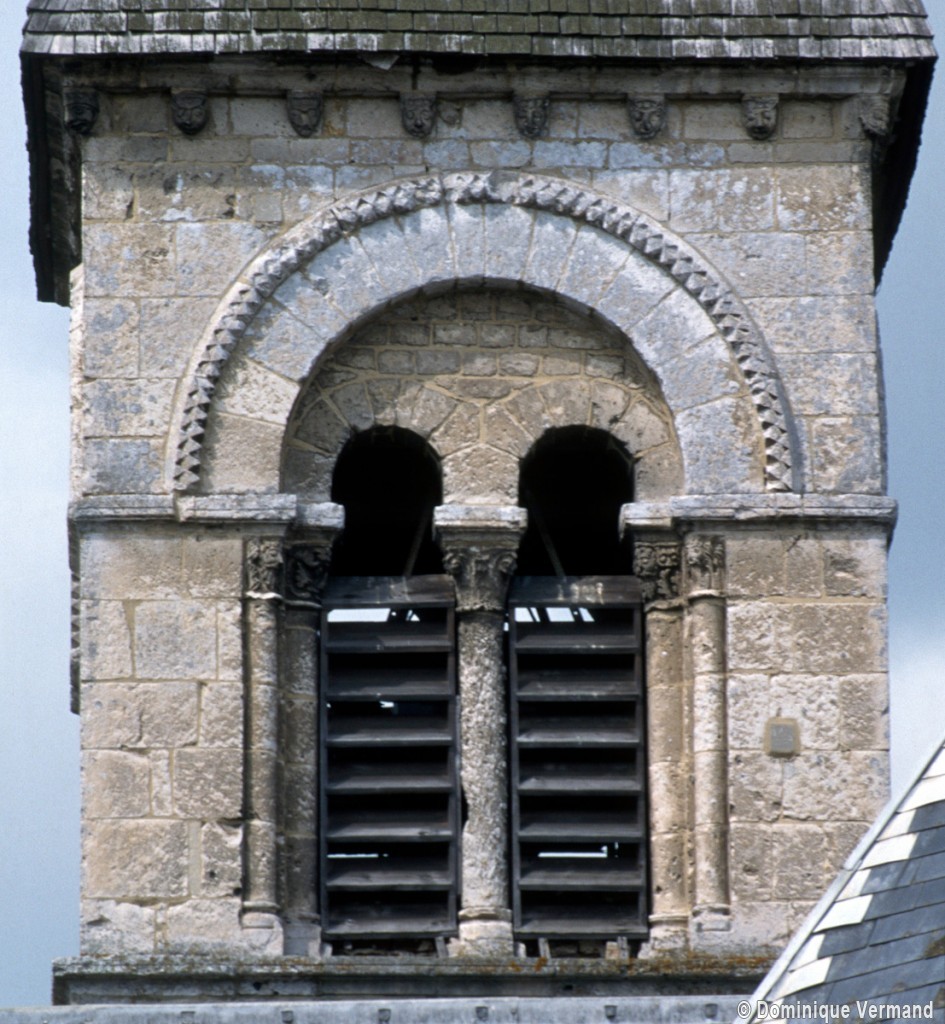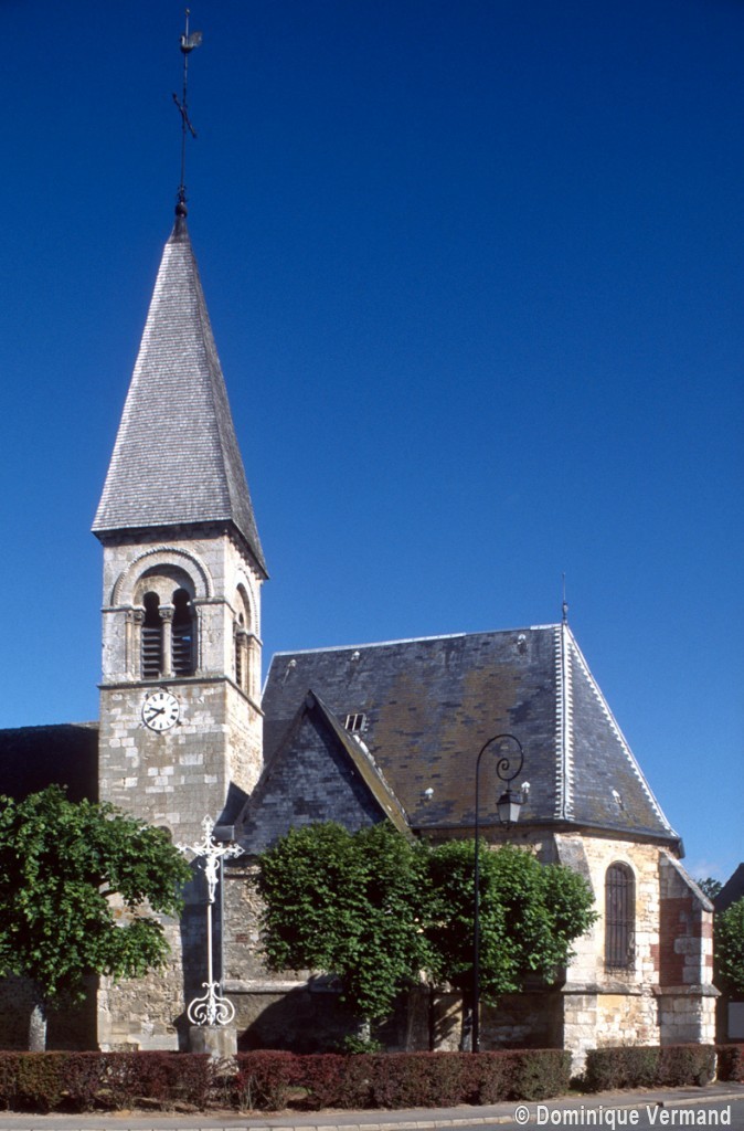A l’image de l’église voisine de Merlemont, l’édifice du 11ème siècle ne comportait pas de clocher, celui-ci n’ayant été greffé à l’extrémité du mur méridional de la nef que durant le premier quart du 12ème siècle. Au-dessus d’un haut soubassement nu, l’étage du beffroi n’est ajouré que d’une seule baie en plein cintre par côté. Une colonnette la recoupe en deux petites baies secondaires et son archivolte est soulignée par une moulure décorée de dents de scie et de pointes de diamant. Cet élégant clocher est la version réduite de celui de Marissel et l’oeuvre du même atelier.