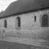 Saint-Lucien est particulièrement exemplaire de l’histoire architecturale de nombre d’églises du Beauvaisis. Comme toujours, rien n’a subsisté du ou des édifices qui se sont succédés au même emplacement jusqu’au 11ème siècle, période de reconstruction générale des églises et date de la nef. Bien conservée, elle se présente comme une simple salle rectangulaire (nef unique) bâtie en moellons, éclairée à l’origine, et de chaque côté, par trois petites fenêtres en plein cintre. Deux sont encore visibles, bien caractéristiques de cette époque avec leur absence d’ébrasement extérieur. La porte en plein cintre du mur sud, remaniée par la suite, est également de ce temps.