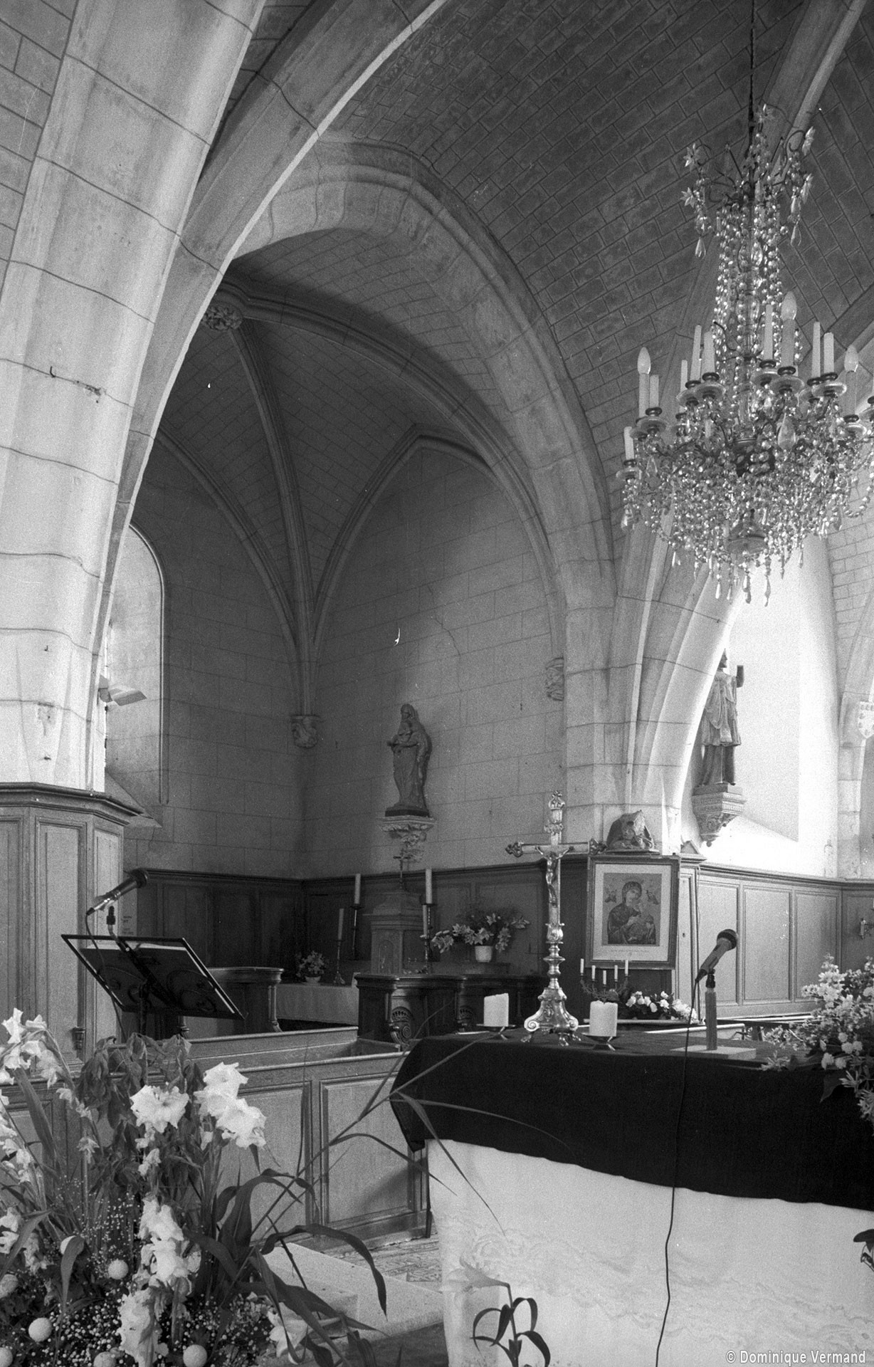 Composé d’une travée droite sur laquelle se greffent deux chapelles et d’une abside pentagonale, le choeur a été reconstruit entre 1604 (inscription sur le contrefort sud) et 1607 (date figurant sur la clef de voûte de l’abside). Avec ses voûtes d’ogives à profil prismatique, son style relève encore du gothique tardif. Le décor des culs-de-lampe recevant les voûtes des petites chapelles mérite d’être détaillé.