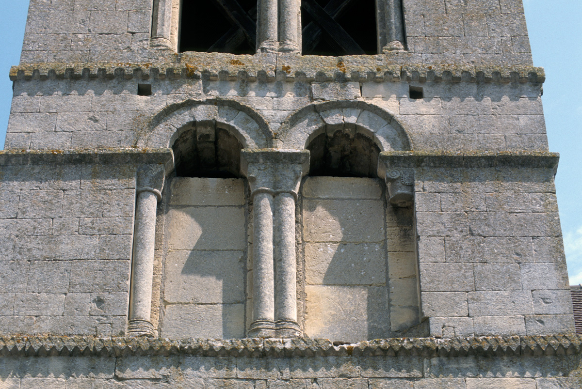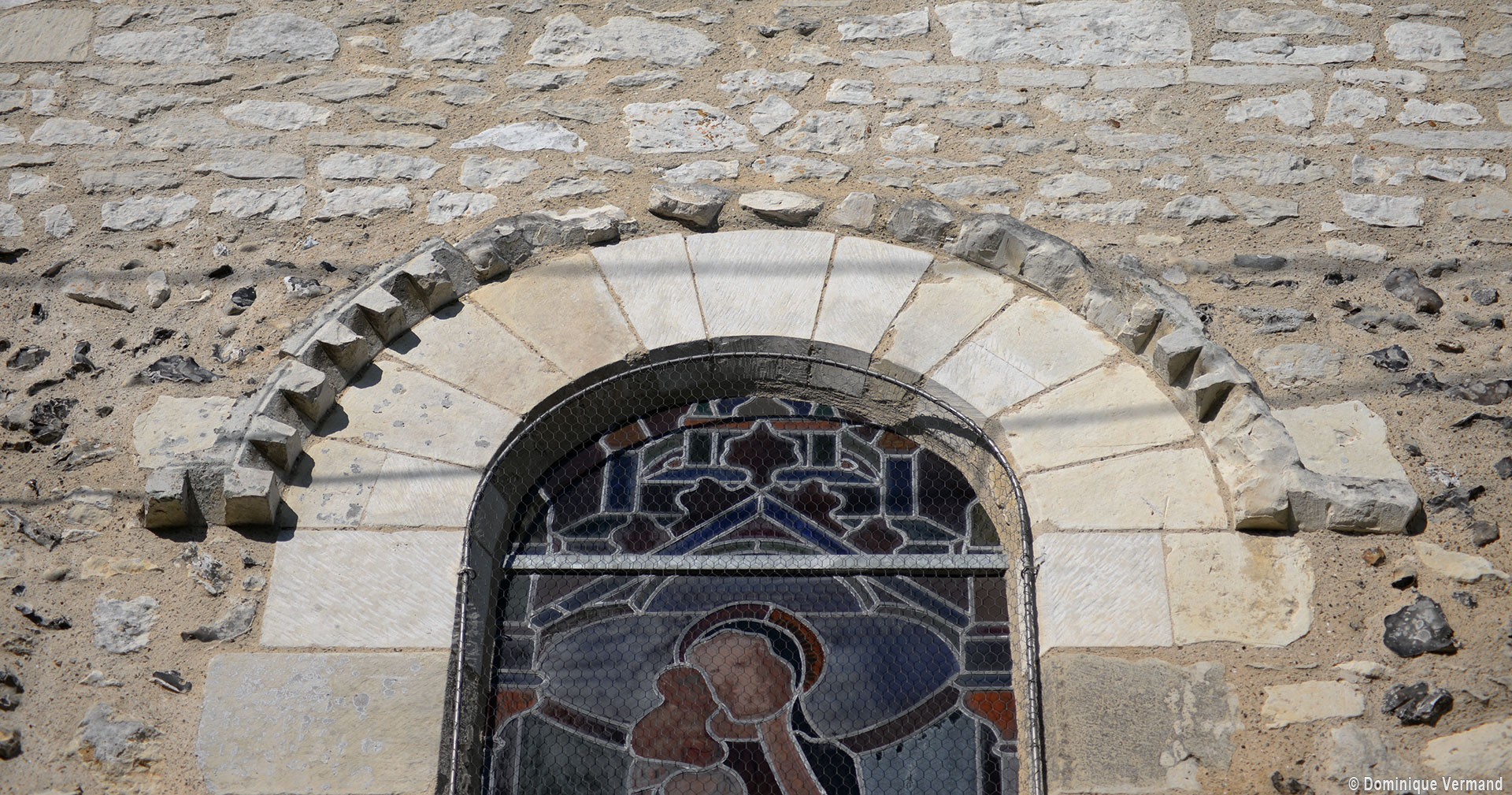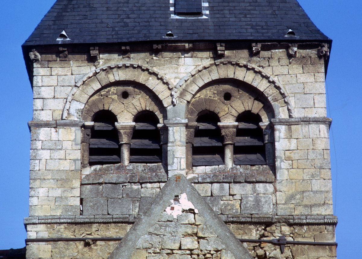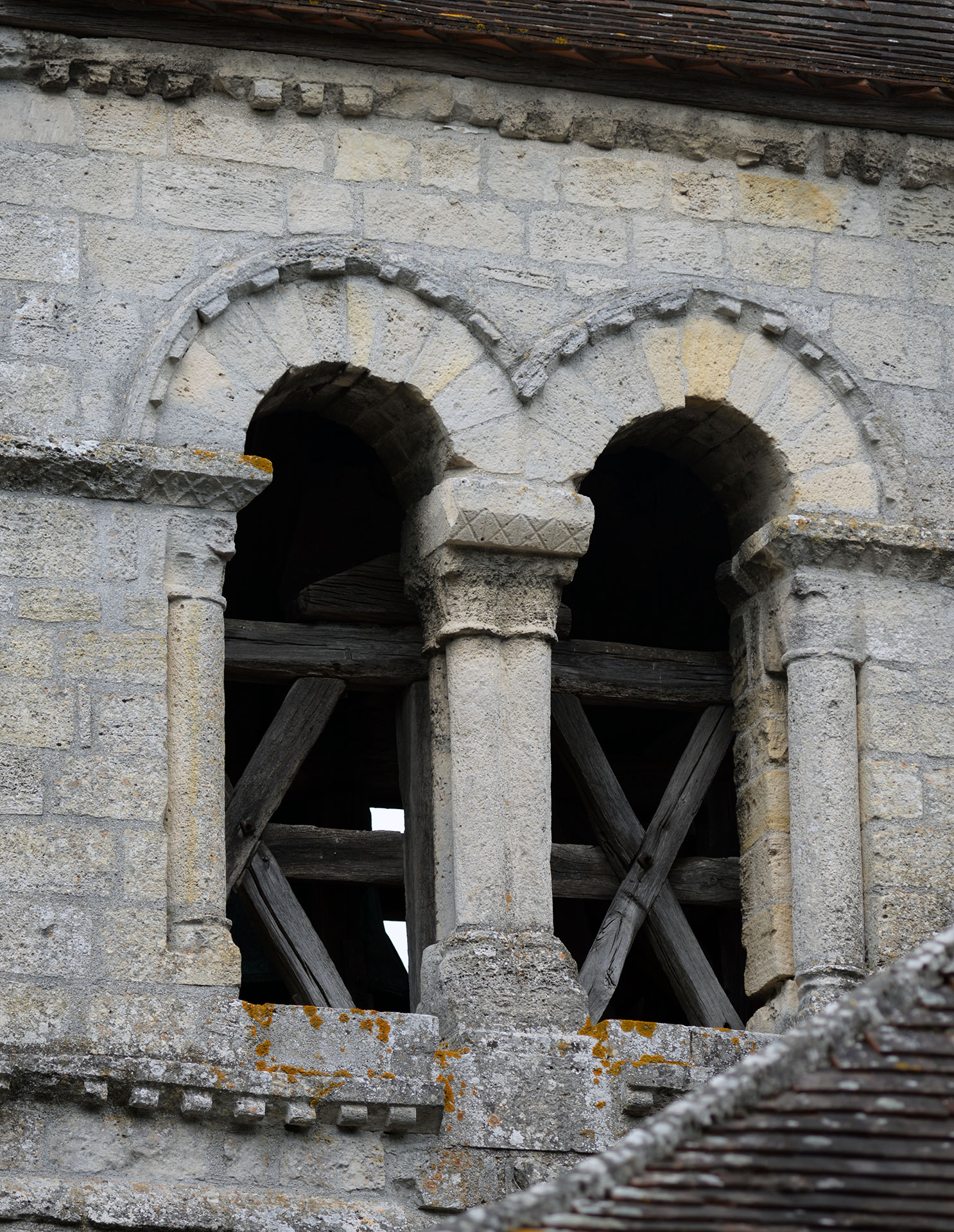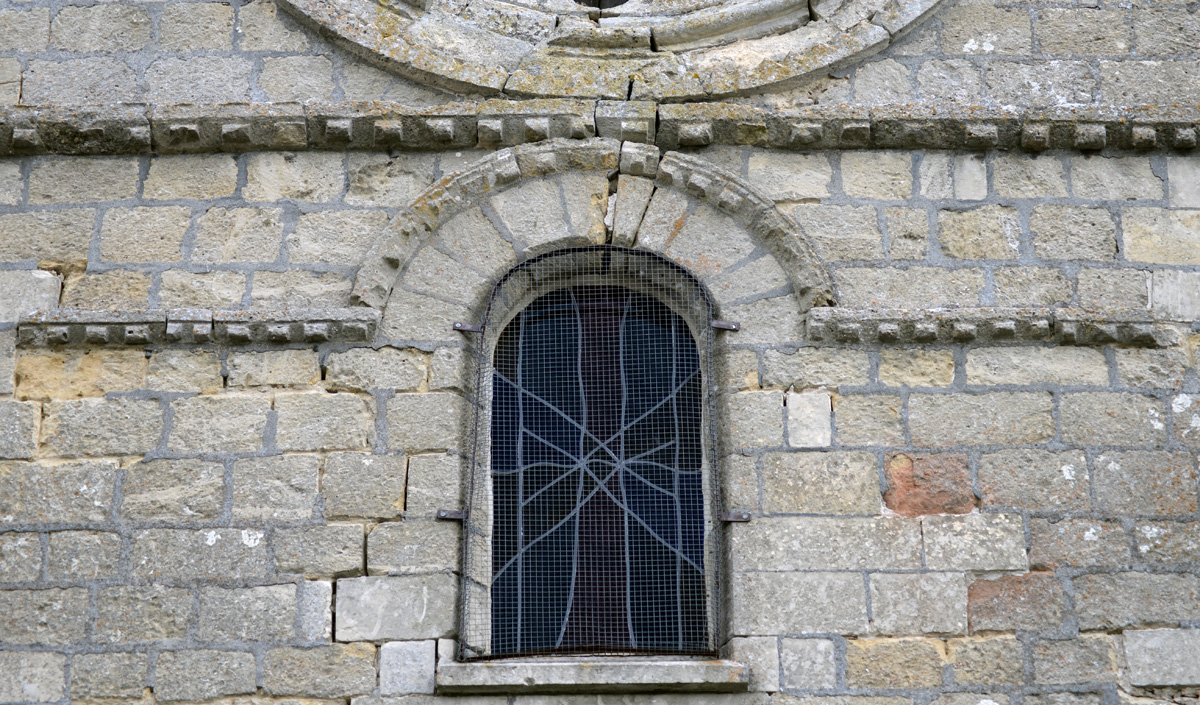 La partie supérieure de la baie ouest du clocher-porche (2016)