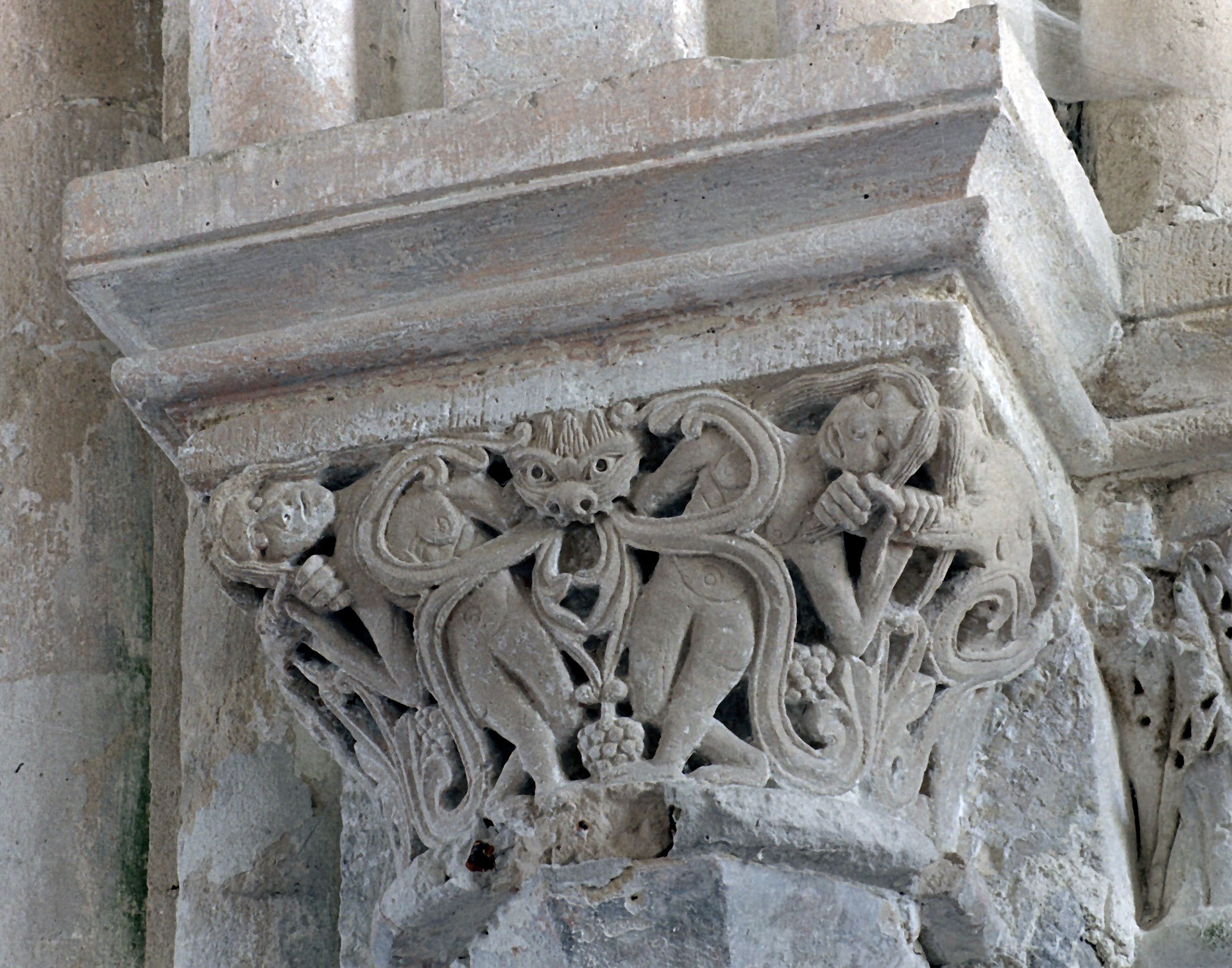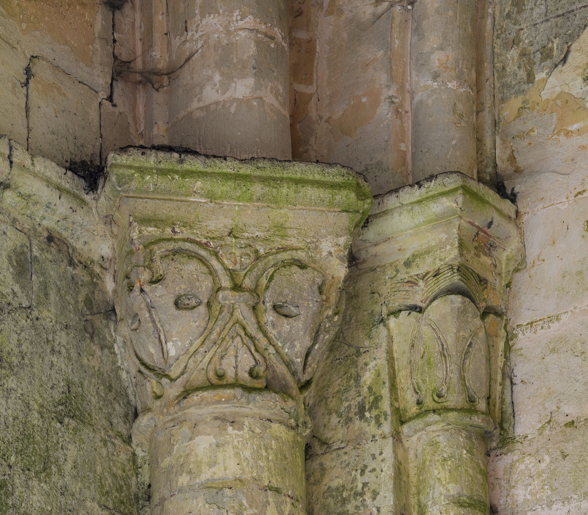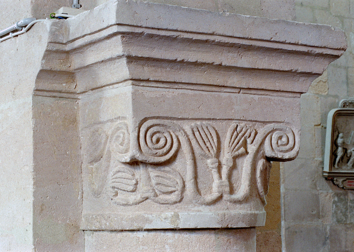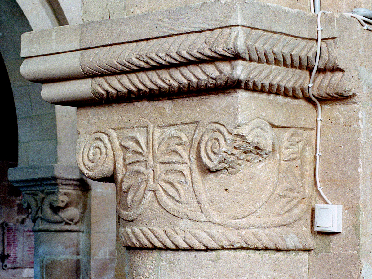 Le chapiteau de l'arcade romane de la dernière travée du mur gouttereau sud de la nef (2016)