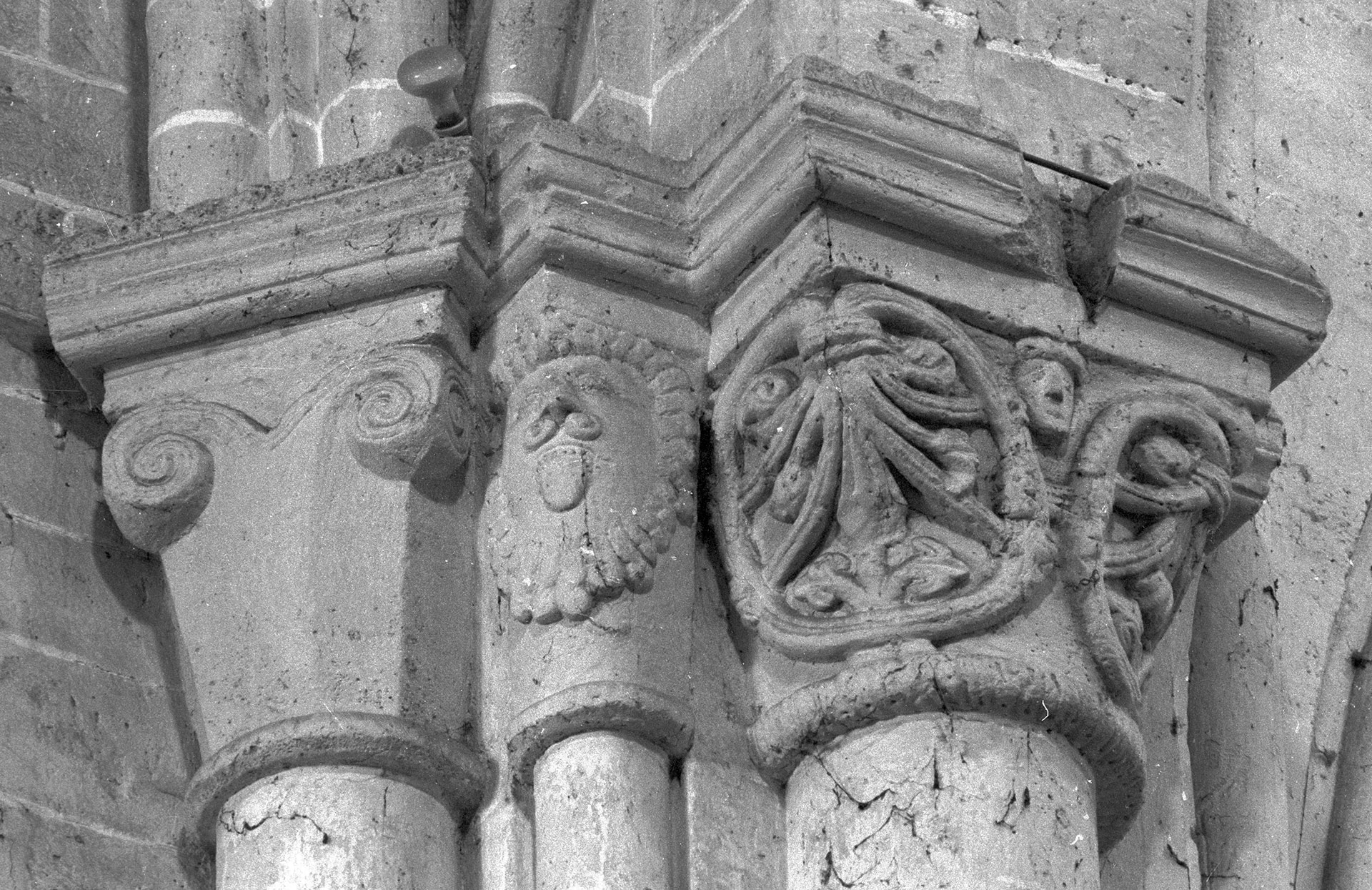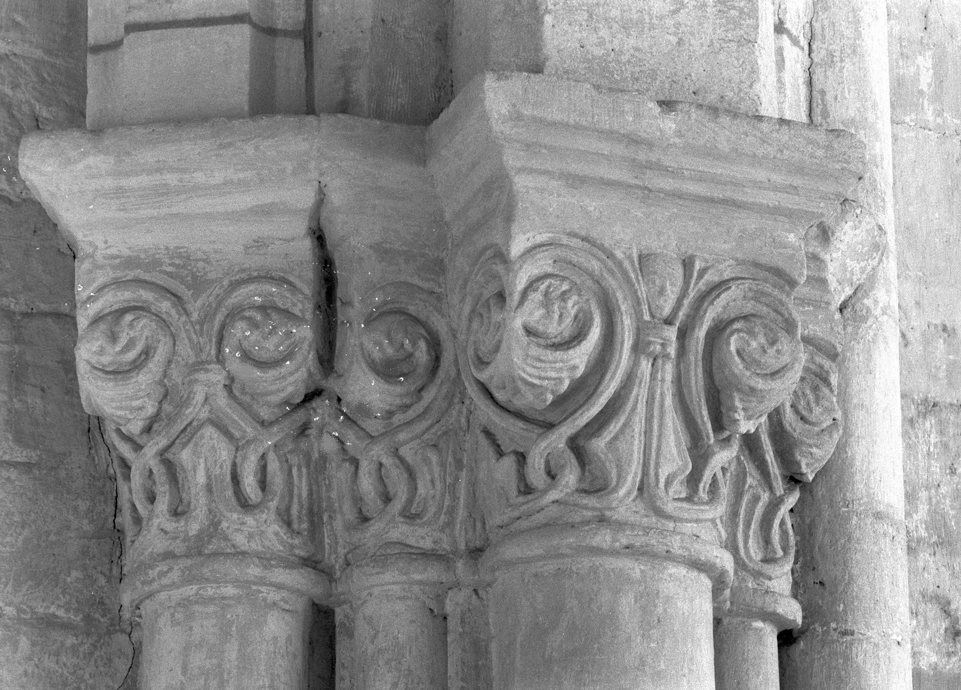Chapiteaux d'un bas-côté de la nef avant sa démolition (photo Chanoine Eugène Müller, archives de la Société d'Histoire et d'Archéologie de Senlis)