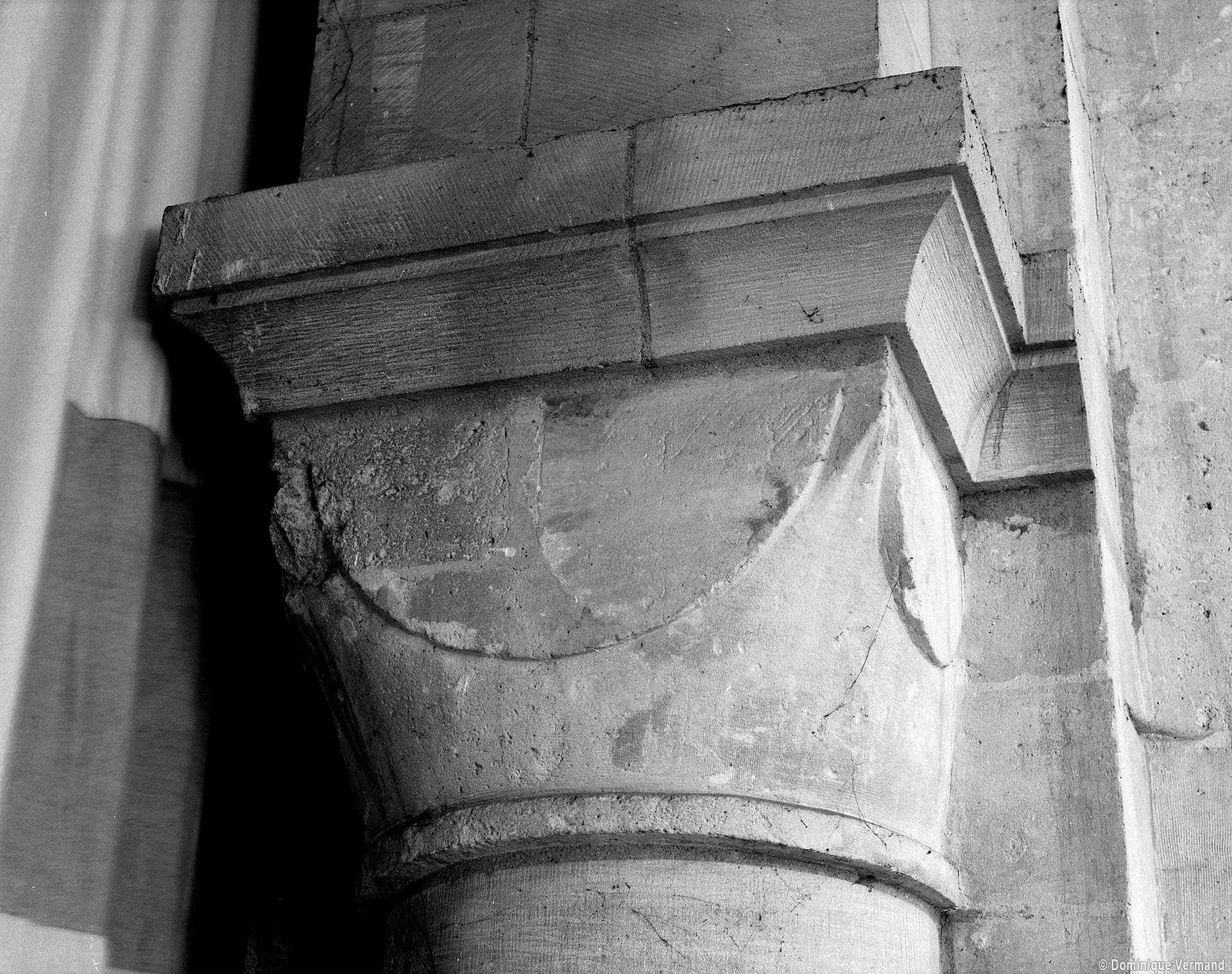Chapiteau cubique d'une des arcades romanes ouest du choeur