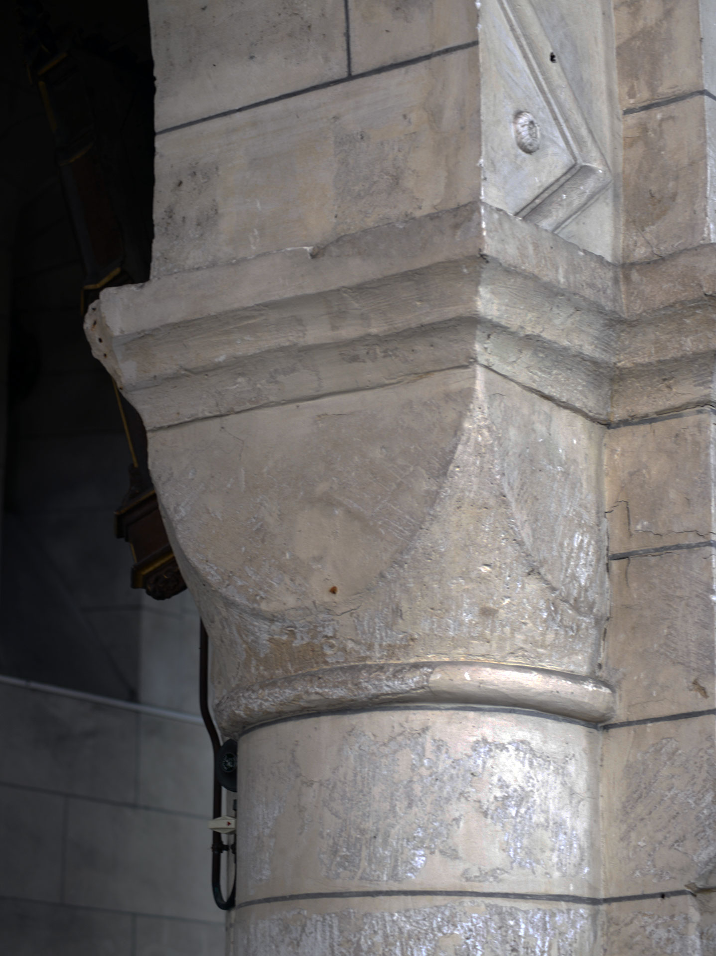 Chapiteau cubique de la seconde arcade du mur nord de la nef (2017)