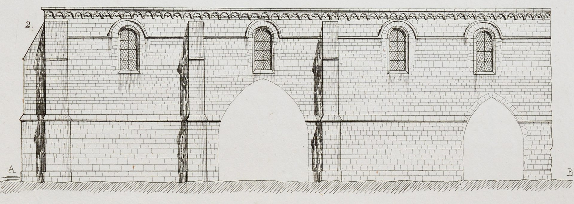 Partie supérieure du mur gouttereau nord de la nef (1994)